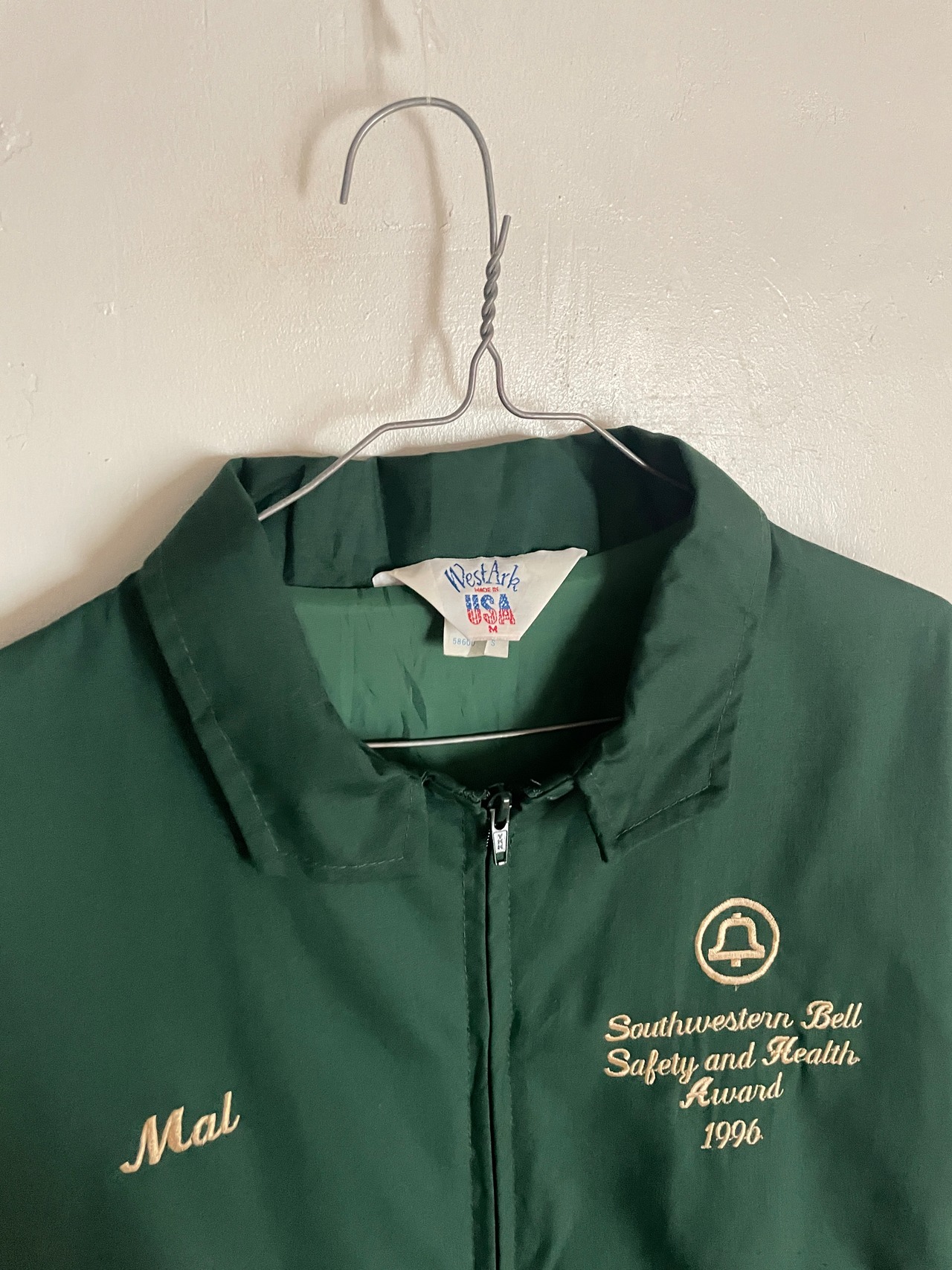 グリーンボディに、かつてアメリカに存在した電話会社”サウスウェスタン・ベル社”の刺繍が施された、ワークジャケット。さりげなくネーム刺繍も施されています。ジップタイプで着脱もしやすいのもグッド。大き過ぎず、小さ過ぎないサイズ感で、男女共におすすめしたい秋アイテムです。USA製なのも魅力的です。
