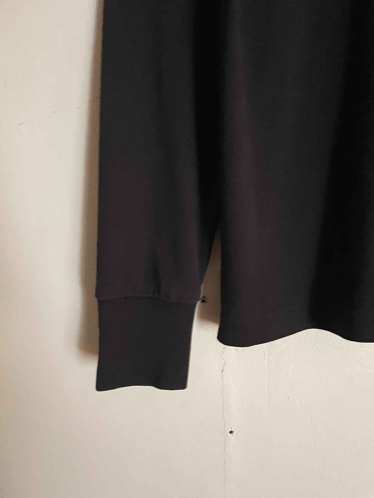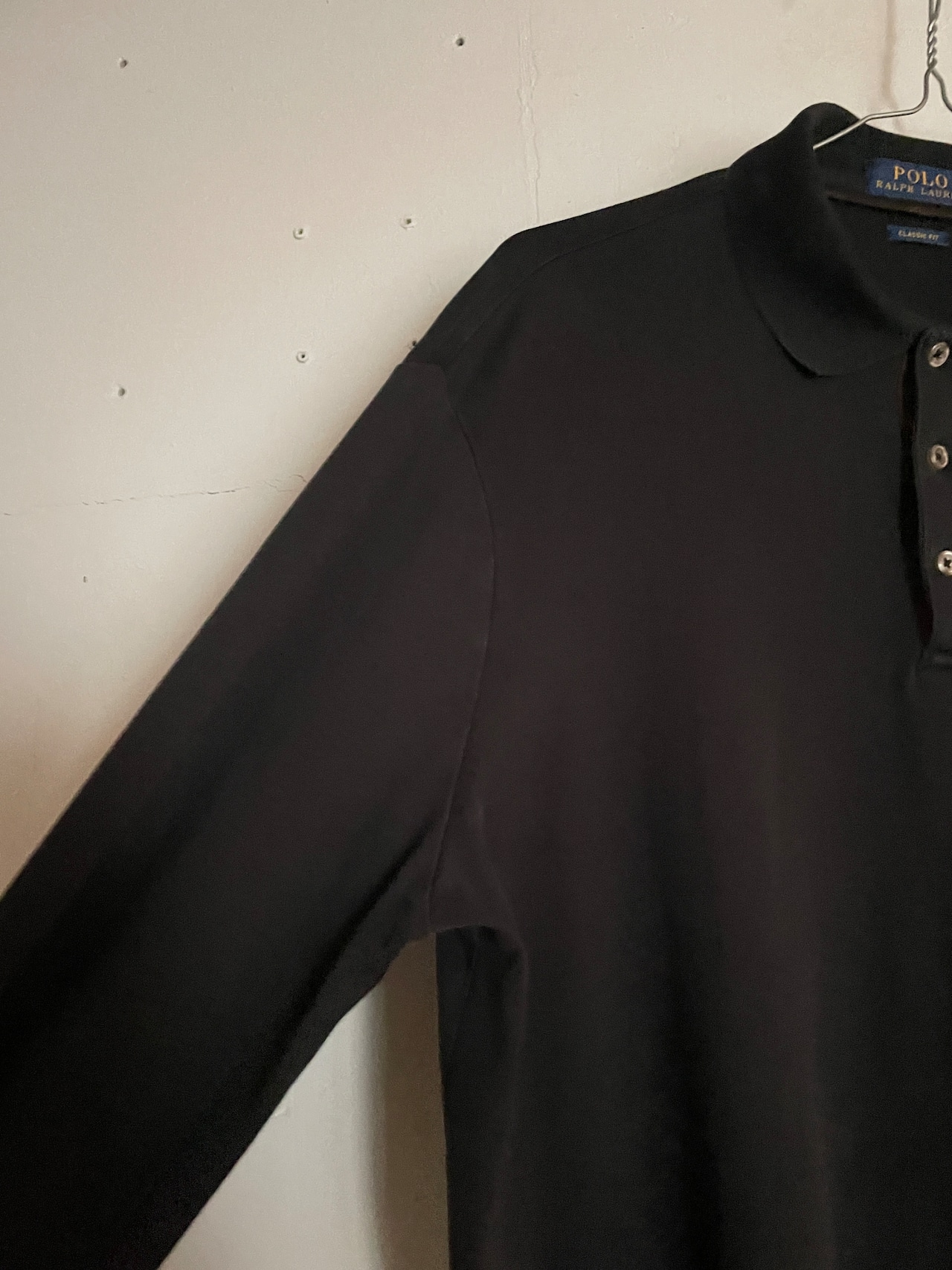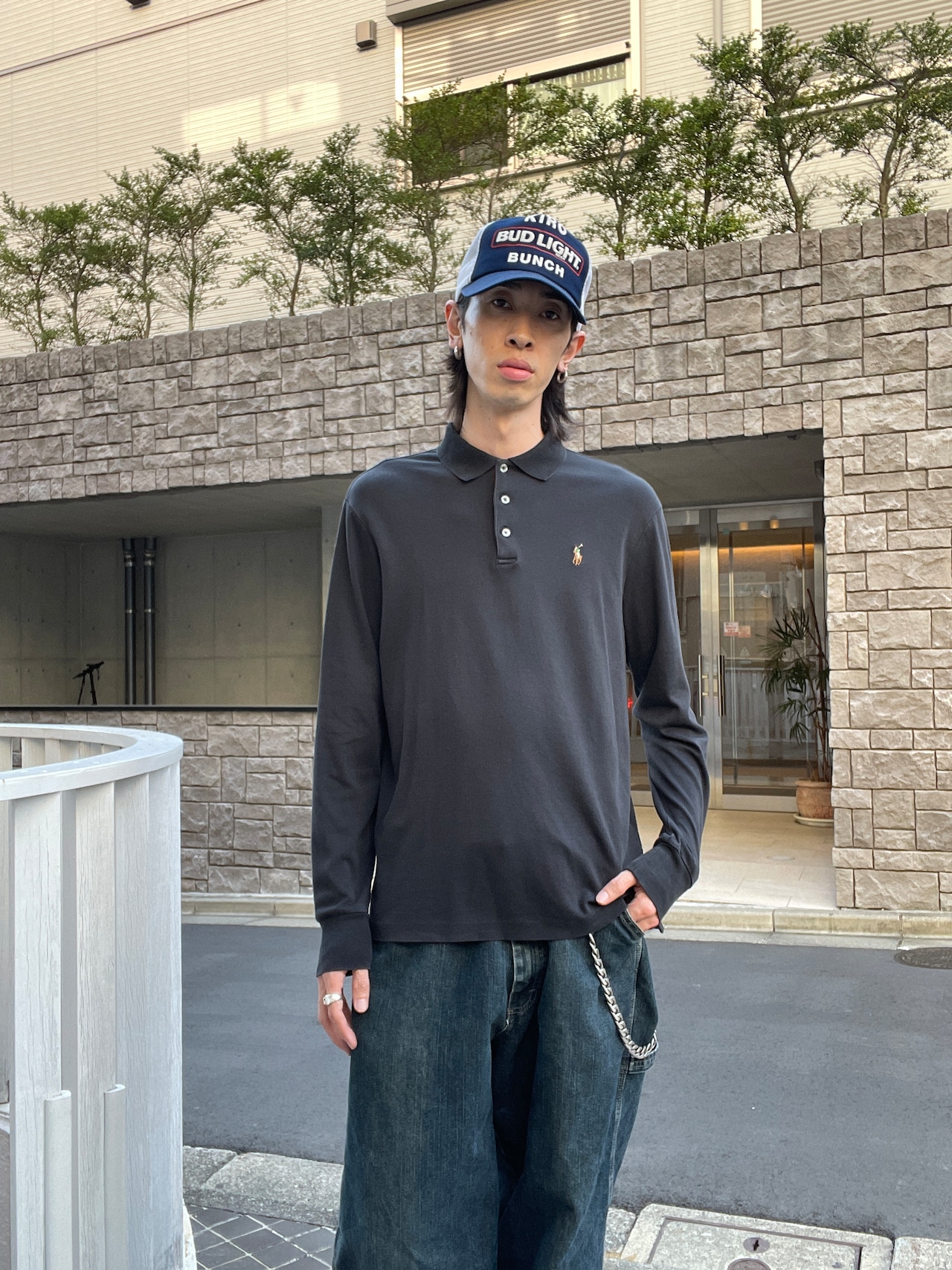 ブラックボディに、ワンポイントでポニーロゴ刺繍が施された、ラルフローレンのポロシャツ。かなり伸びが良く、肌触り抜群のコットン素材で、着心地◎です。ボタンを開けて、チラッと見えるブラウンもお洒落。ゆったりとしたサイズ感で、これからの季節一枚でラフに着られそうです。