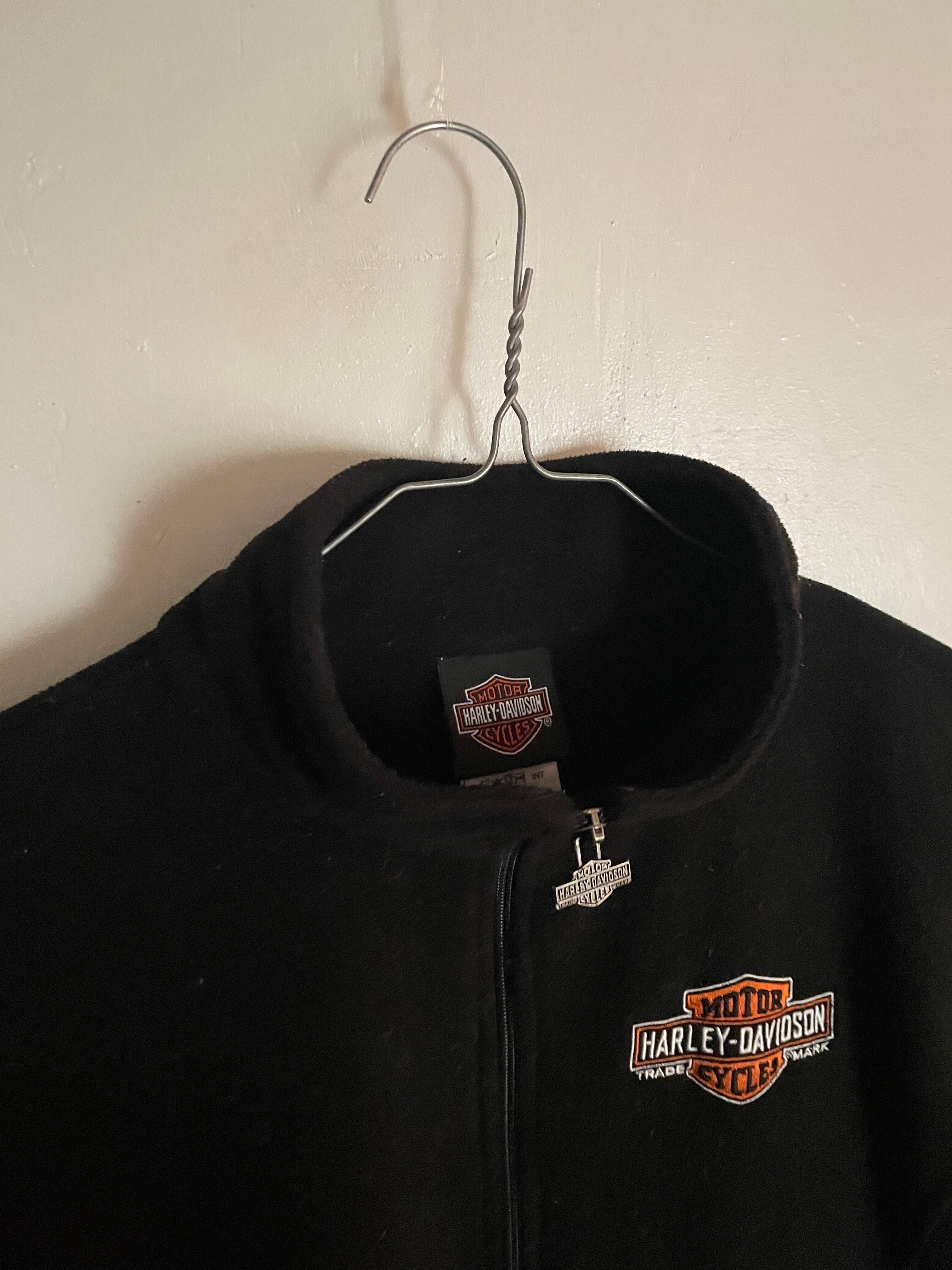 Old HARLEY-DAVIDSON Black Embroidery Zip Fleece Jacket