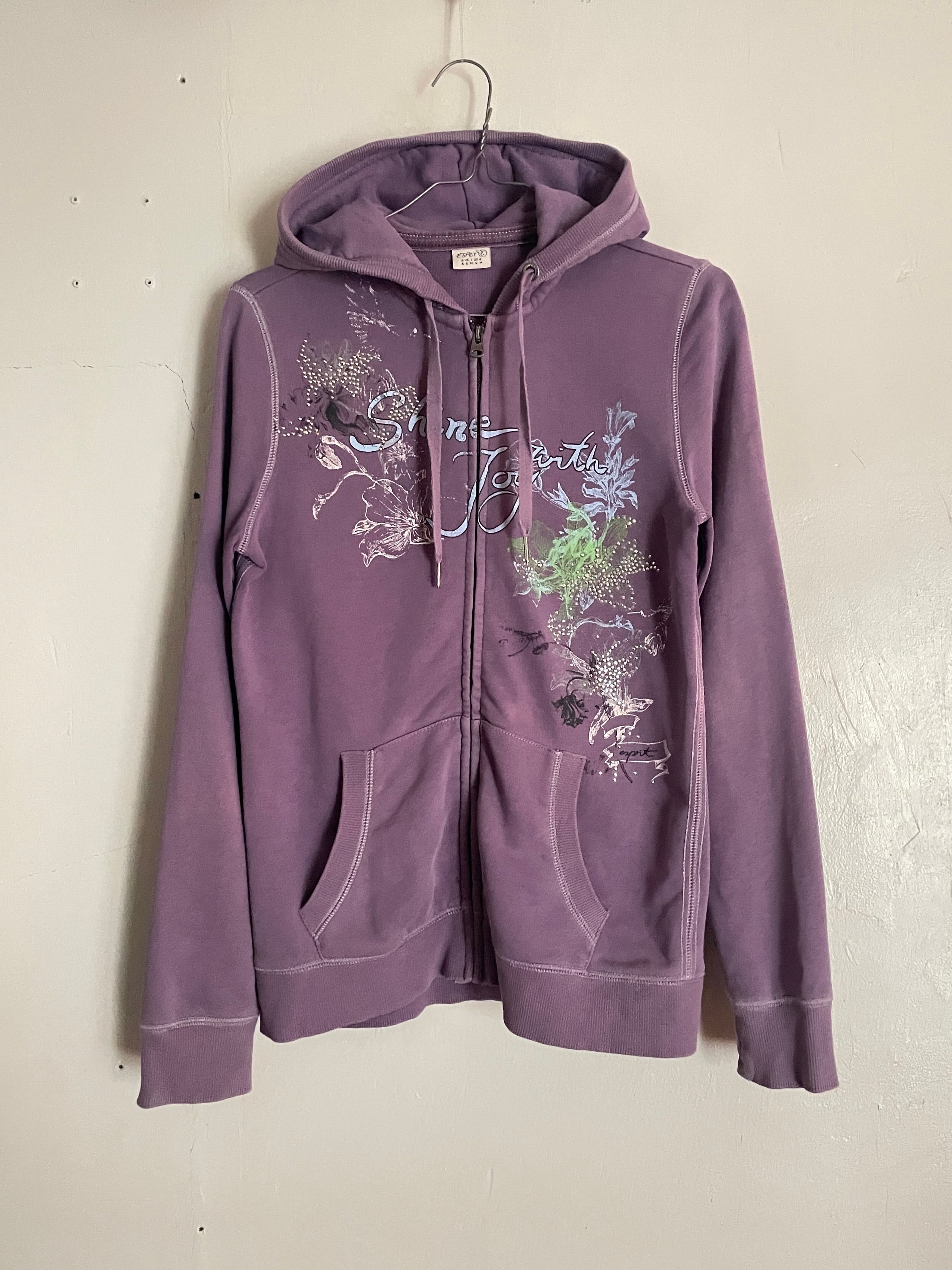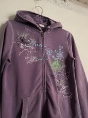 Old ESPRIT Purple Beads Printed Design Zip Hoodie