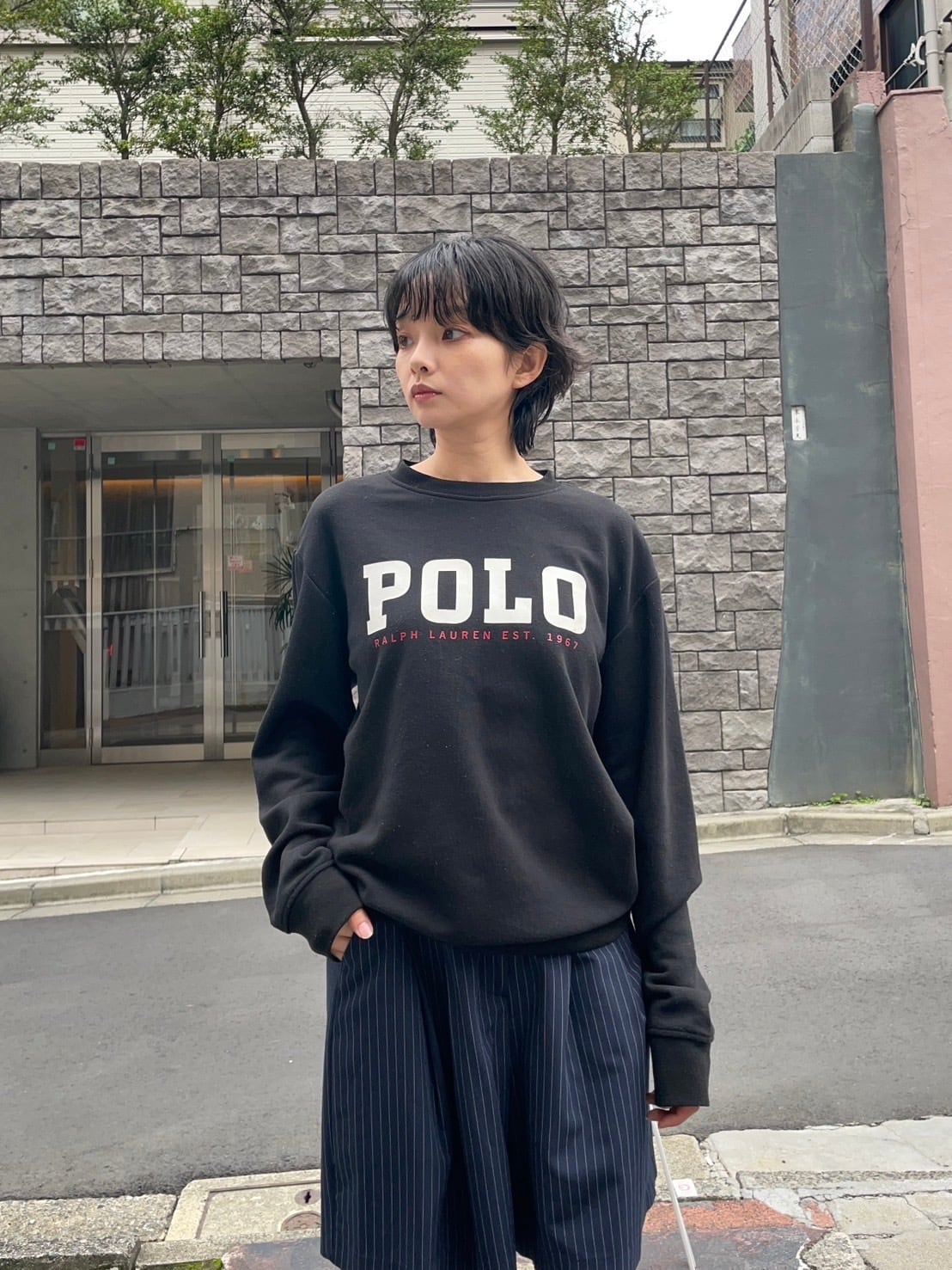ブラックボディに、デカめのラルフローレンのロゴプリントが施された、スウェット。ディテール自体はシンプルですが、ブラックにホワイト×レッドの配色はやっぱりかっこいいです。短丈めでありながら、身幅たっぷりな今っぽいシルエット。ポリとコットンの柔らかい質感なので、着心地も◎です。今の時期には一枚で、冬にはインナーとしても活躍してくれるアイテムです。