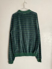 光沢のある綺麗なグリーンボディに、ブルーのボーダーデザインが施されたベロアポロシャツ。上品で質が良く、触り心地抜群のベロア素材。色気を感じられるディテールになっています。ゆったりとしたサイズ感で、一枚ではもちろん、インナーとしても活躍してくれるアイテムです。