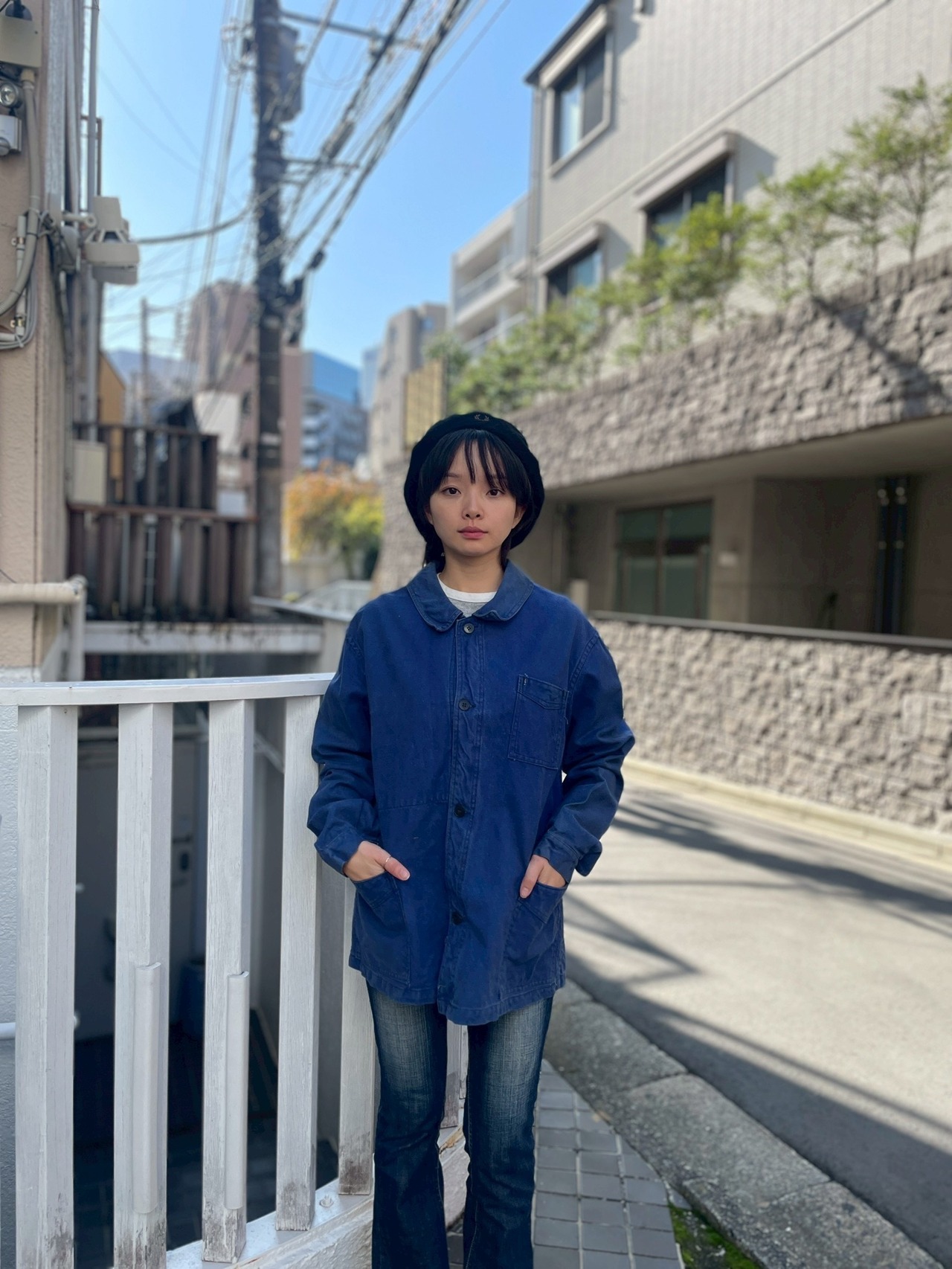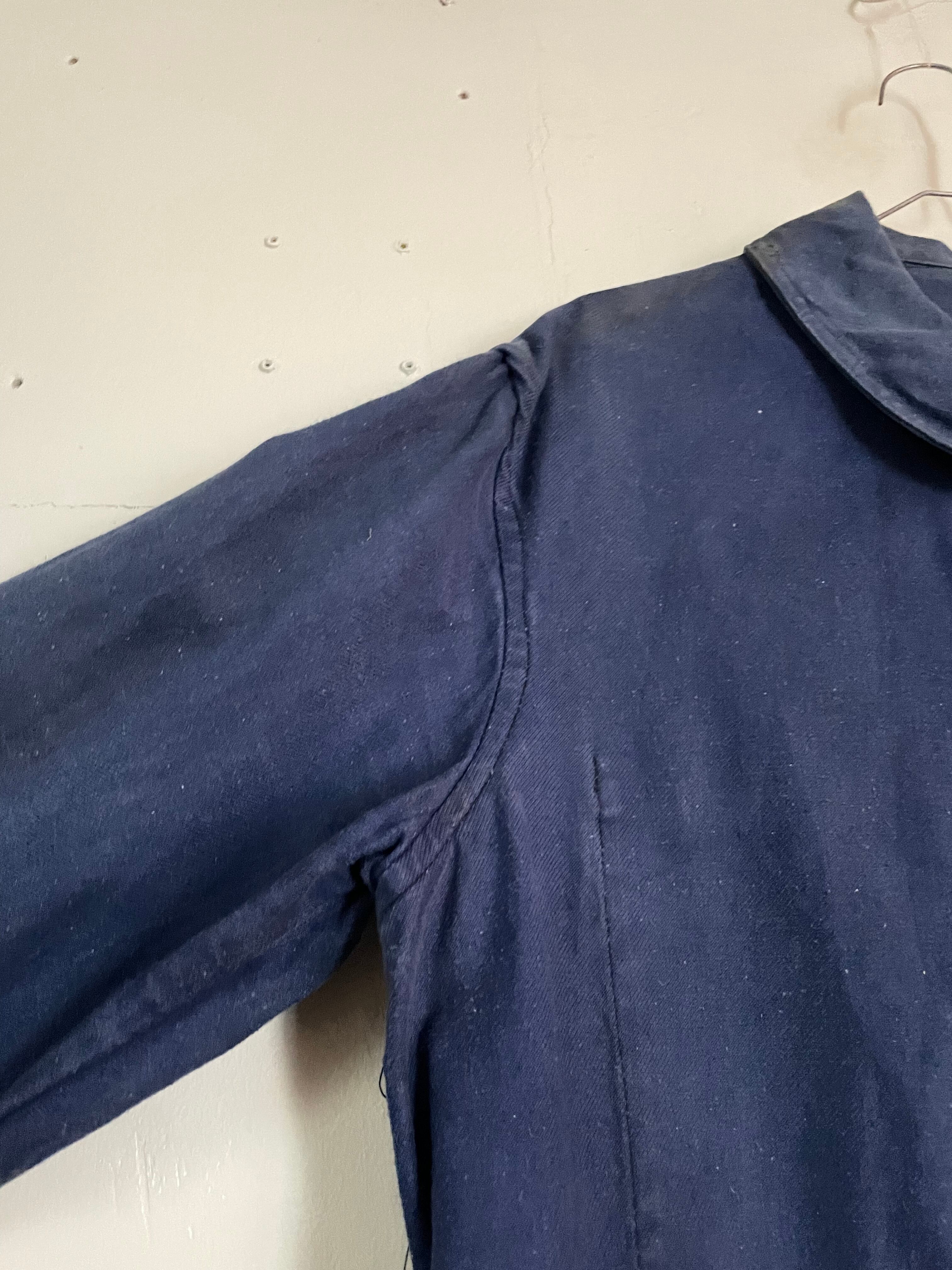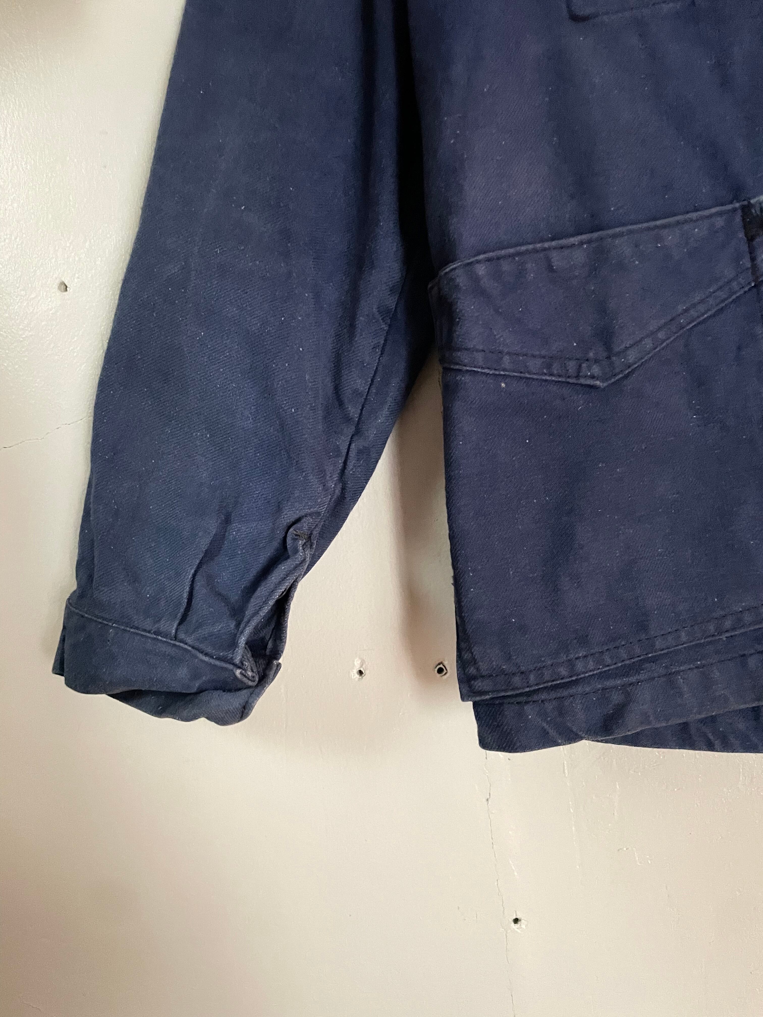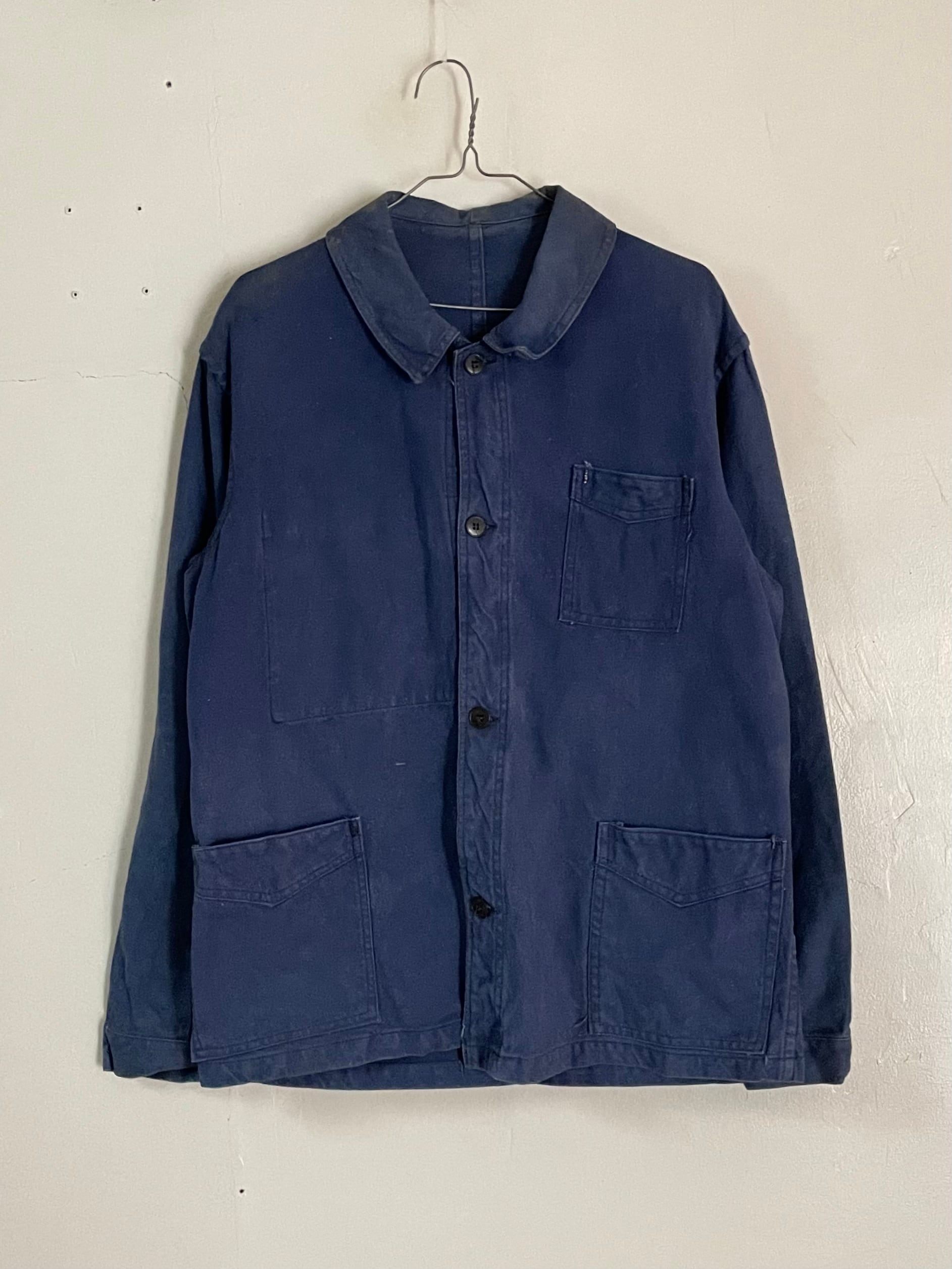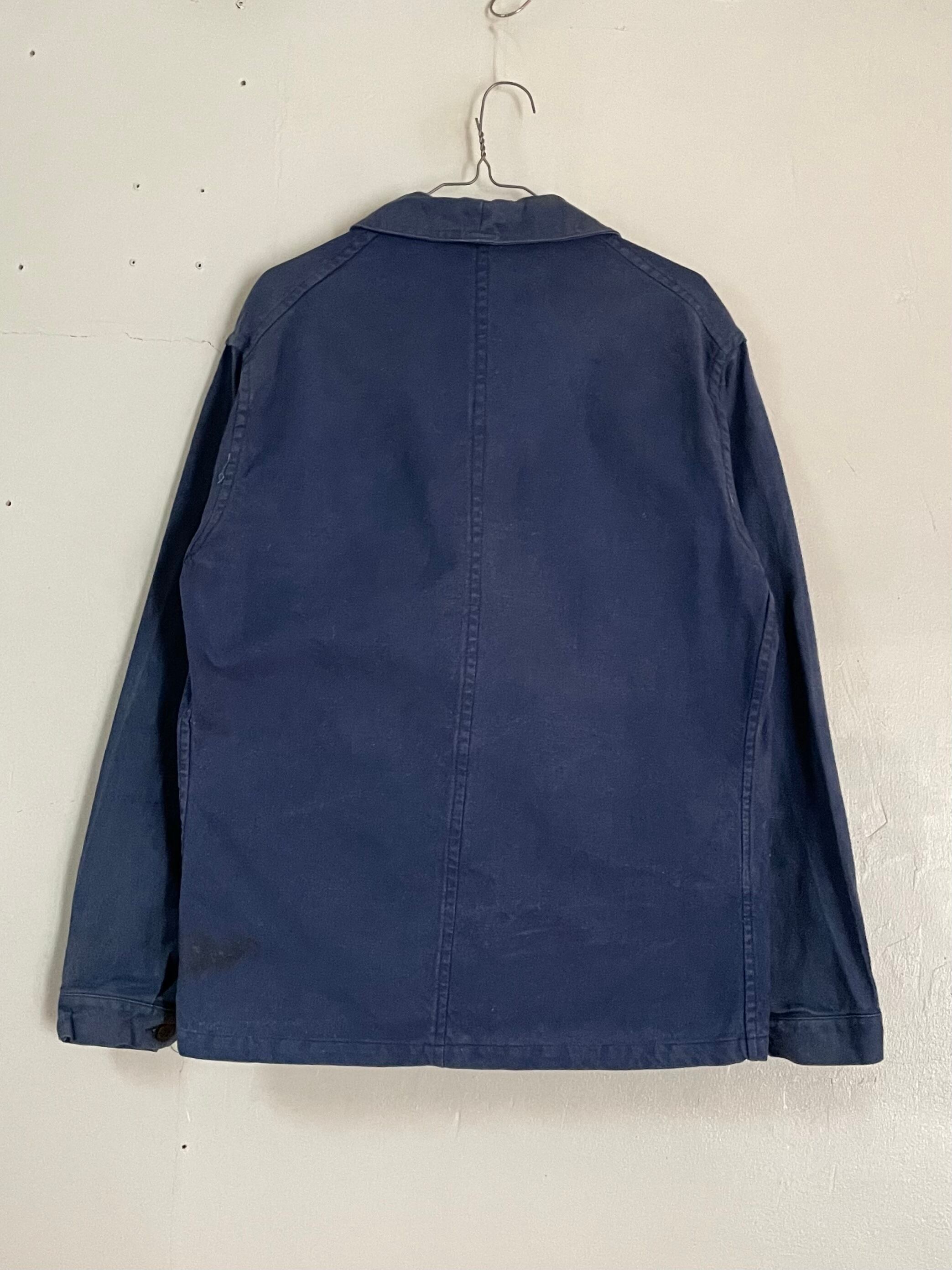 程良く褪せたネイビーボディの、ユーロワークジャケット。ワークジャケットは、ボロが多い中、こちらはかなり状態が良いかと思います。3ポケット付きなのもありがたいです。しっかりとしたタフな生地感で、今の時期にはファッションの主役になってくれる事間違いなしのアイテムです。