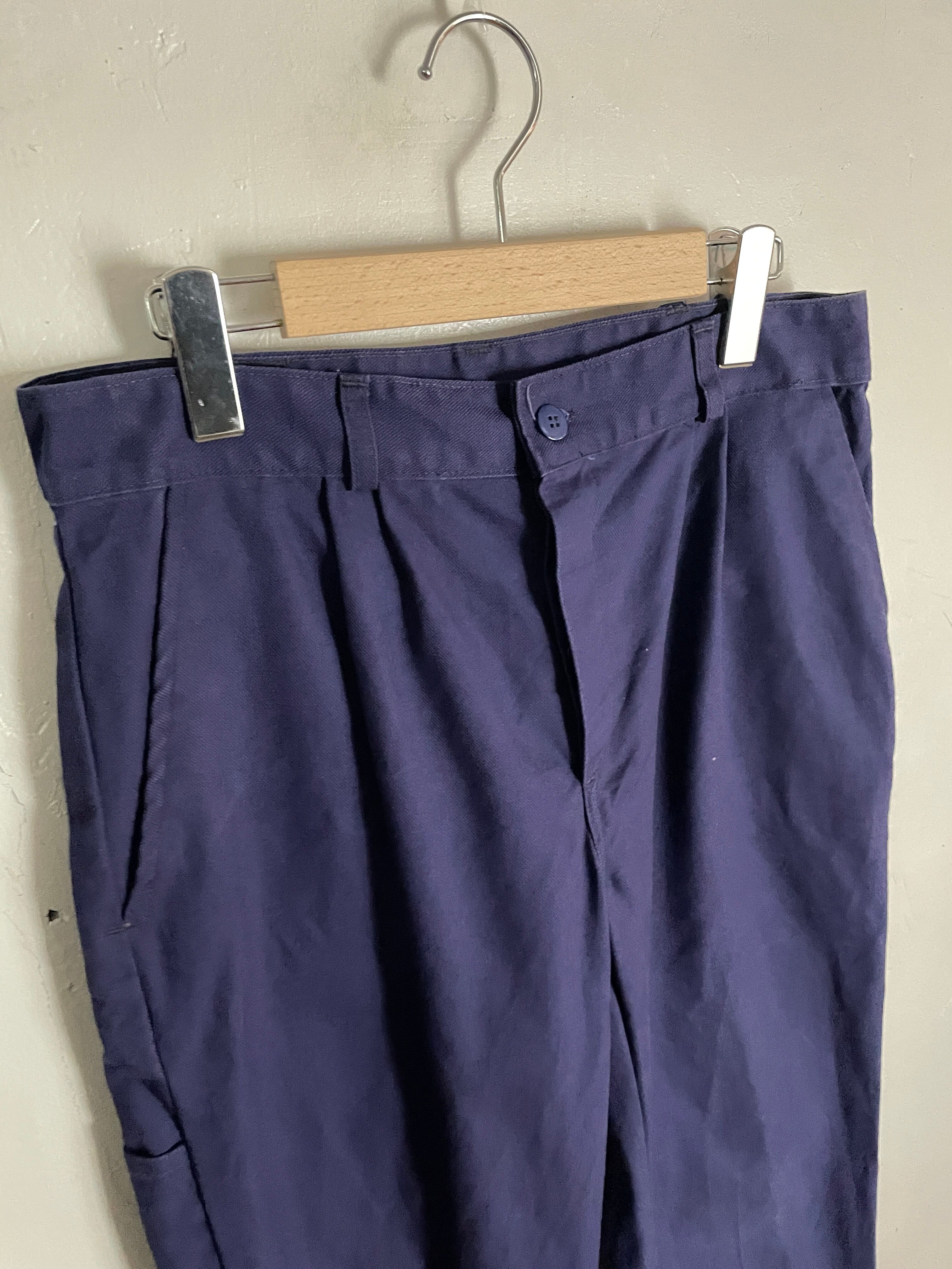 パープルの色味が雰囲気のあるユーロワークパンツ。ペインターパンツのようなハンマーポケット付きで、ウエストにはタック入っていて、綺麗なワイドシルエット。こういったワークパンツにはダメージが良く見られますが、こちらは目立ったダメージもなく、コンディションは◎です。