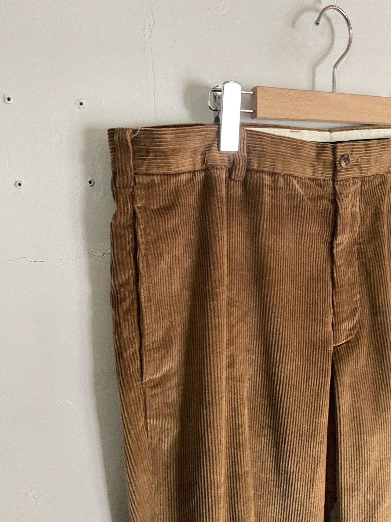 やや褪せたブラウンカラーで、綺麗なワイドシルエットが魅力的な、ブルックスブラザーズのコーデュロイパンツ。まさに冬に履きたいアイテムです。シルエットの良さはさすがブルックスです。今の季節には欠かせないアイテムかと思います。様々なアイテムとの相性の良い一本です。