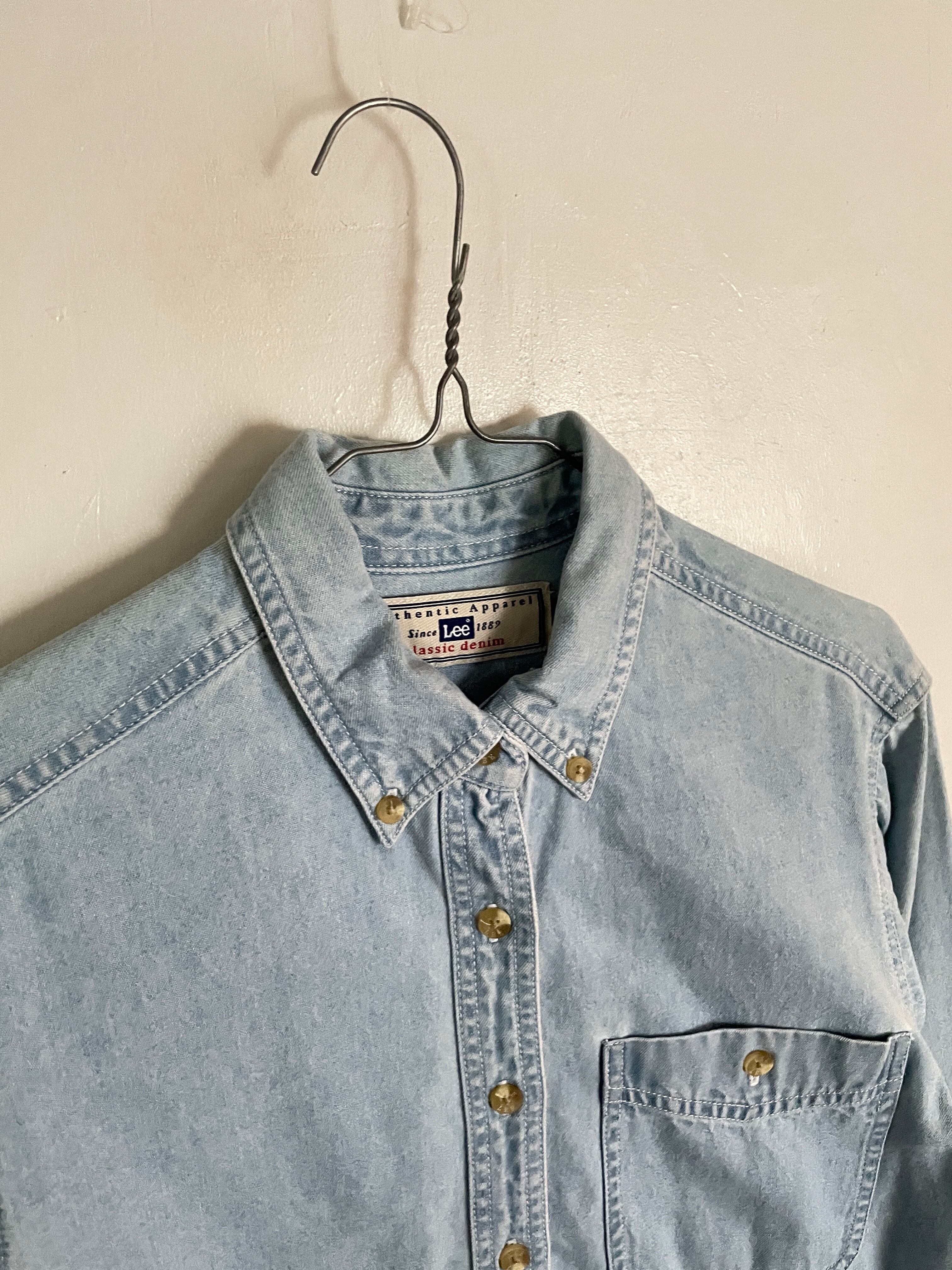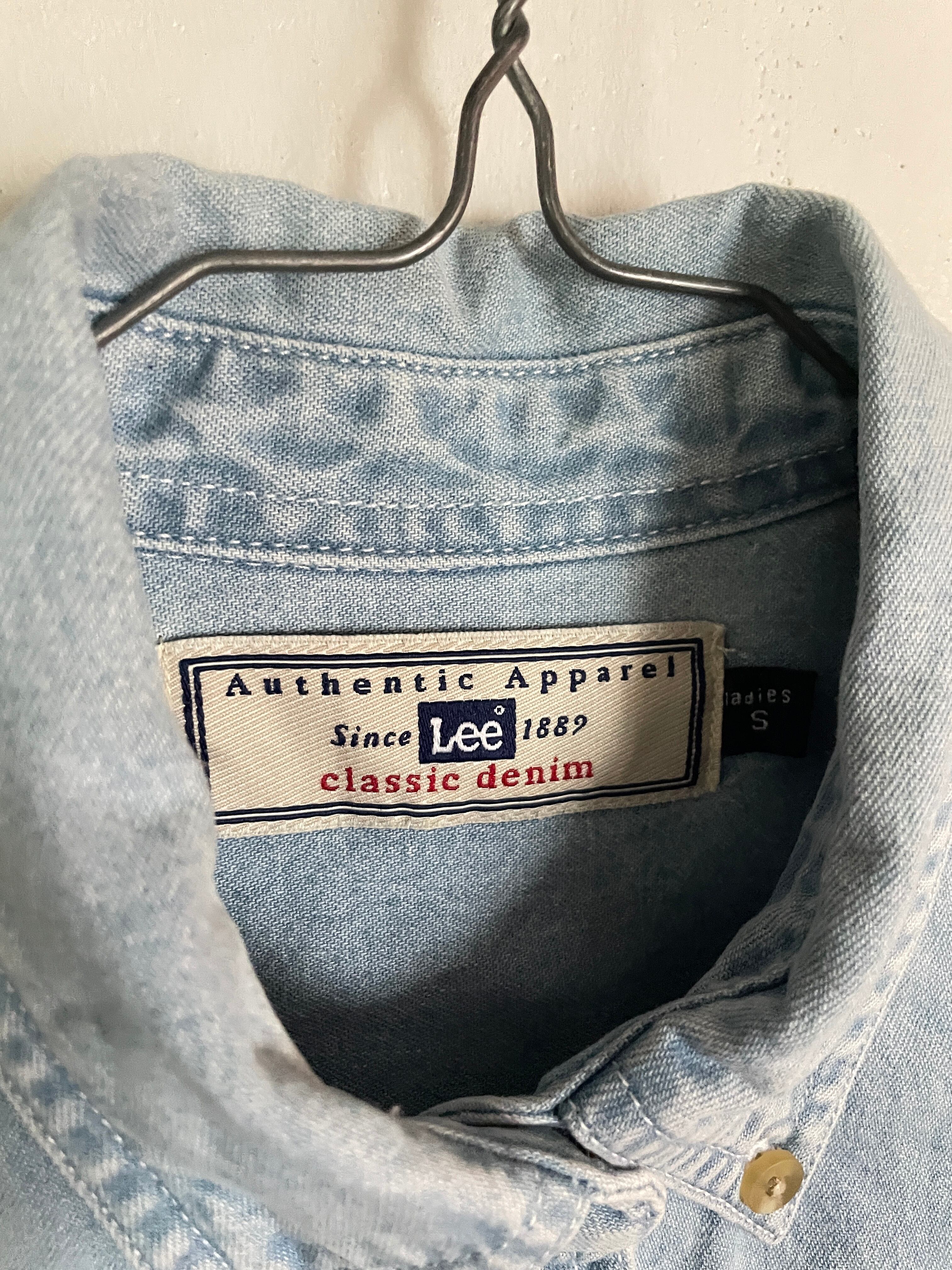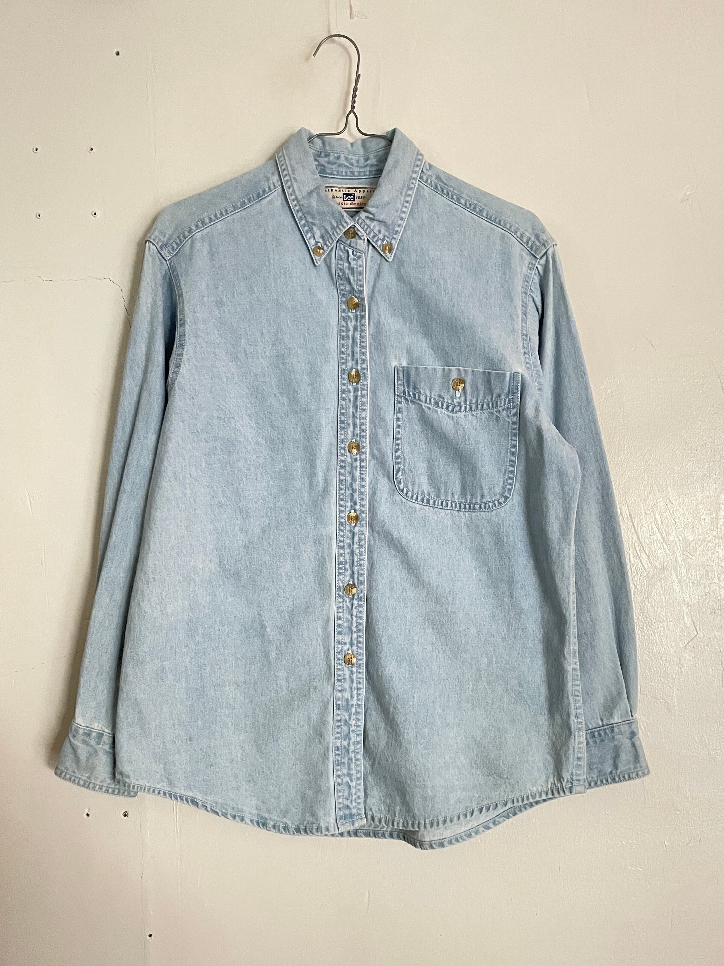 薄めのブルーボディで、一枚でもインナーとしても使い勝手の良い、リーのデニムシャツ。シンプルで様々なファッションに取り入れやすいシャツかと思います。サイズ表記はSですが、それにしては大きめなサイズ感かと思います。男女共におすすめできるアイテムです。