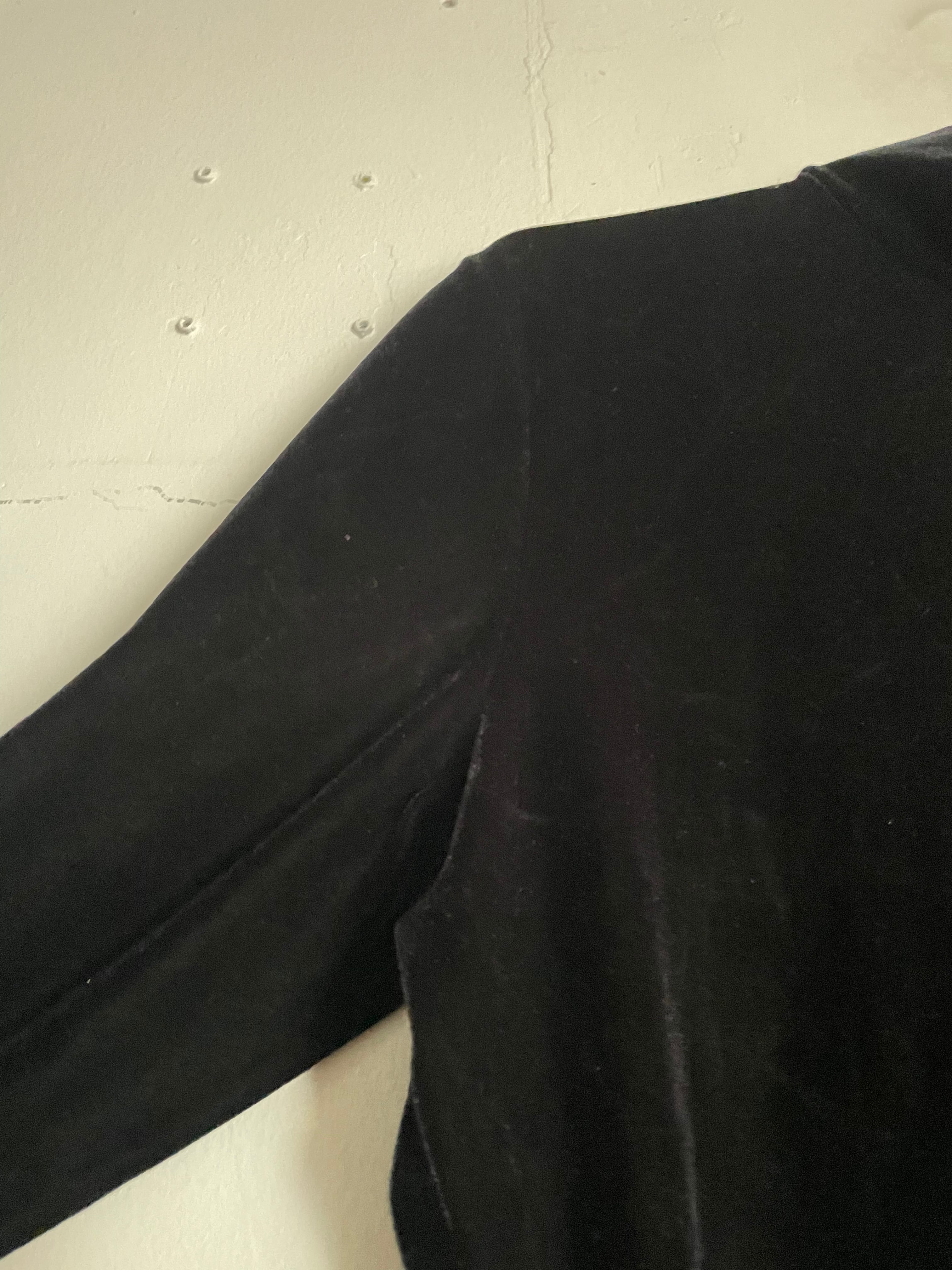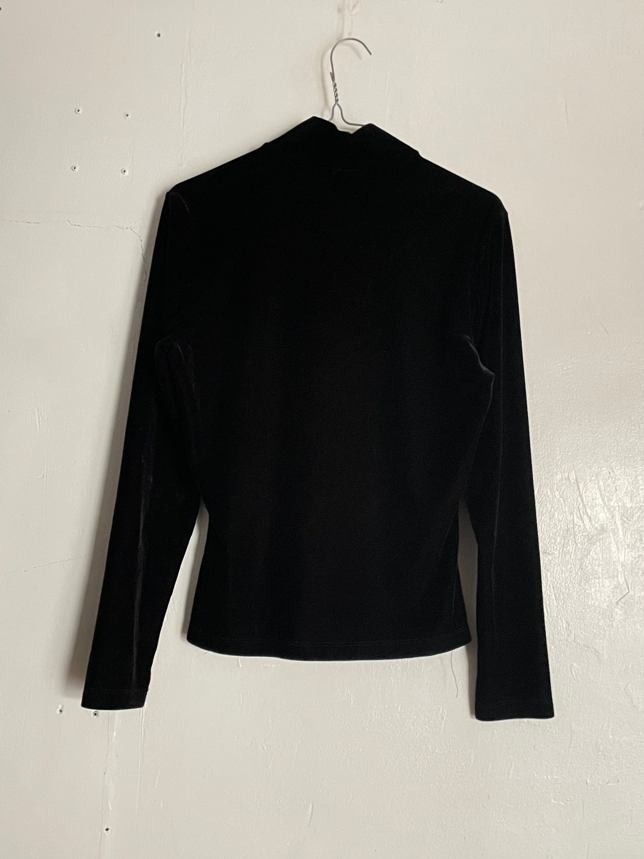 光沢感のある滑らかなベロアタートルネックロンT。上品で高級感溢れるディテールになっています。ストレッチが効いているので、着やすさも抜群に良いです。今の時期には様々なアウターのインナーなどで活躍してくれそうです。