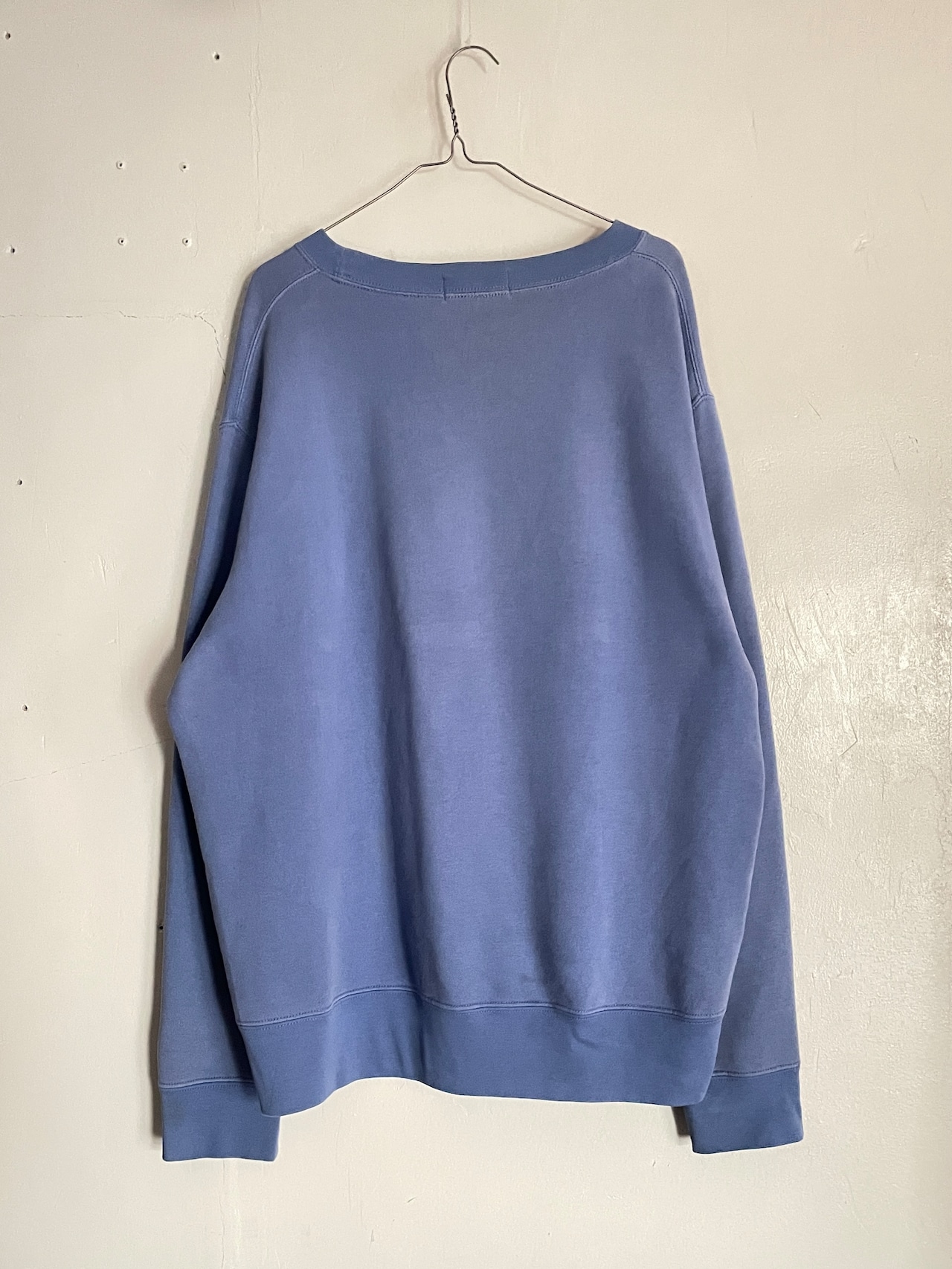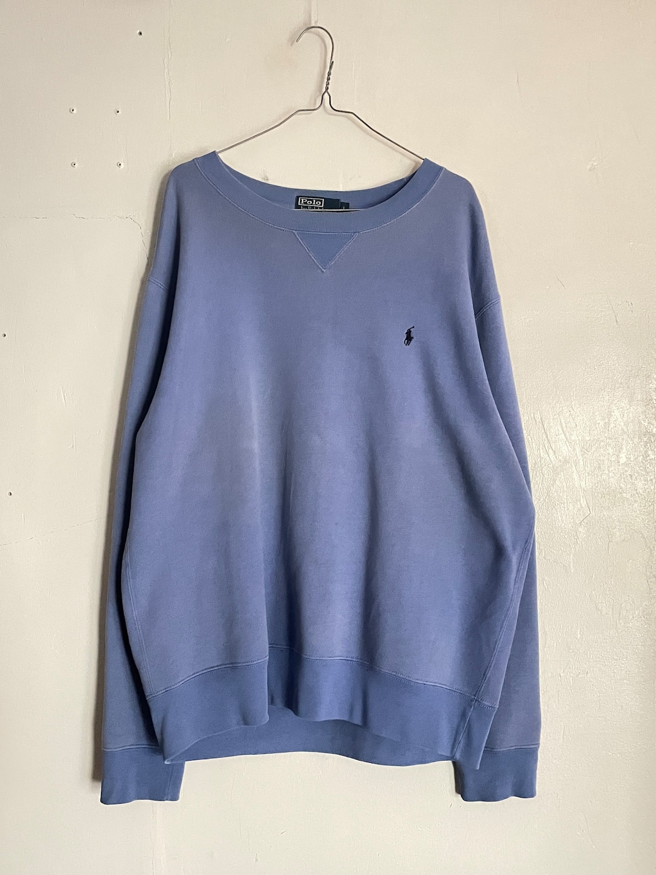 やや褪せたライトブルーボディに、ワンポイントでポニーロゴが施された、ラルフローレンのスウェット。パープルっぽくも見える良い色味。肩の落ちるようなゆったりとしたサイズ感になっています。一枚ではもちろんですが、インナーとしても活躍してくれるアイテムです。