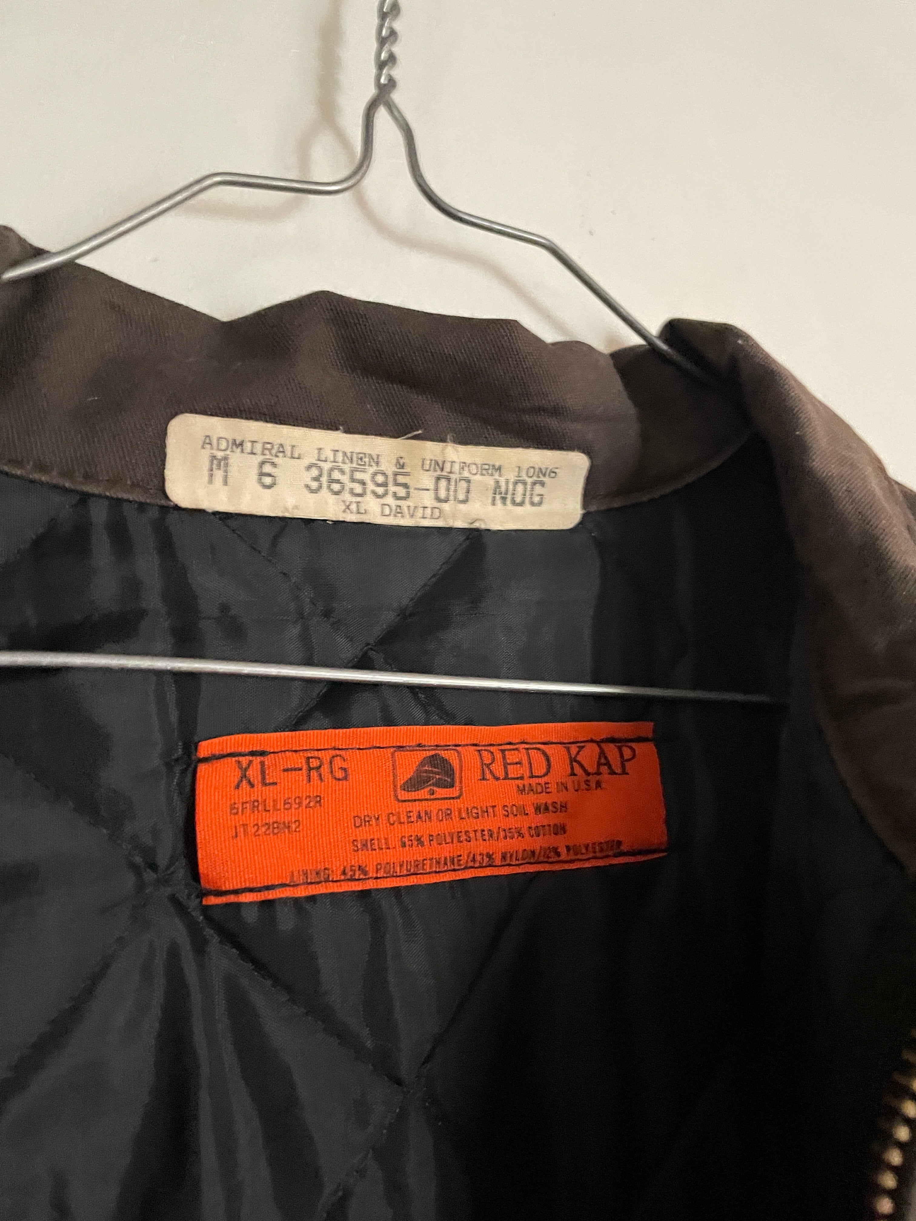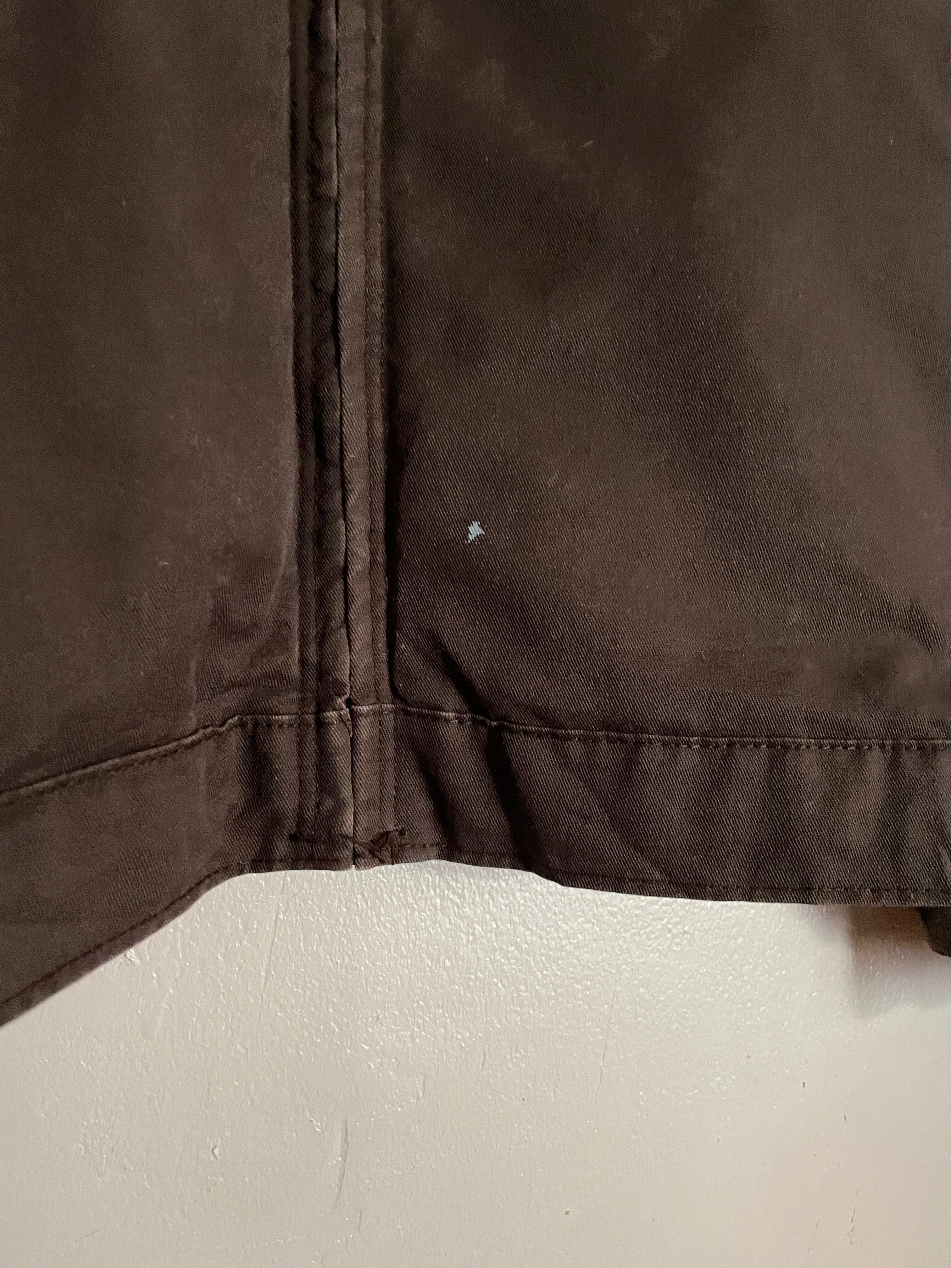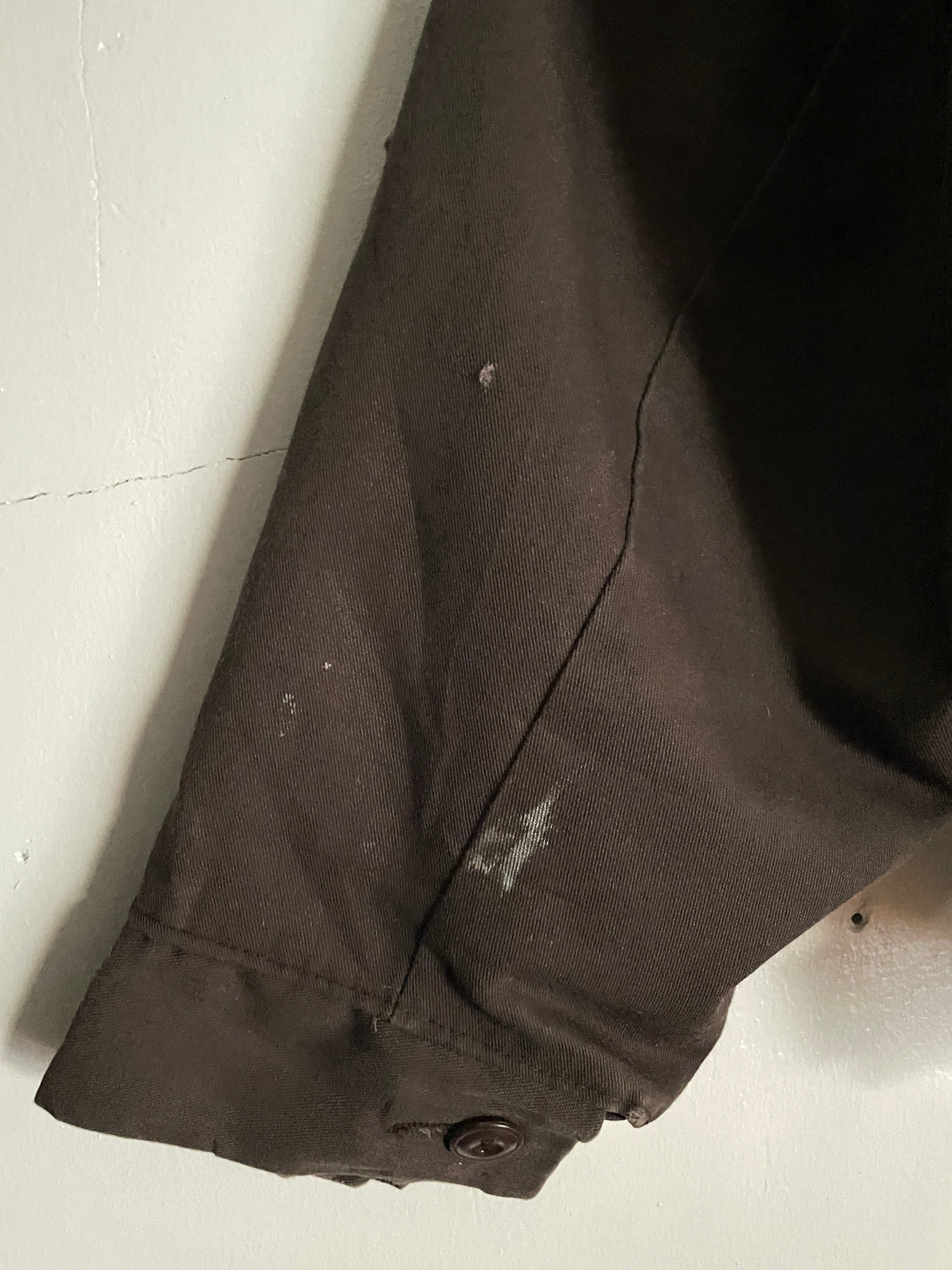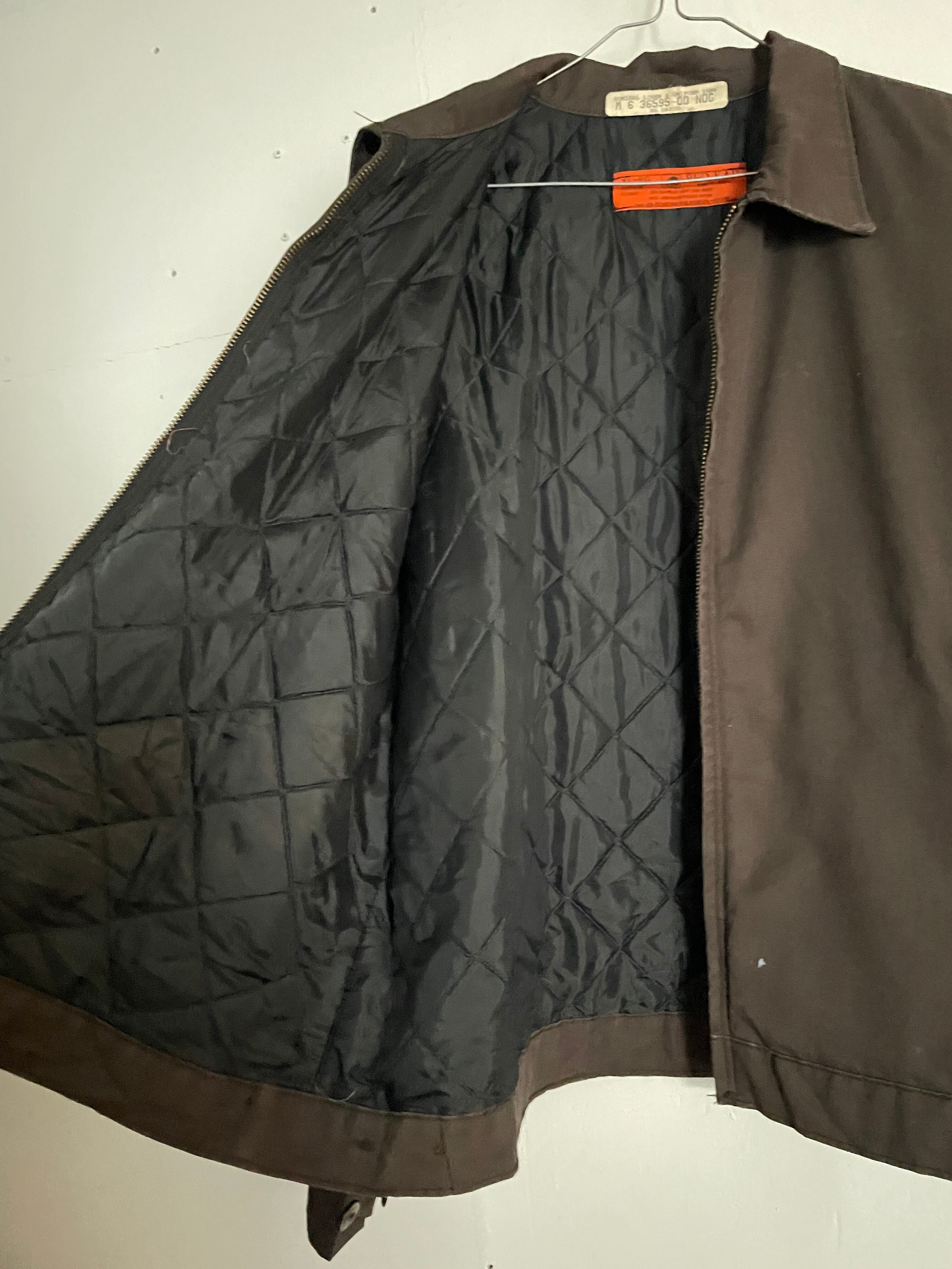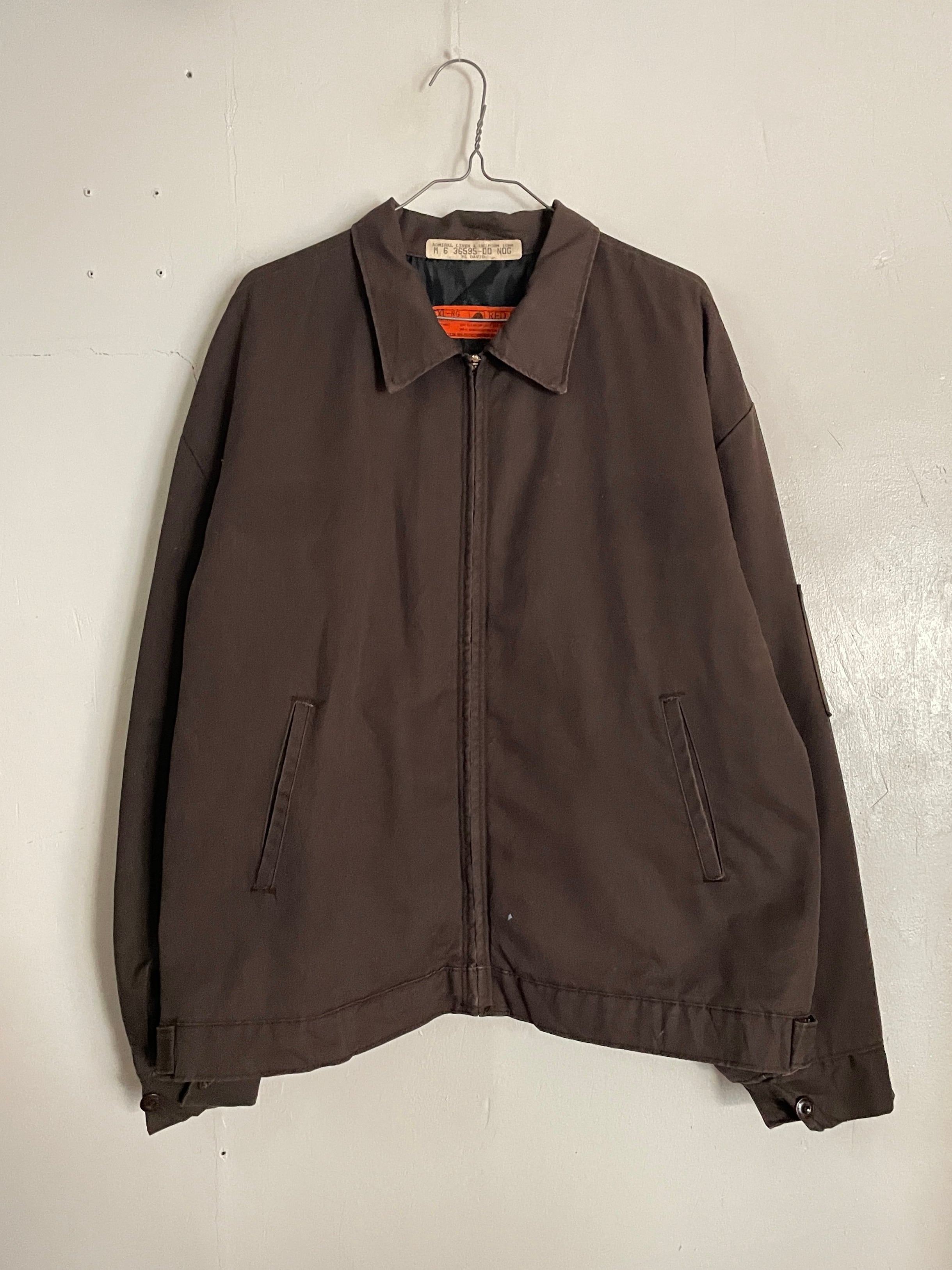 渋さのあるブラウンボディの、ワークジャケット。レッドキャップのもの。ディテール自体はシンプルですが、所々のペイント跡などが堪らなくかっこいい1着。肉厚なボディで、今の時期にはぴったりのジャケットです。裏地はサラッとしたキルティング素材になっています。ゆったりとしたサイズ感なので、インナーにもしっかり着込めそうです。タロンジップでUSA製のアイテムです。