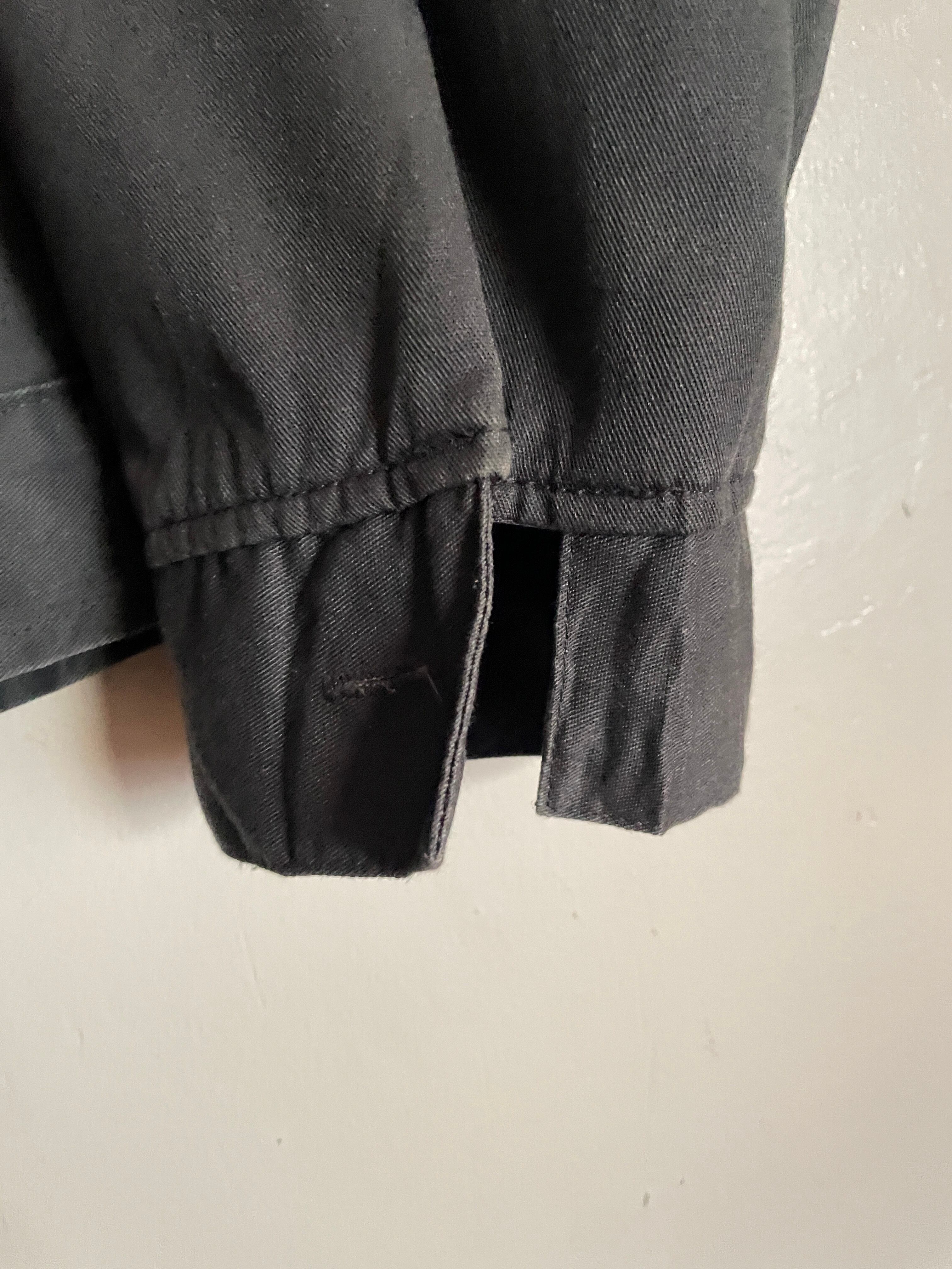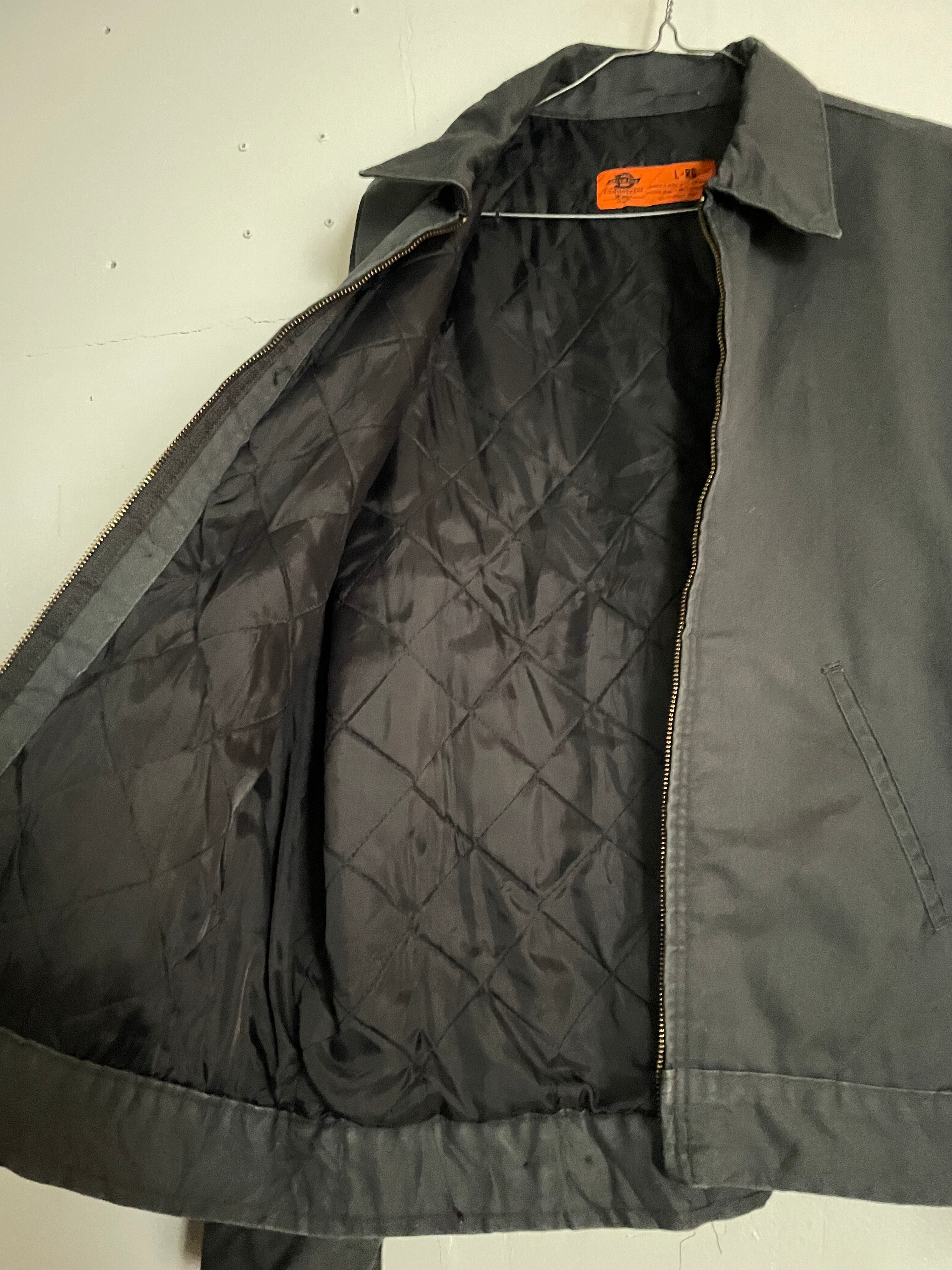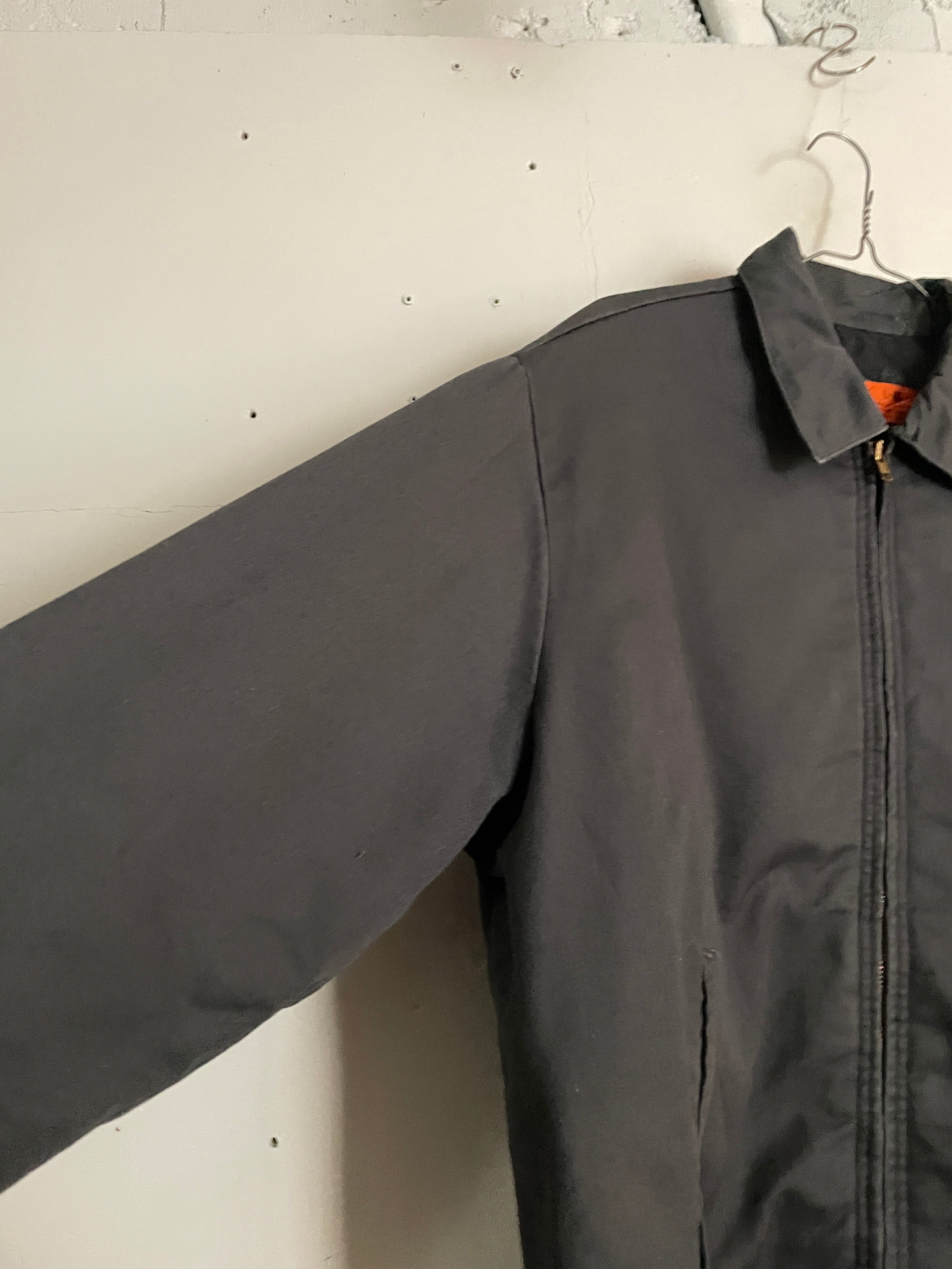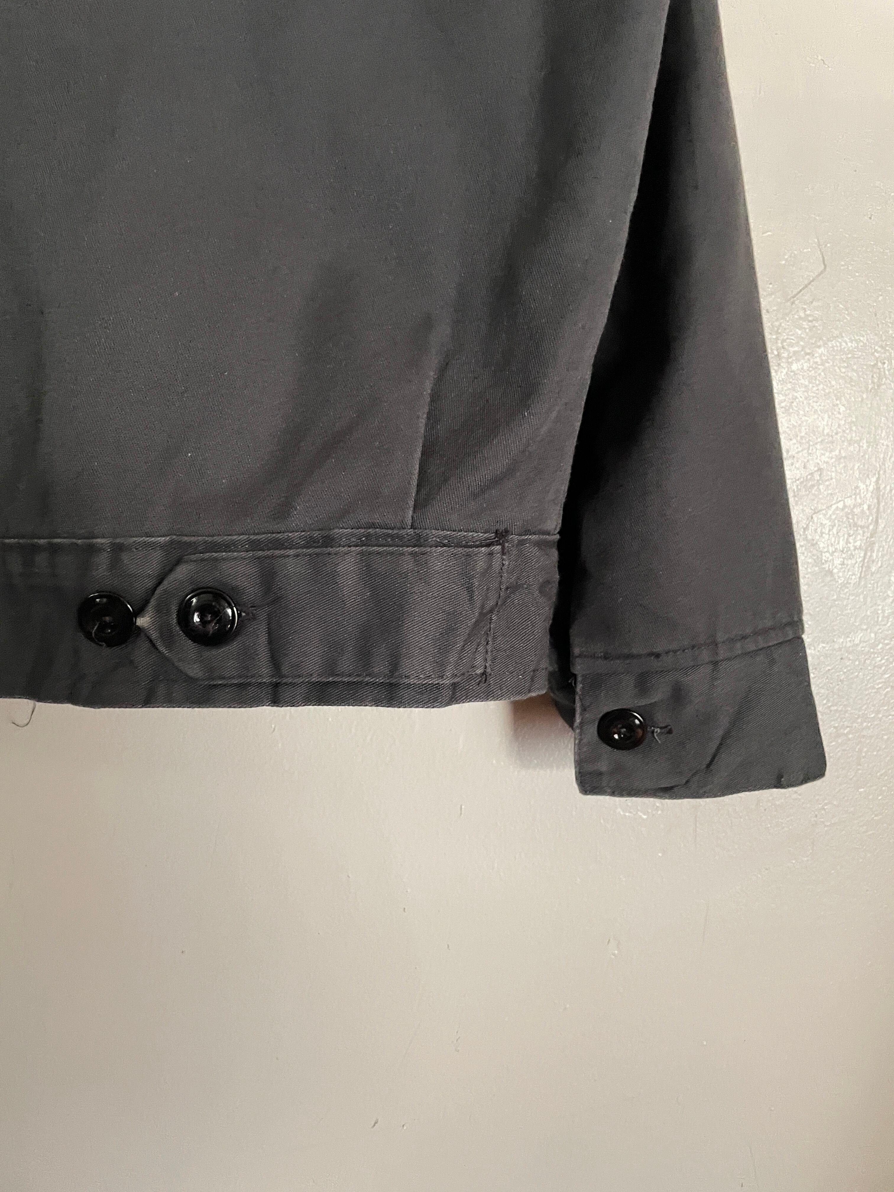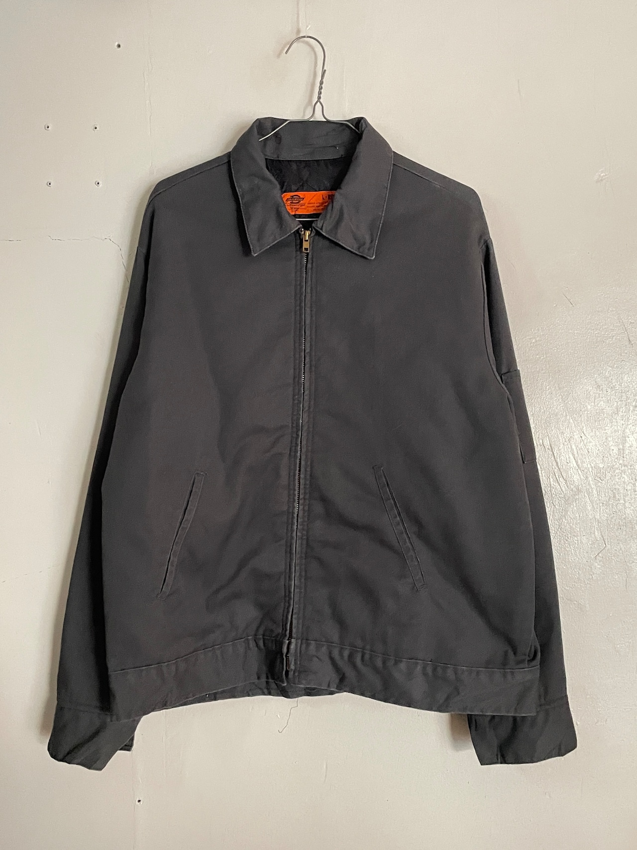 グレーボディで、シンプルで使い勝手の良い、ディッキーズのワークジャケット。タフな肉厚ボディなので、今の時期にはもってこいのジャケットです。ジップタイプで着脱もしやすく、様々なアイテムとの相性の良いアイテムです。裏地はサラッとしたキルティング素材になっています。大き過ぎず、小さ過ぎないサイズ感なので、男女共におすすめしたい1着です。右袖口ボタンが欠損しています。