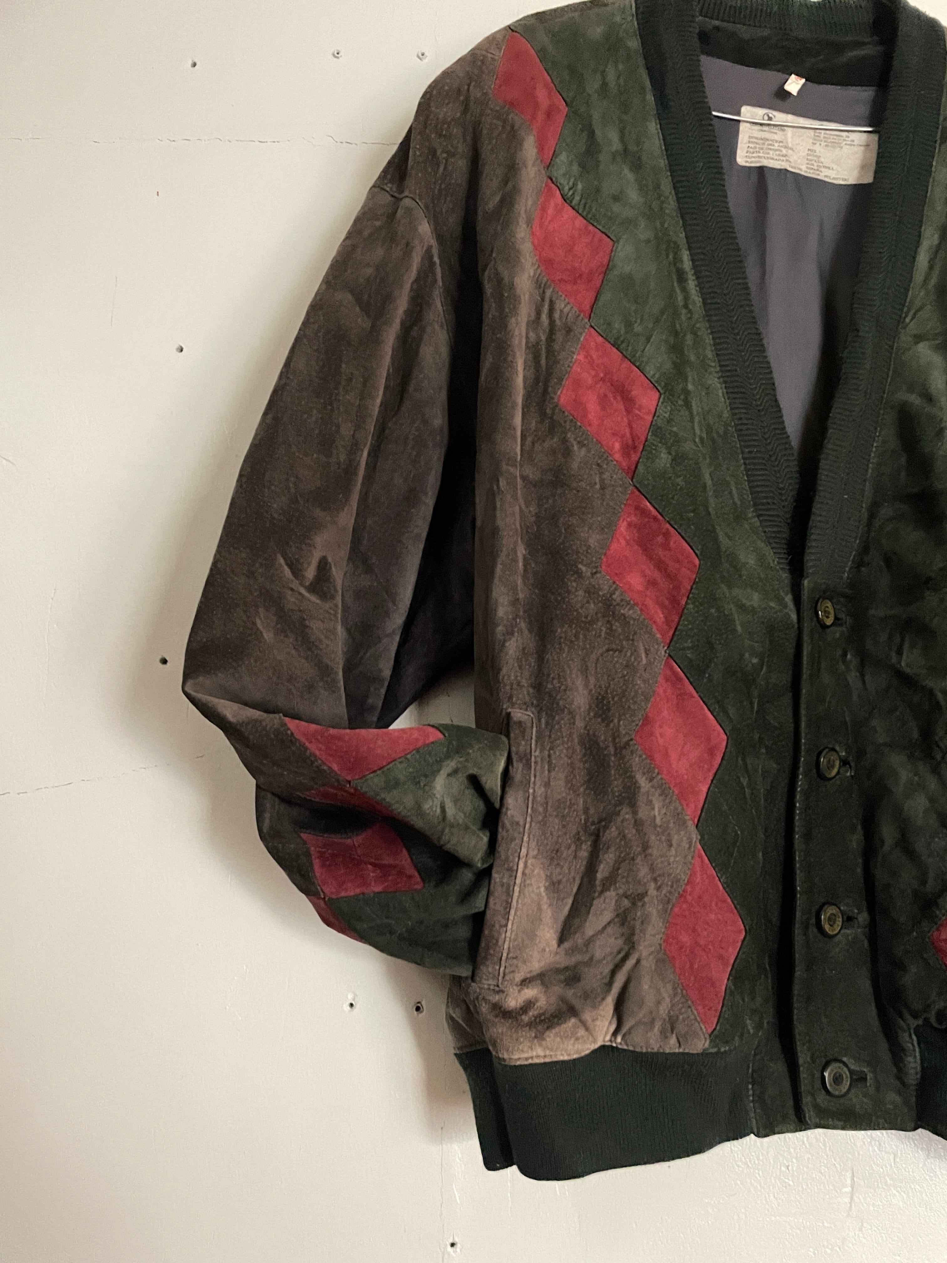 Old CENTRO PELETERO Suede Leather Swiching Pattern Design Kint Cardigan