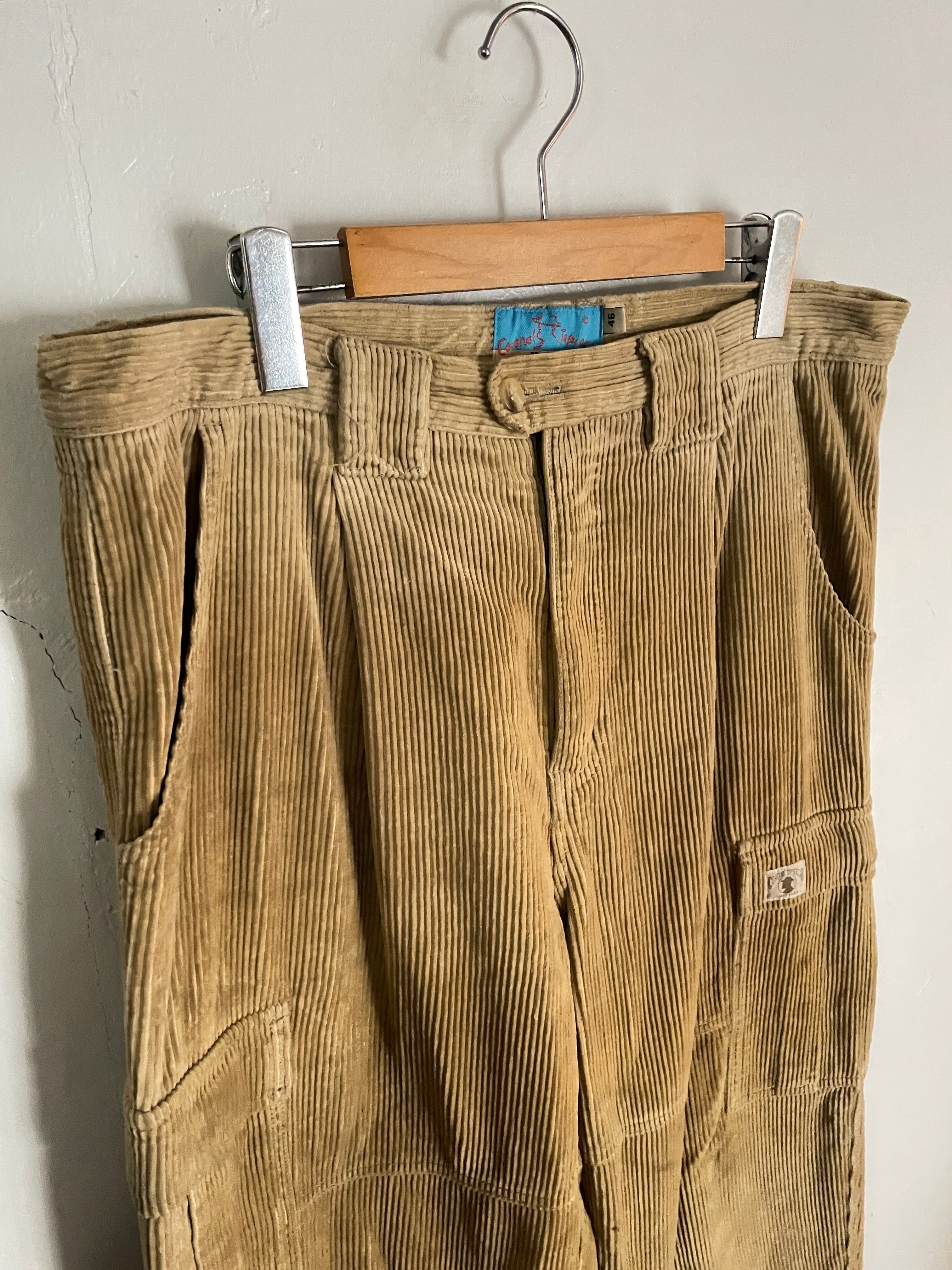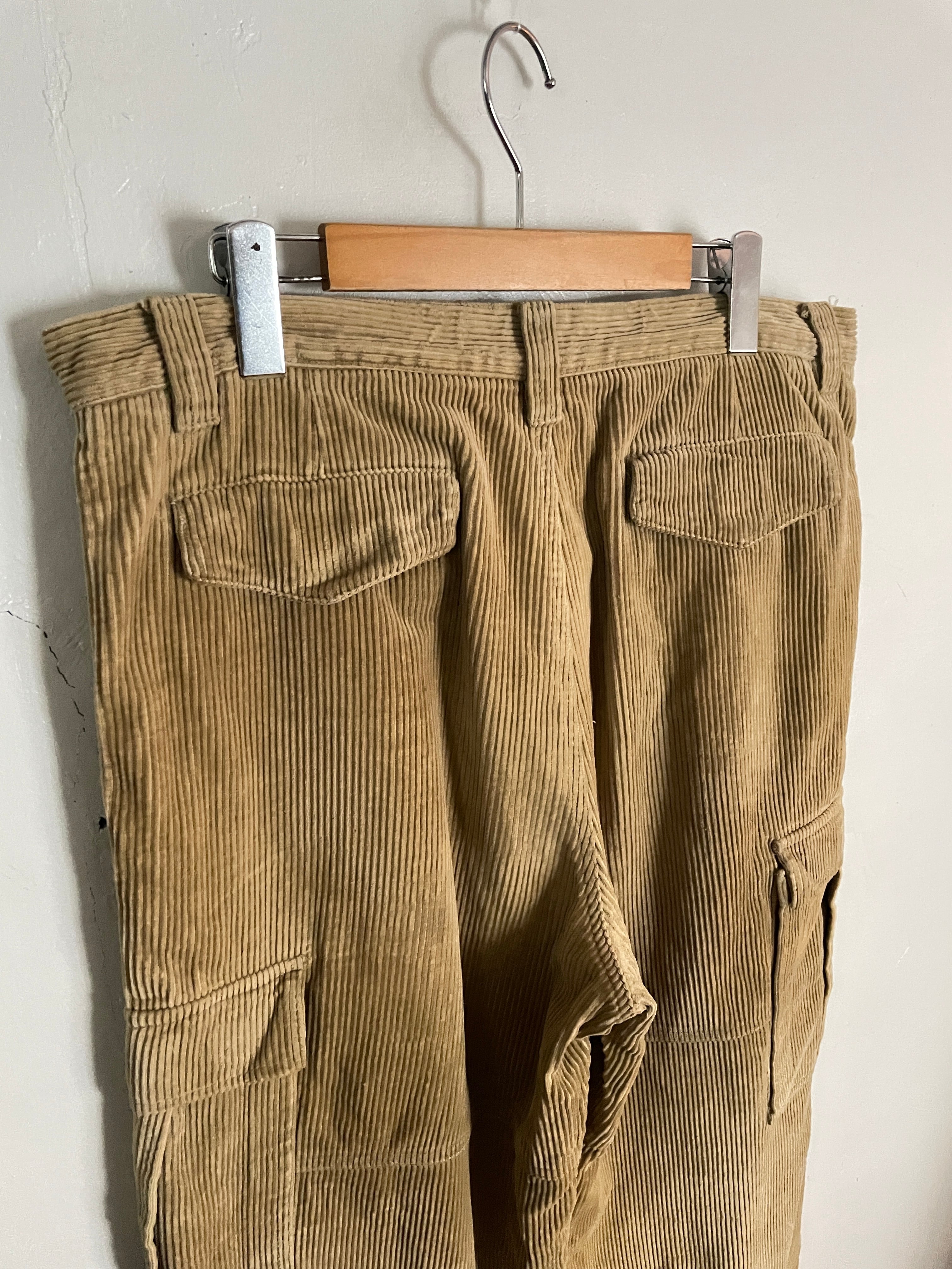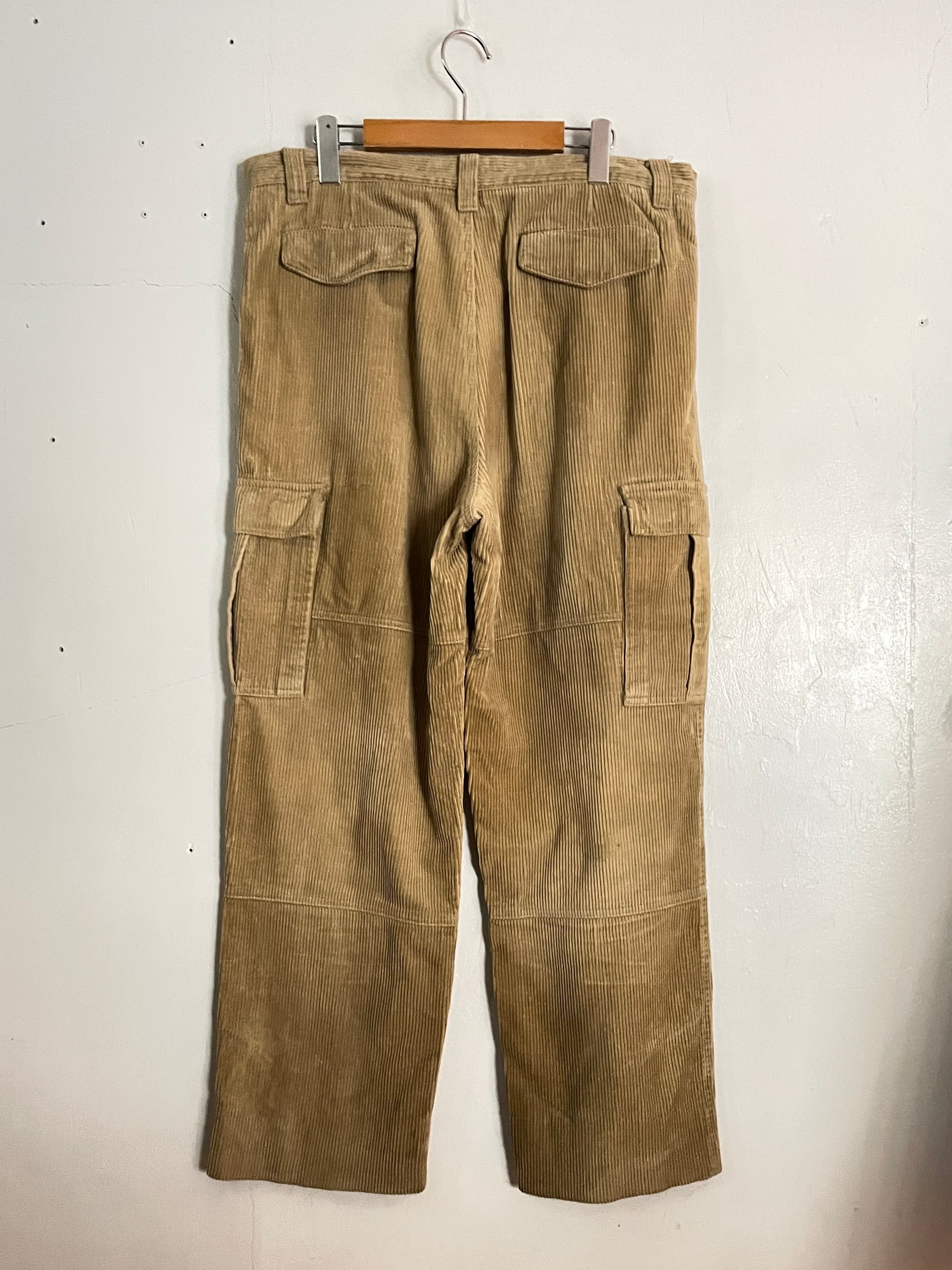 Old Beige Tack Design Wide Cargo Corduroy Pants