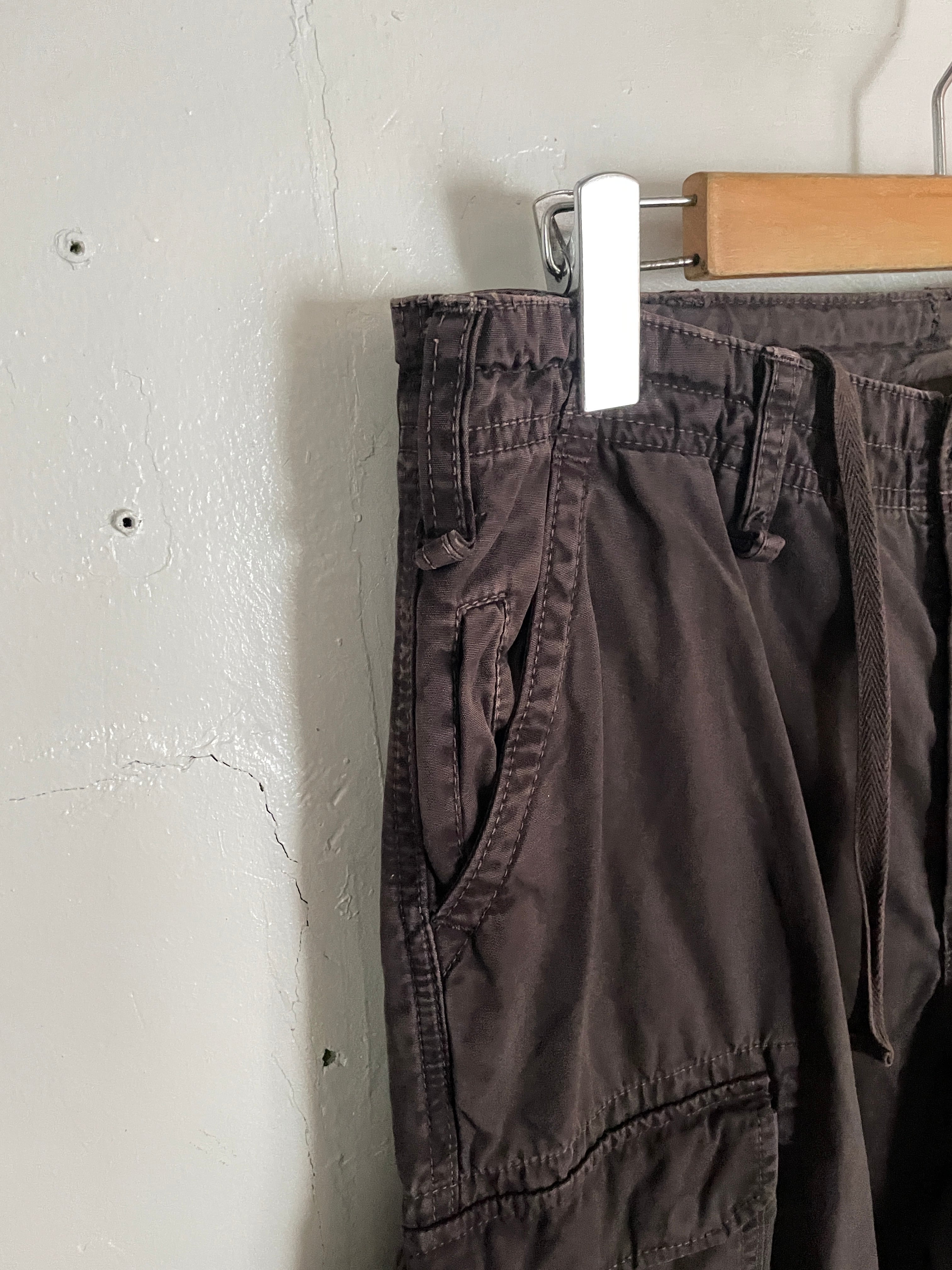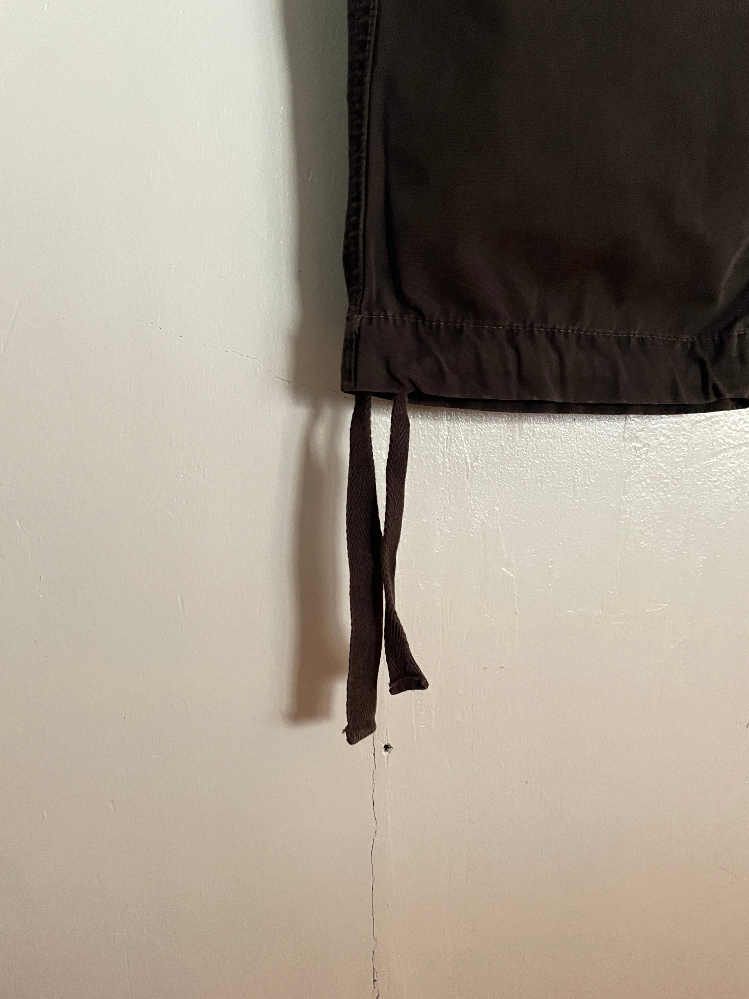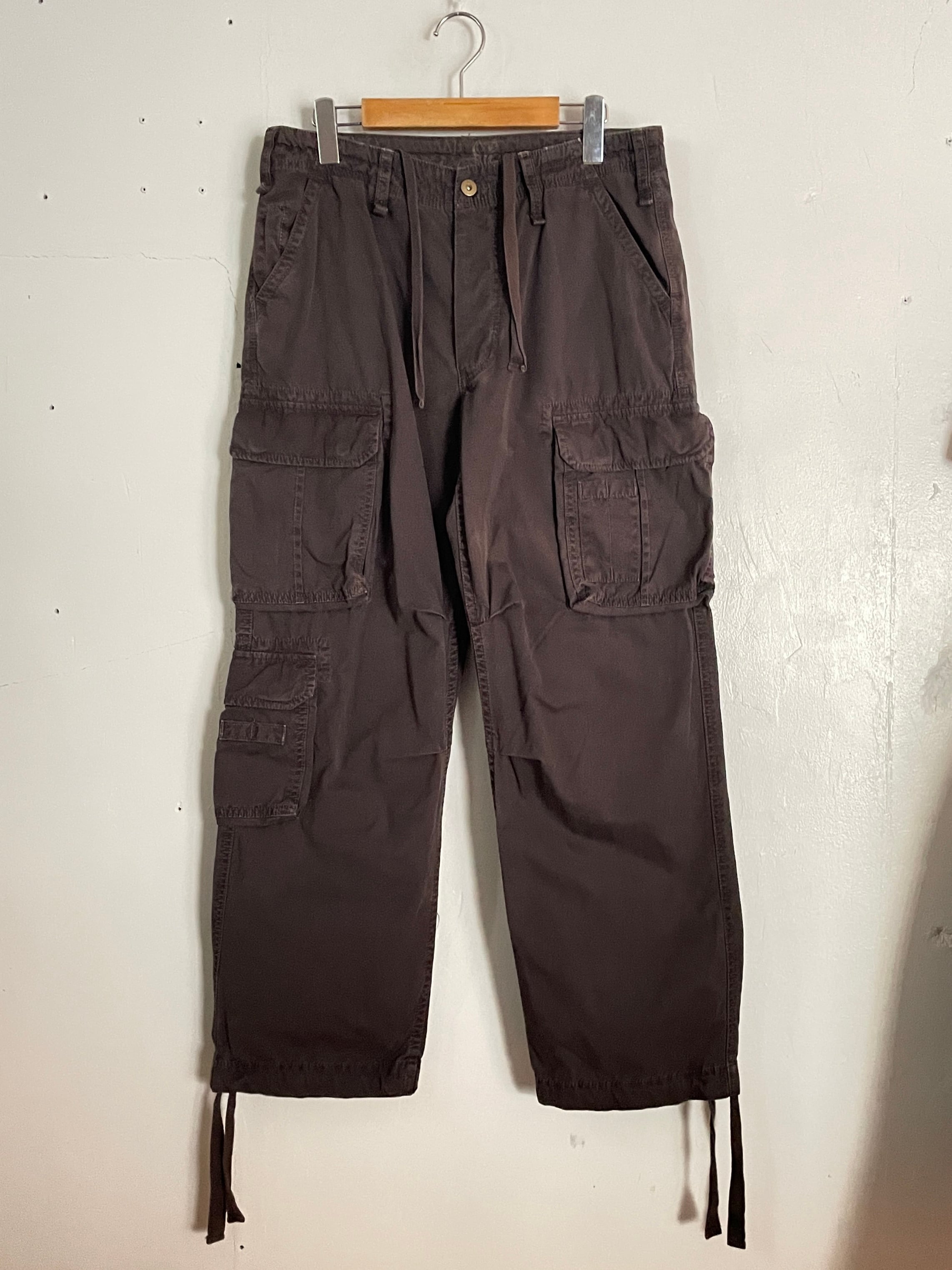 やや褪せたグレーカラーで、ギミックが豊富なカーゴパンツ。テックとY2Kがミックスしたようなディテールです。ポケットが多く、機能性抜群です。ガツンとしたワイドシルエット。ウエスト、裾にはドローコード付き。裾を縛って履いても、また違ったシルエットで履けます。さらっとしたコットン素材なので、楽に履けるのも魅力的です。