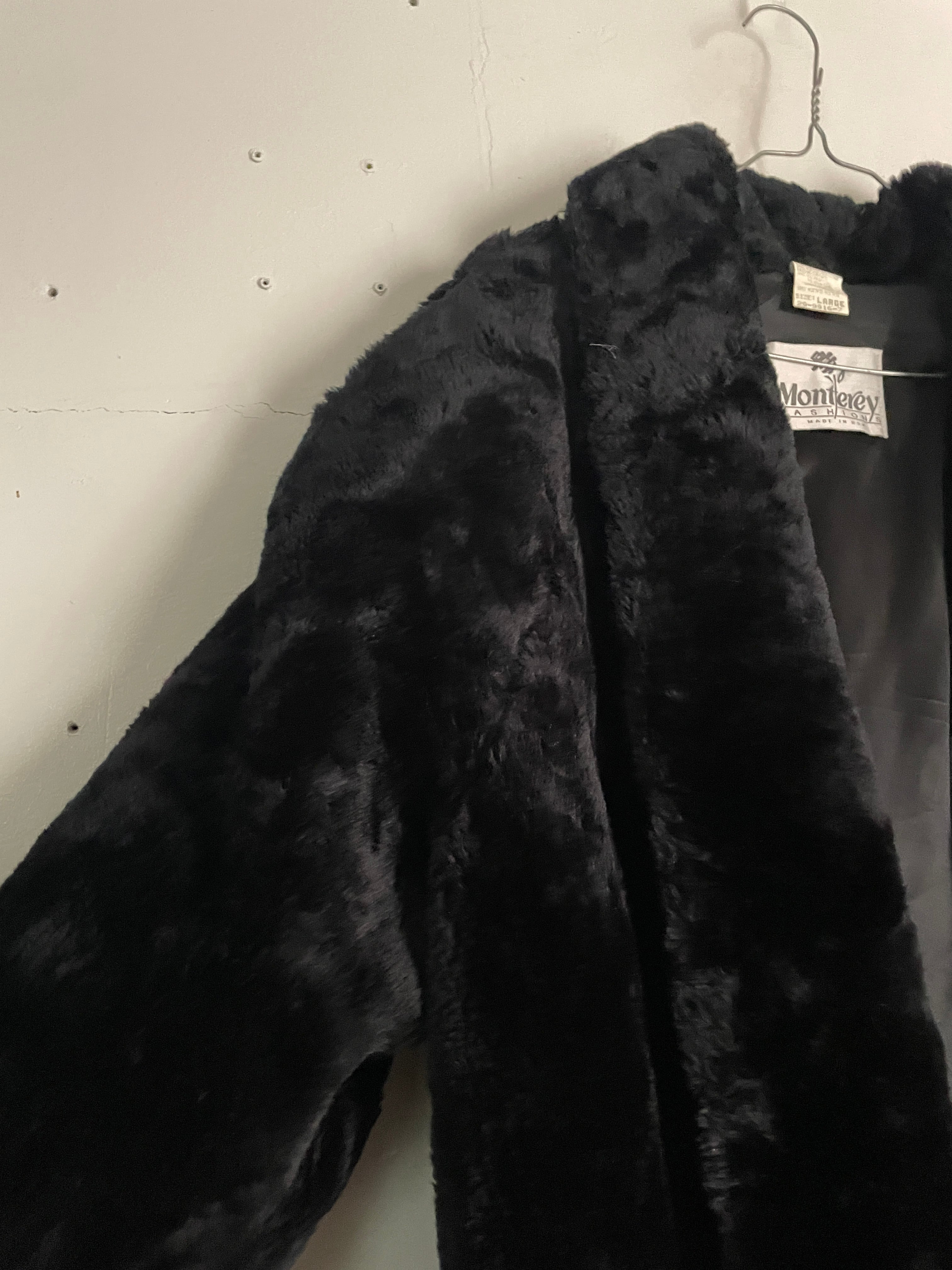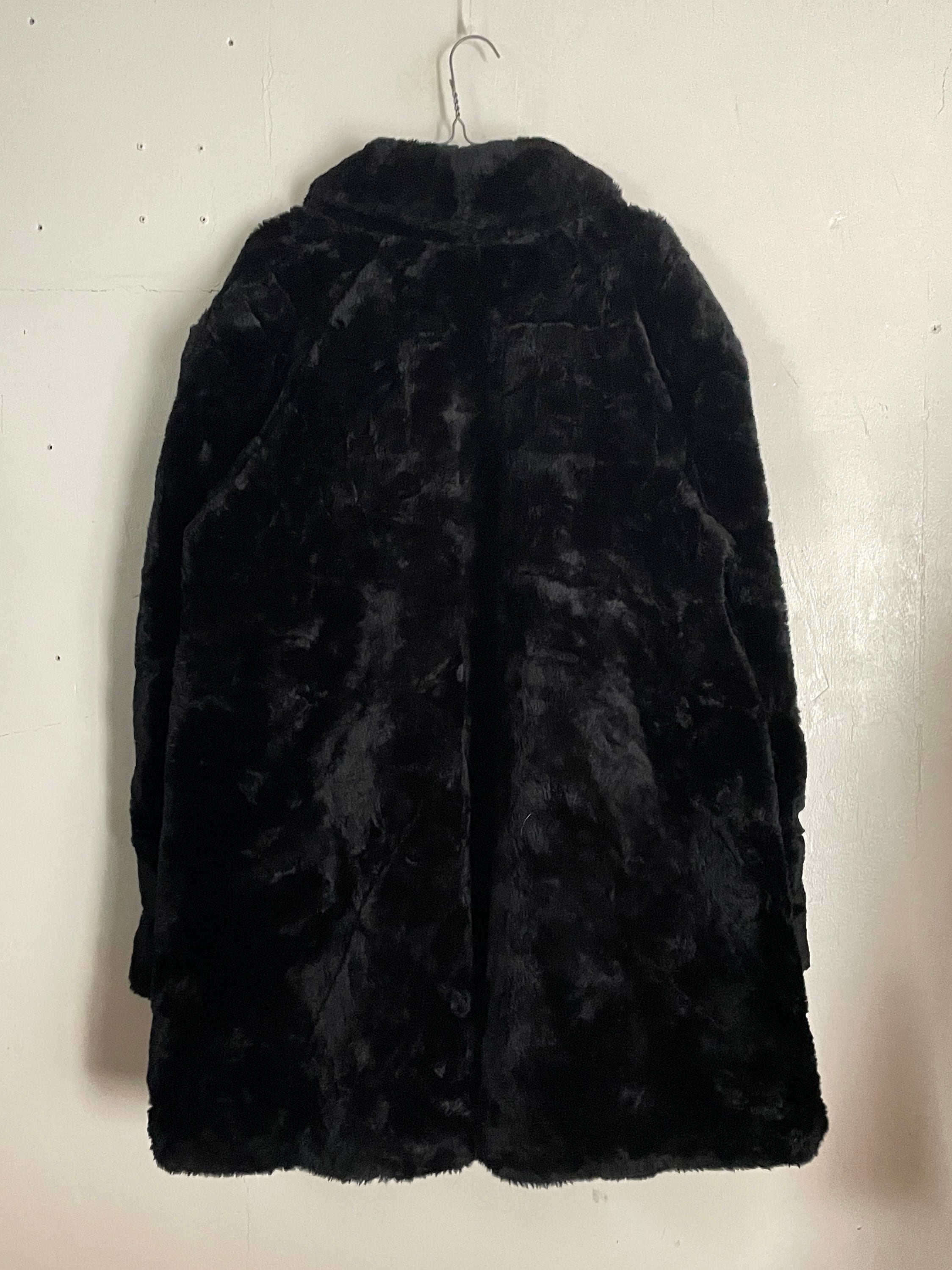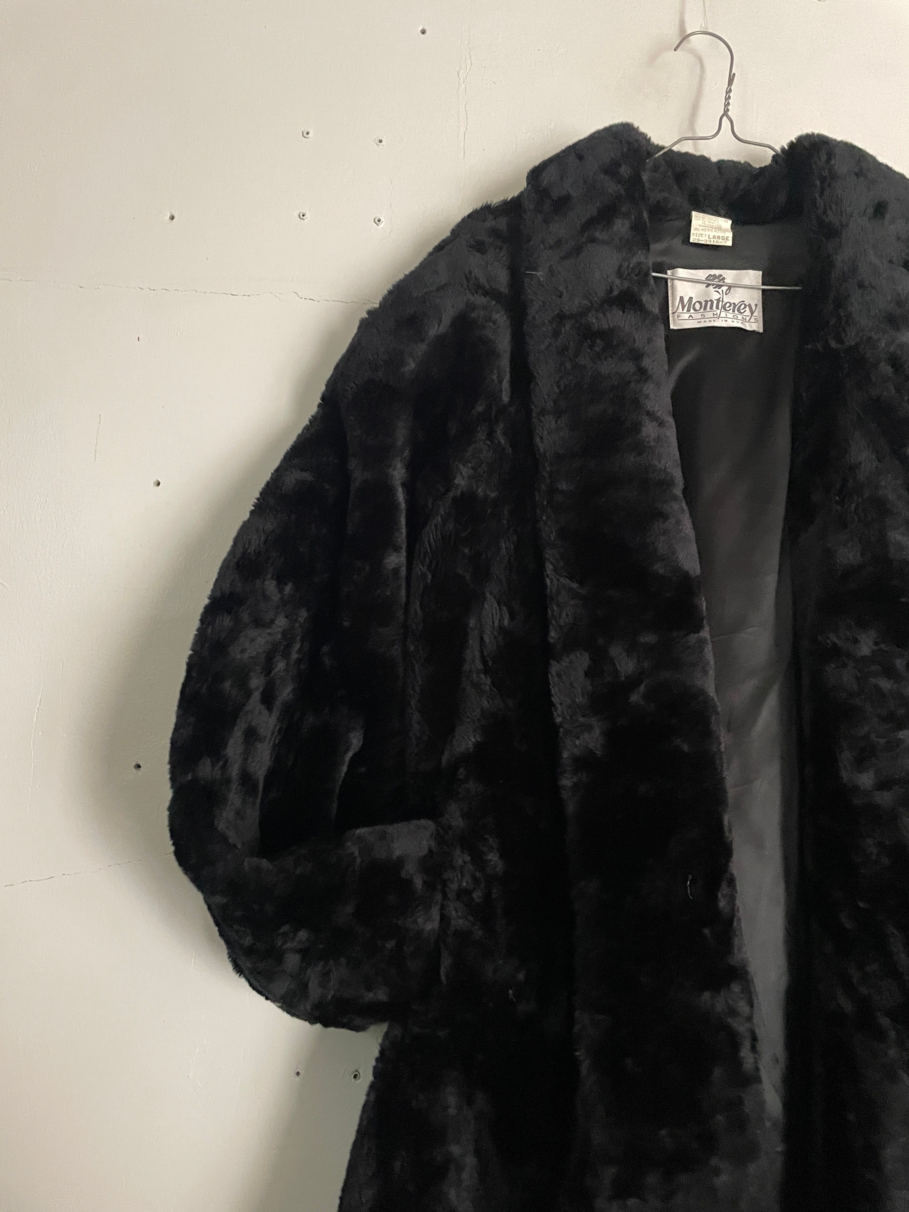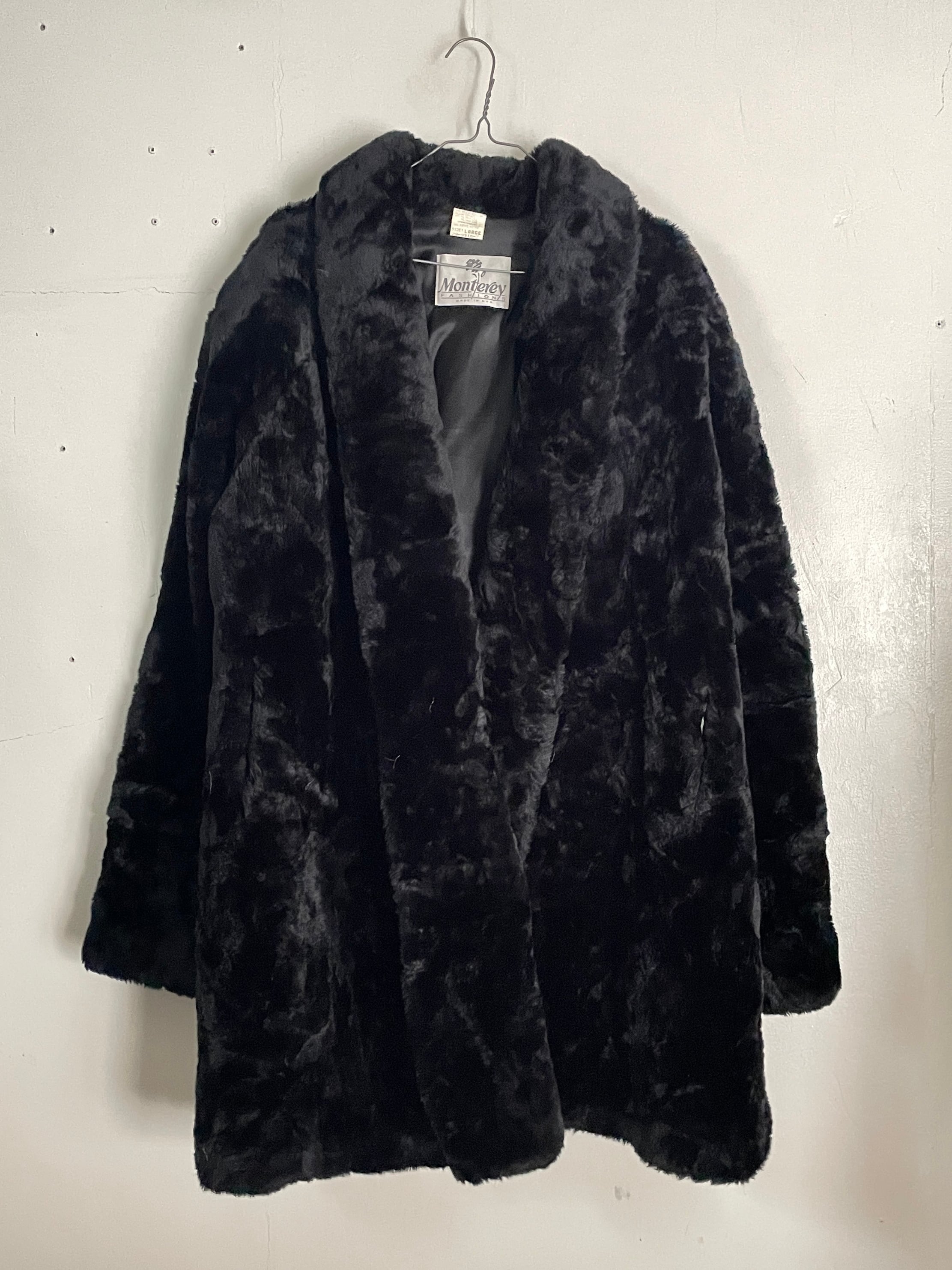 光沢のあるブラックボディで、高級感が感じられる、ファージャケット。触り心地抜群な毛足の長いファーとボリュームのある襟が特徴的です。羽織るだけでオーラの出るジャケットかと思います。丈感も丁度良く、身幅もたっぷりとあるので、インナーにもしっかり着込めて、男女共におすすめしたいアウターです。このディテールで、USA製なのもポイントが高いです。