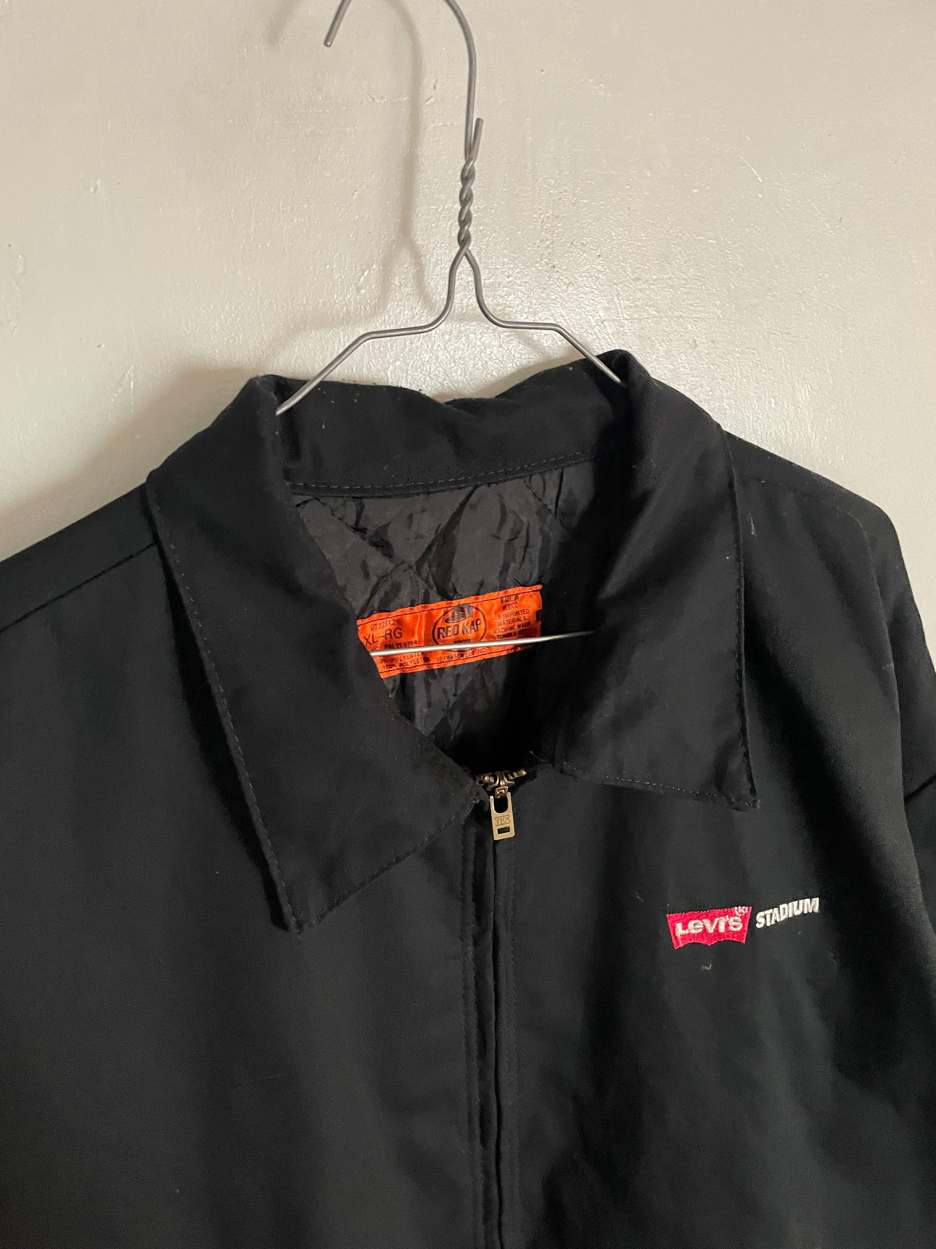 ブラックボディで、ワンポイントでリーバイスの刺繍ロゴの入った、シンプルで使い勝手の良い、レッドキャップのワークジャケット。タフな肉厚ボディなので、今の時期にはもってこいのジャケットです。ジップタイプで着脱もしやすく、様々なアイテムとの相性の良いアイテムです。裏地はサラッとしたキルティング素材になっています。ゆったりとしたサイズ感なので、男女共におすすめしたい1着です。
