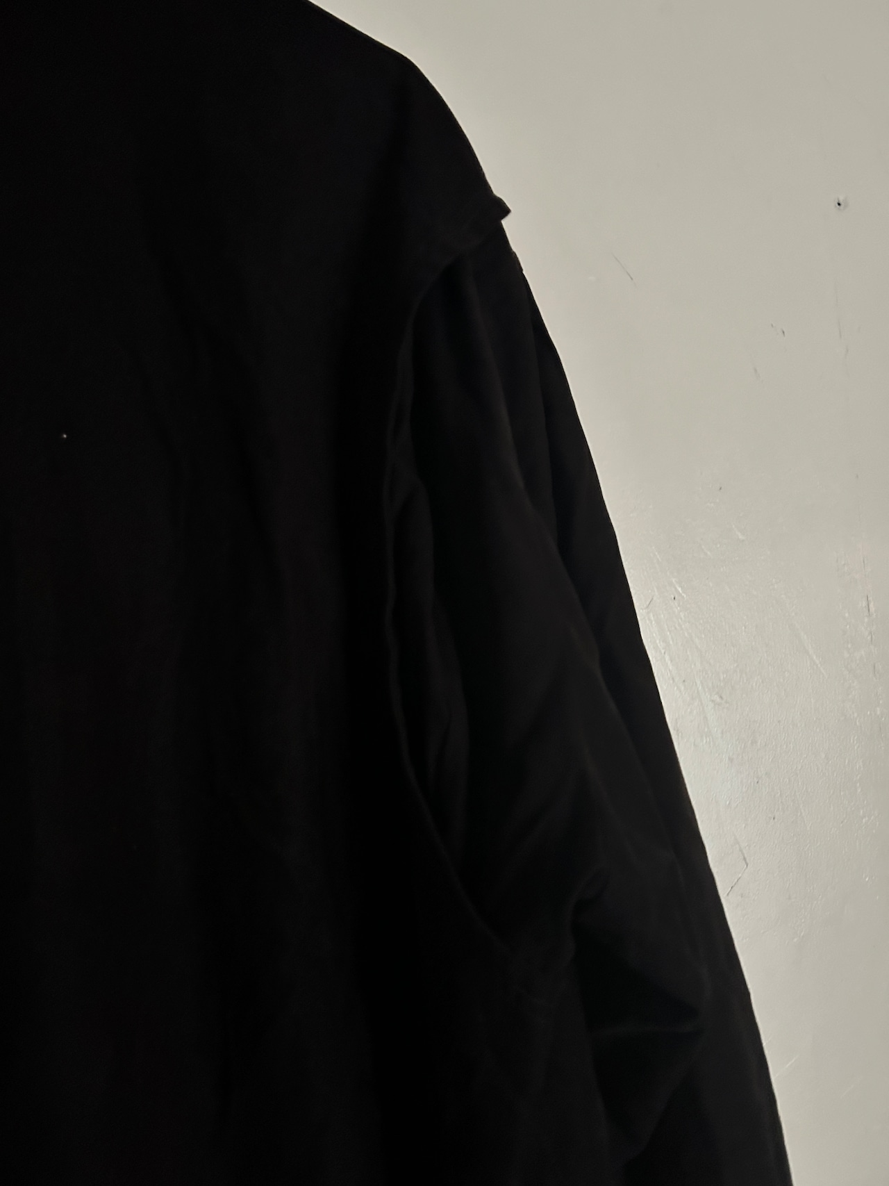 いつでも使えるブラック。そしてパーカー、ニット、スウェットなんでも着込んでも決まるボックスのシルエットです。