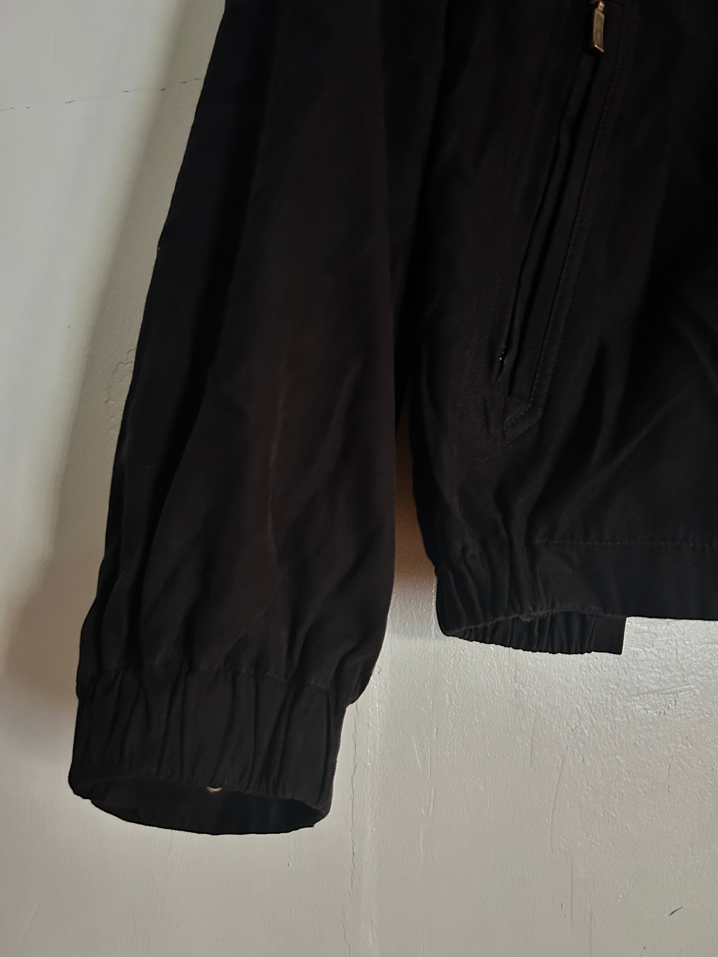 ポリエステルで作られたスエードのような質感の生地、肌触り抜群のジャケット。しっとりとして高級感のある生地です。