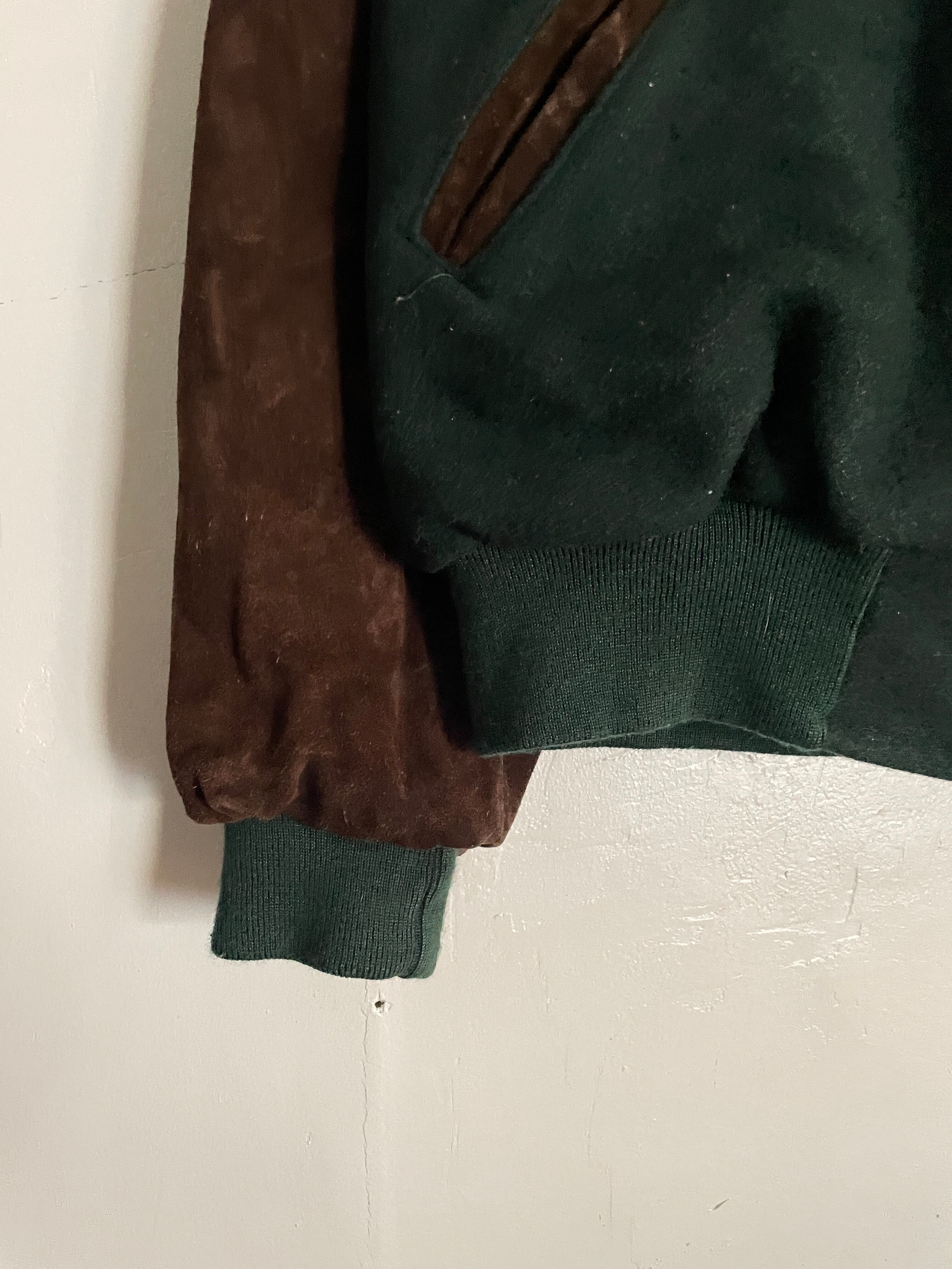 Old Holloway Green & Brown Embroidery Sleeve Suede Leather Swiching Stadium Jacket