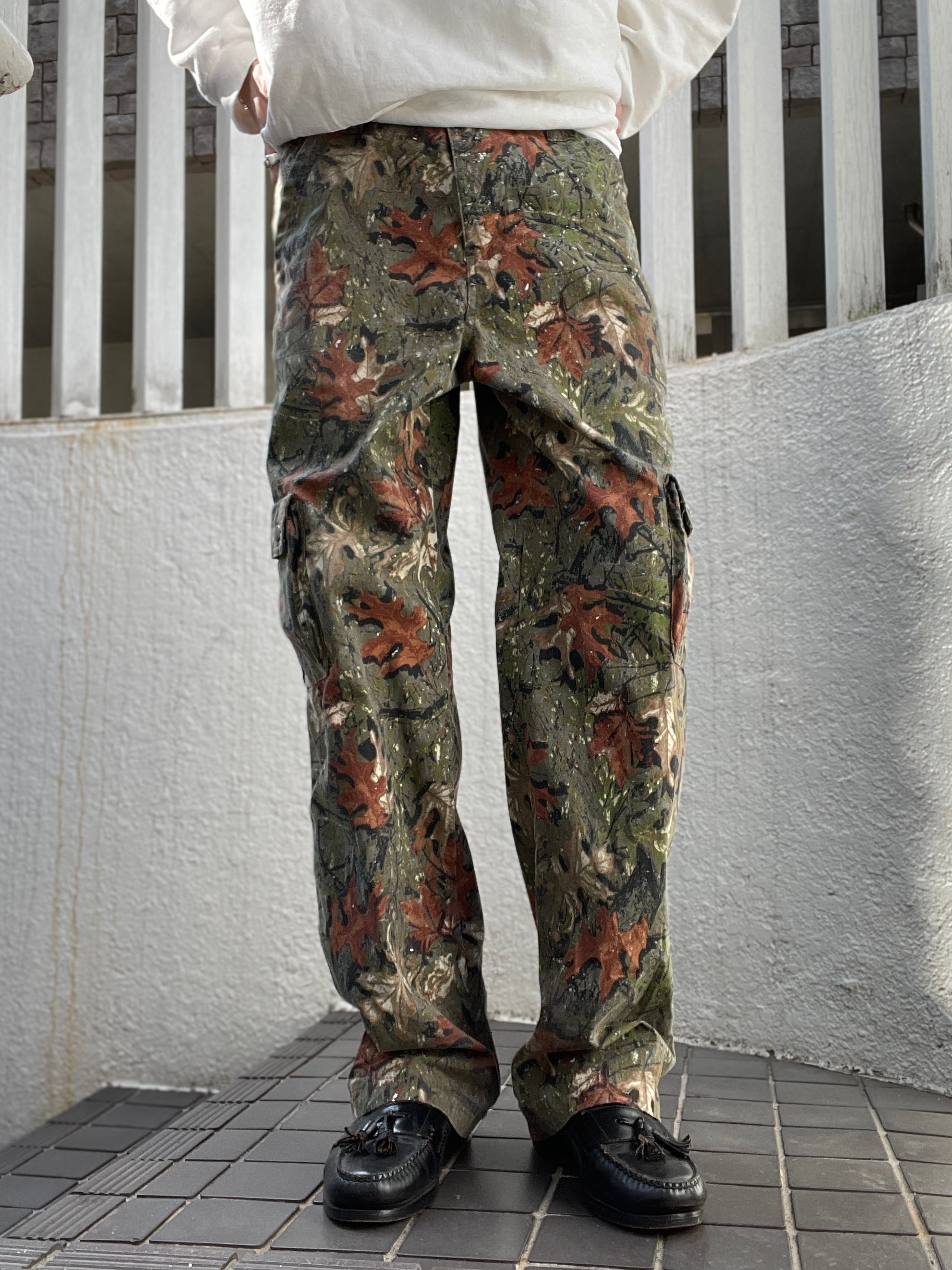 自然が感じられる、紅葉や木の枝などがリアルに再現された、リアルツリーカーゴパンツ。一般的なリアルツリーとは違って、あまり見かけないデザインになっています。サラッとした軽めなポリとコットン素材。ポケットも豊富で機能性にも優れています。太さのあるワイドシルエットで、ストリートなどにはもちろん、様々なファッションのアクセントになってくれる一本です。