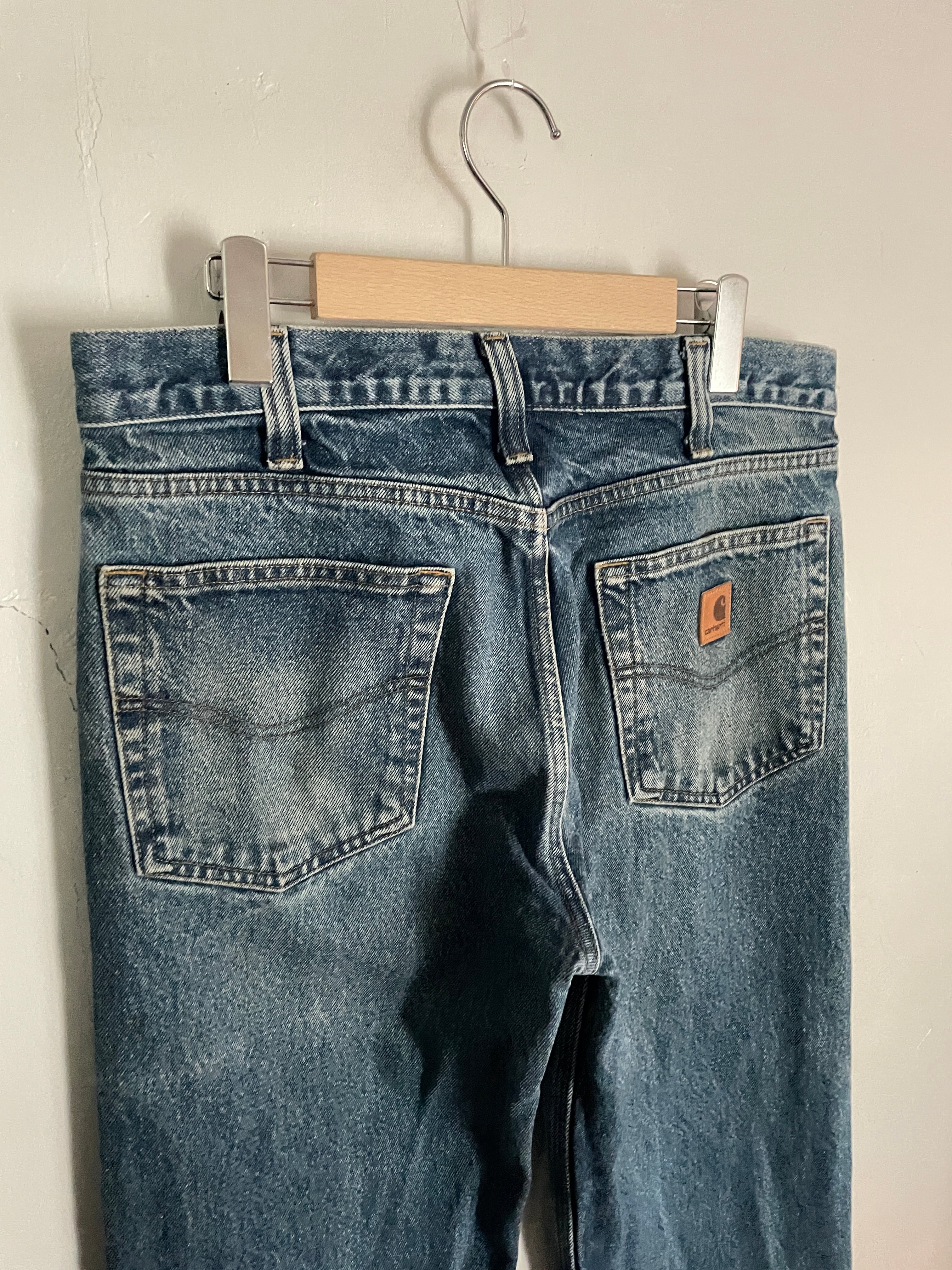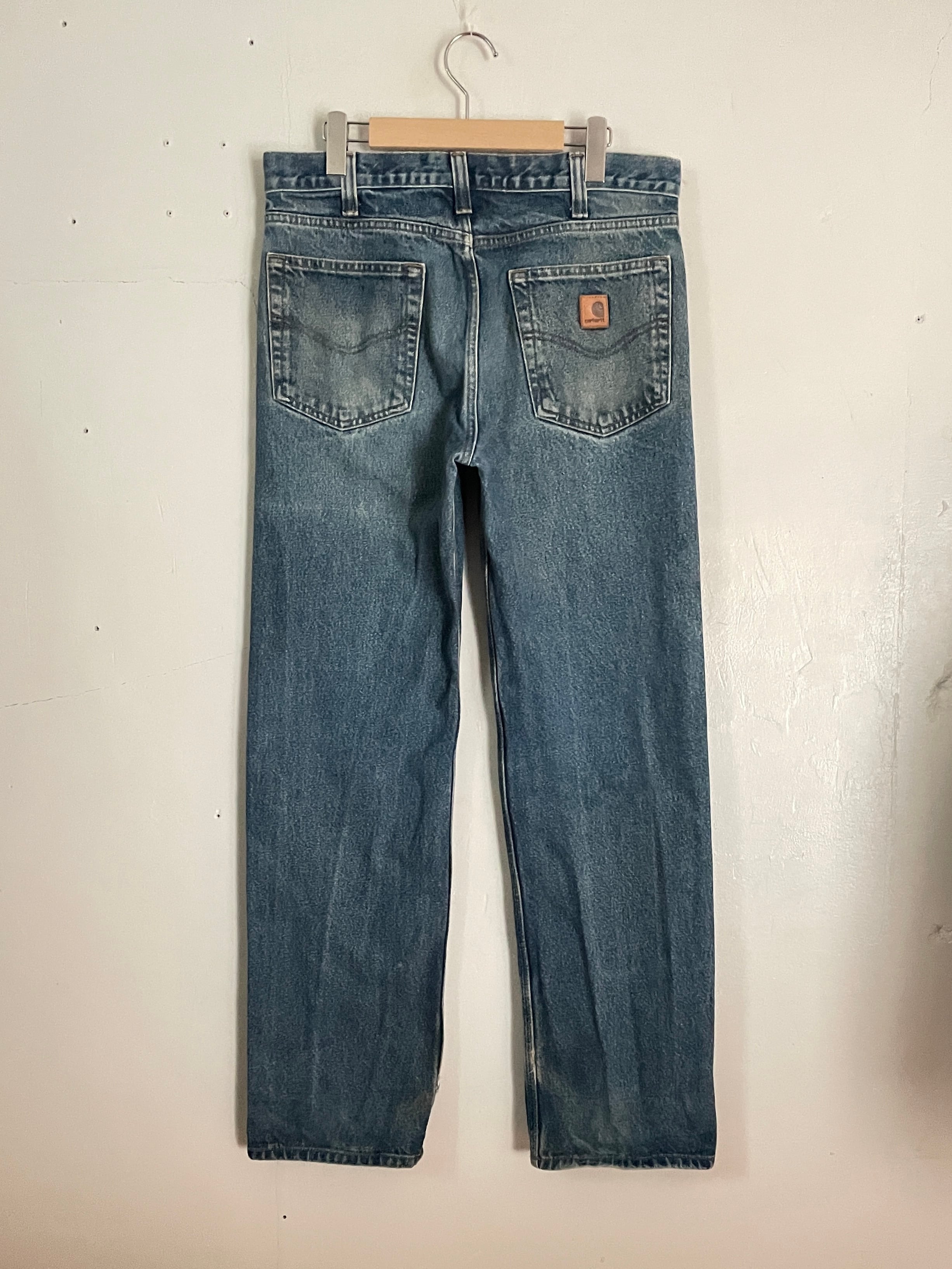 良い色落ちをした色味で、太過ぎず、細過ぎないクラシックなシルエットが魅力的な、カーハートのデニムパンツ。ヴィンテージ感漂う、雰囲気大の色味。レングスも長めで、靴にしっかり溜まってくれそうです。様々なファッションに取り入れやすく、季節問わずガシガシ履ける一本です。