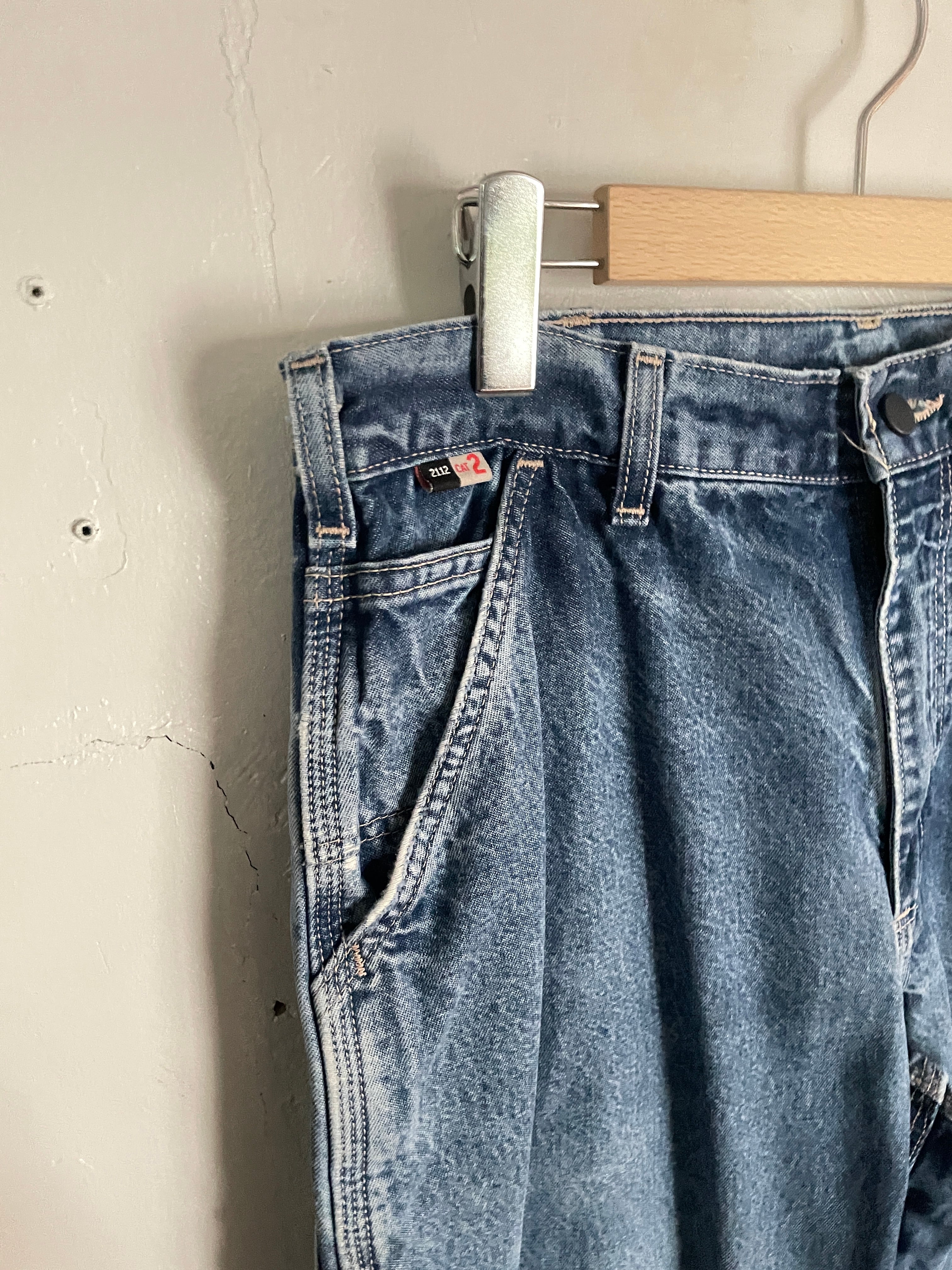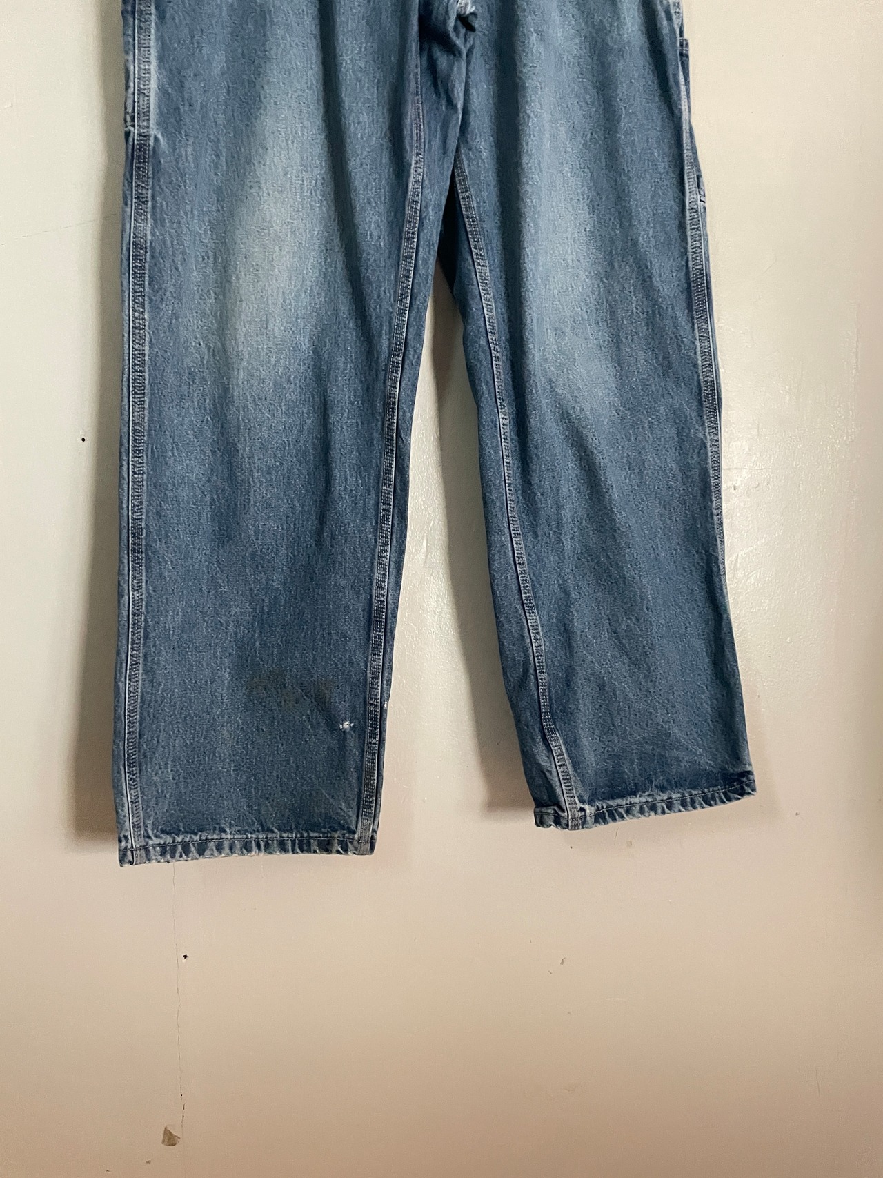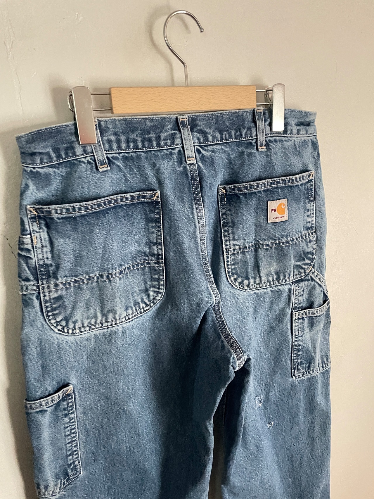 やや褪せた良い色味で、やり過ぎていないダメージがグッドなカーハートペインターデニムパンツ。ガツンとした太さのあるワイドシルエット。丈も長めでルーズめに履けそうです。ポケットも豊富で機能性にも優れています。様々なアイテムとの相性が良く、季節問わずガシガシ履けるボトムスです。
