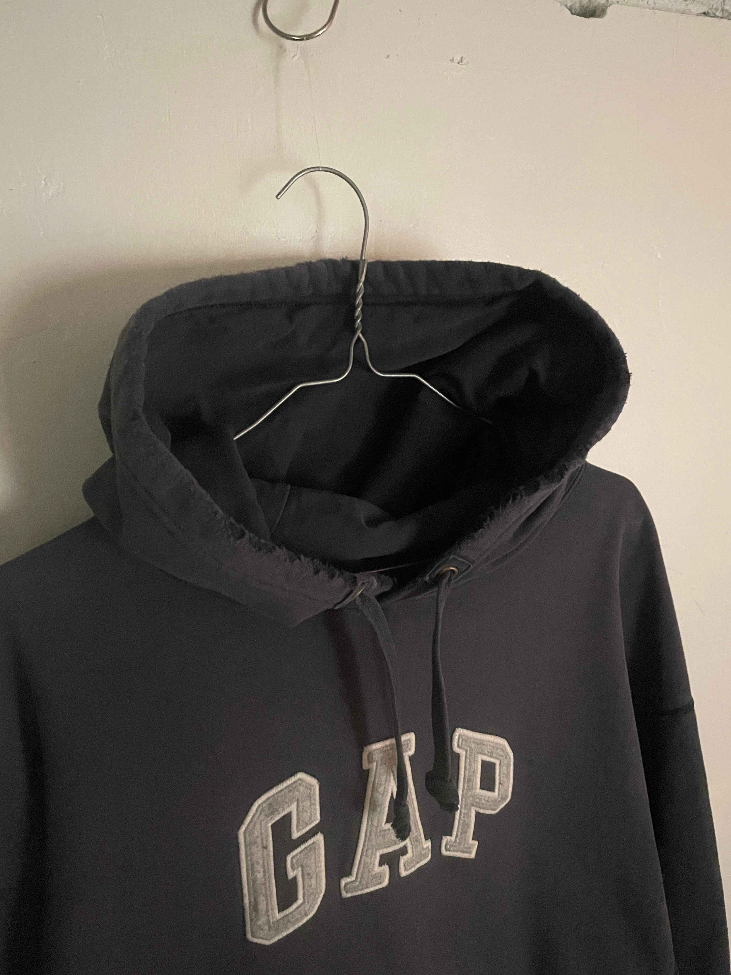 Old GAP Navy Fade Damage Logo Embroidery Design Hoodie