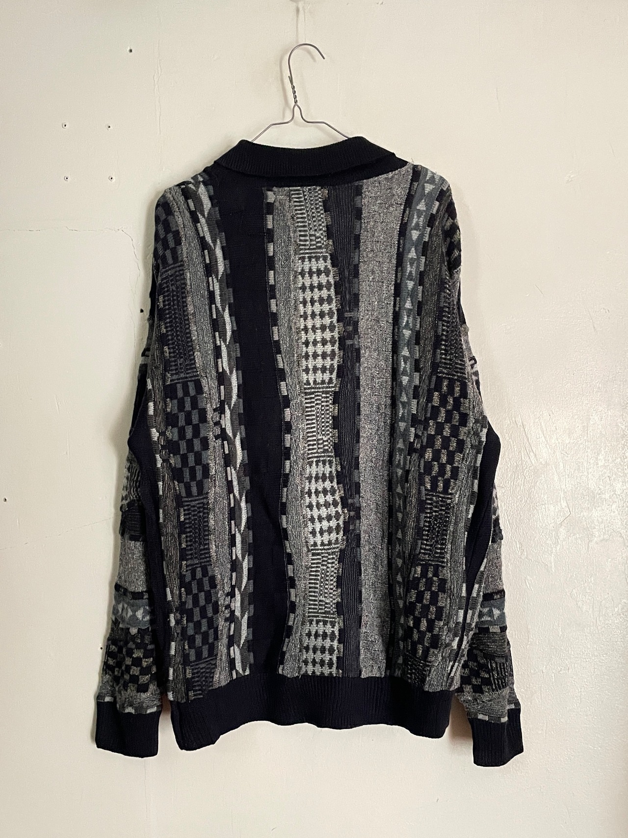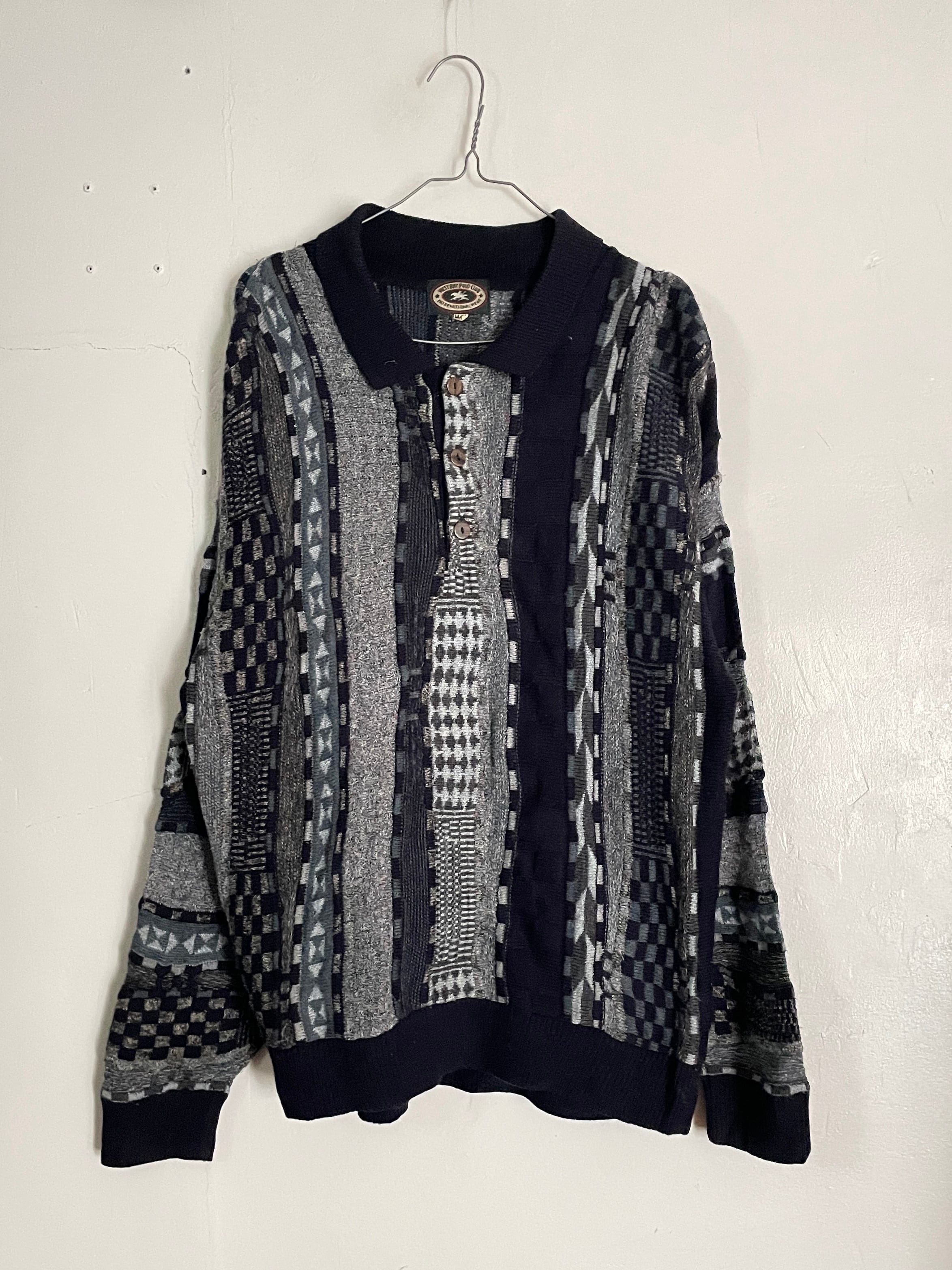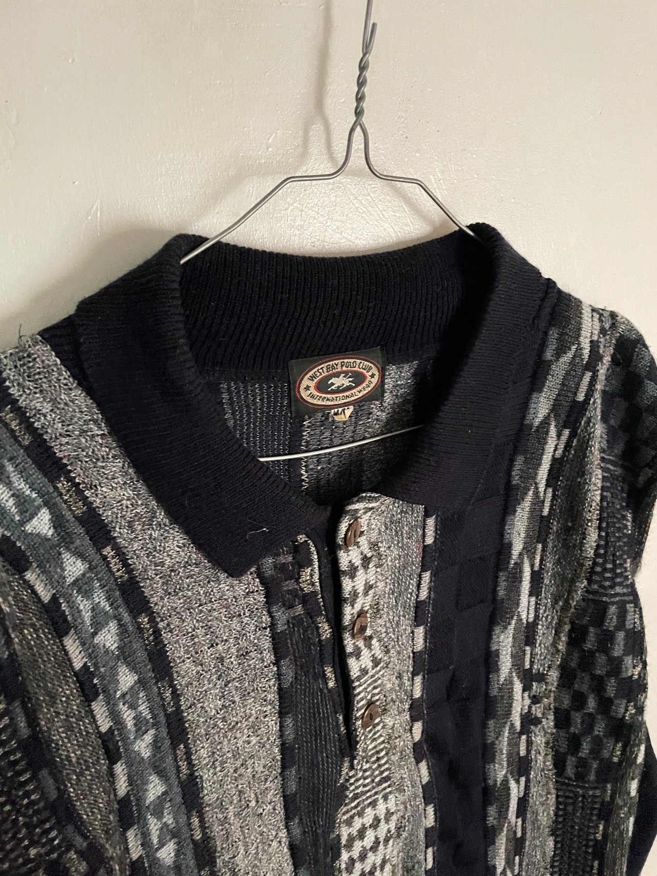 Old WEST BAY POLO CLUB Whole Pattern 3D Polo Knit Sweater