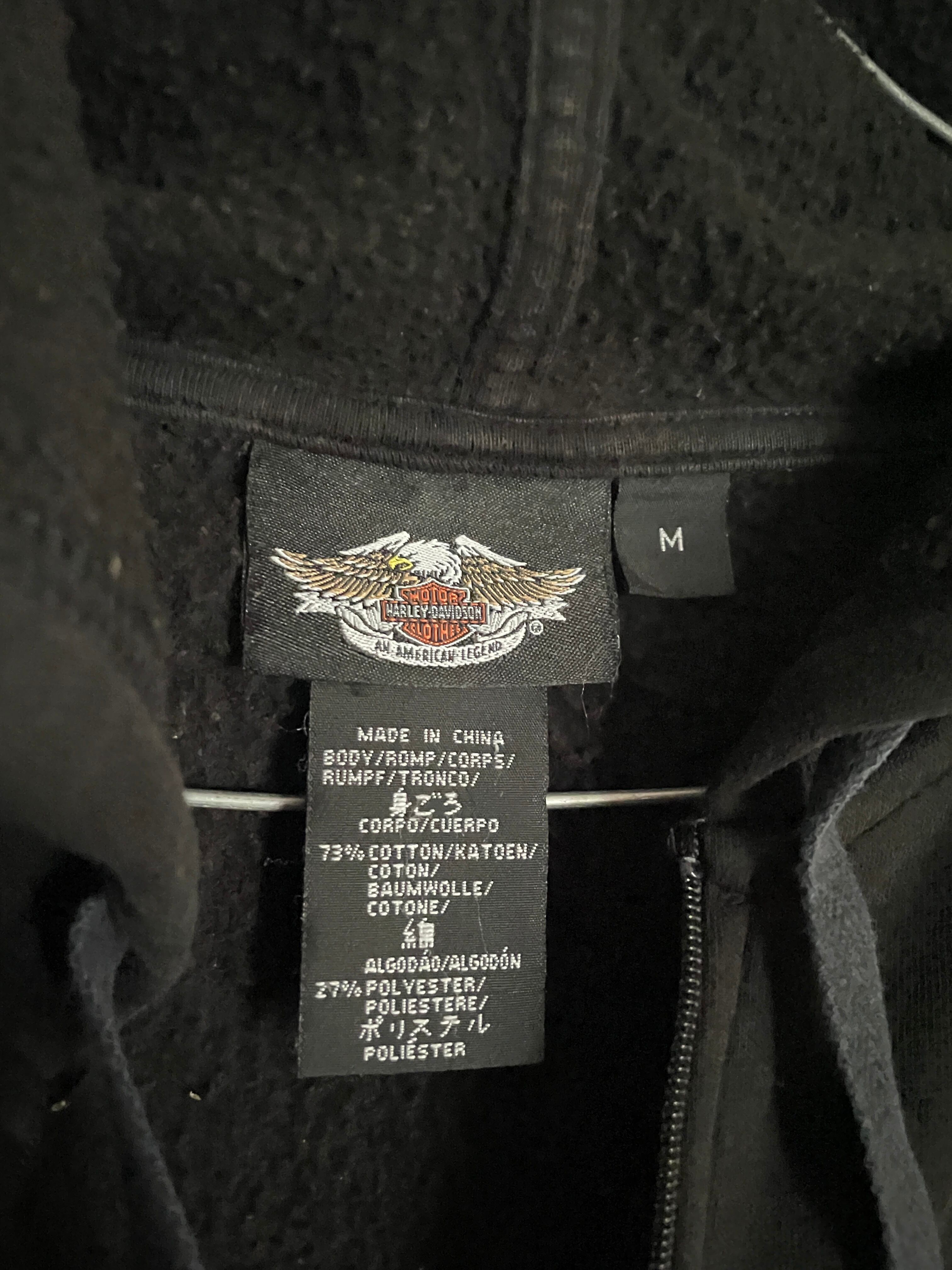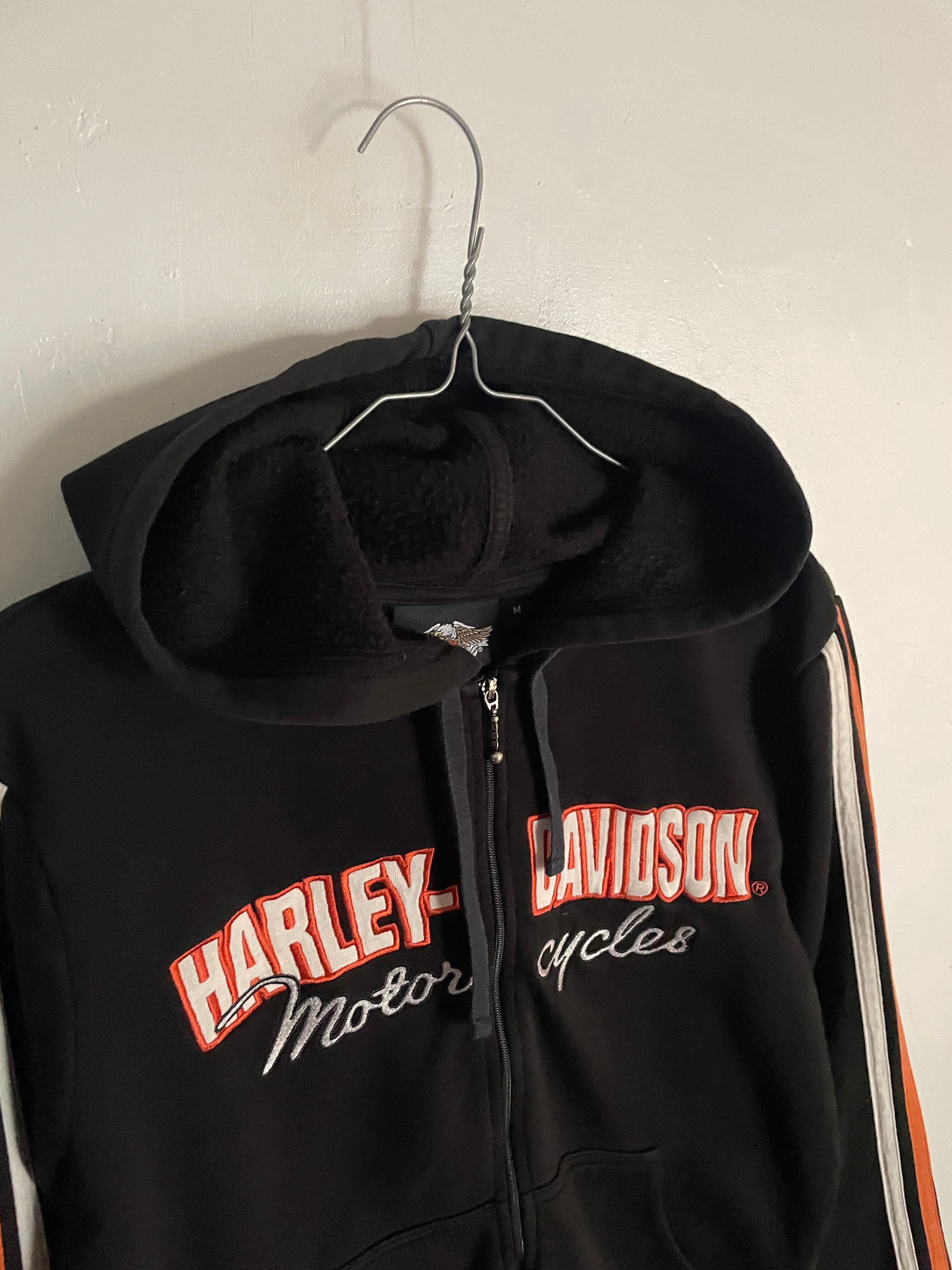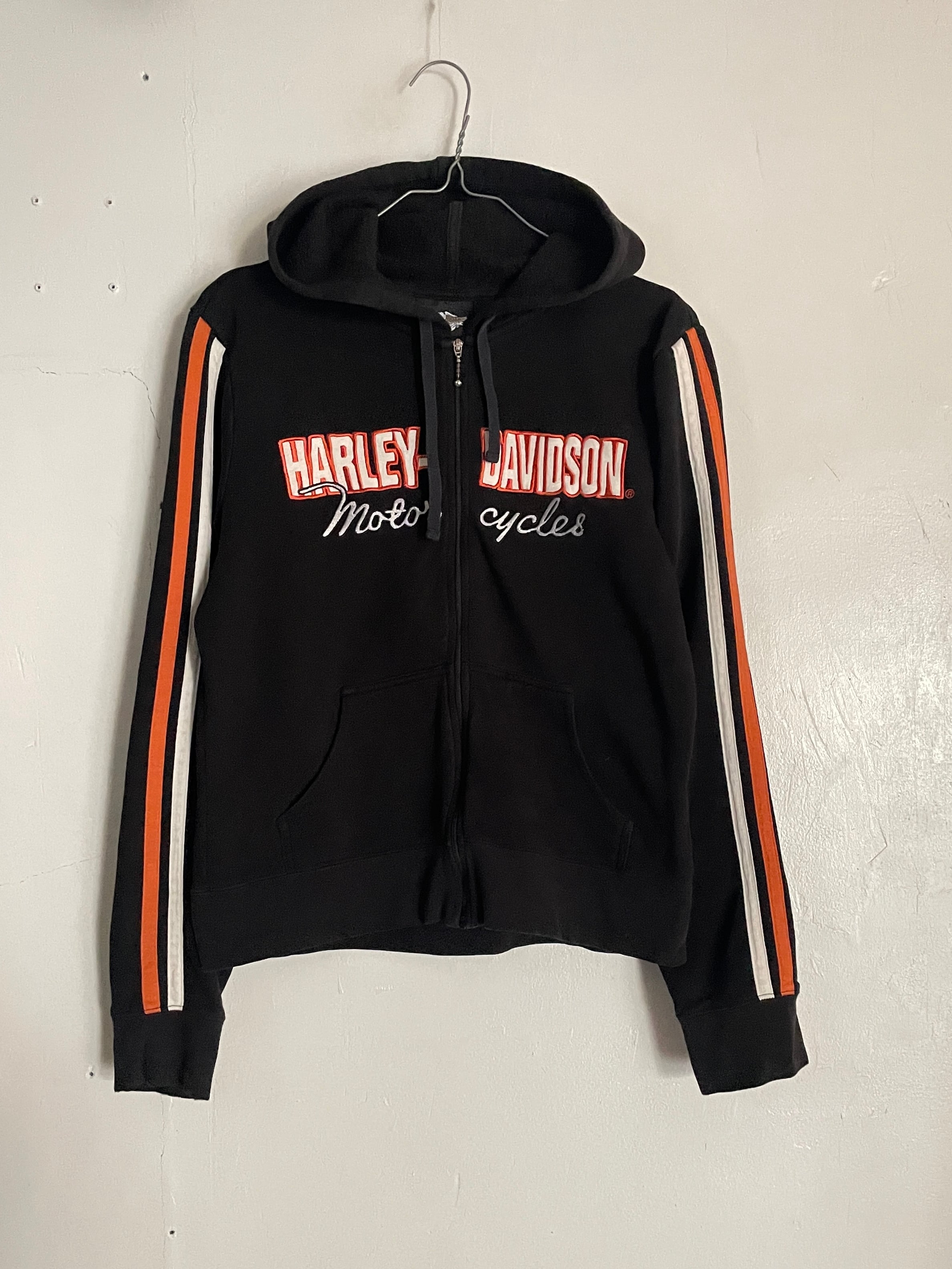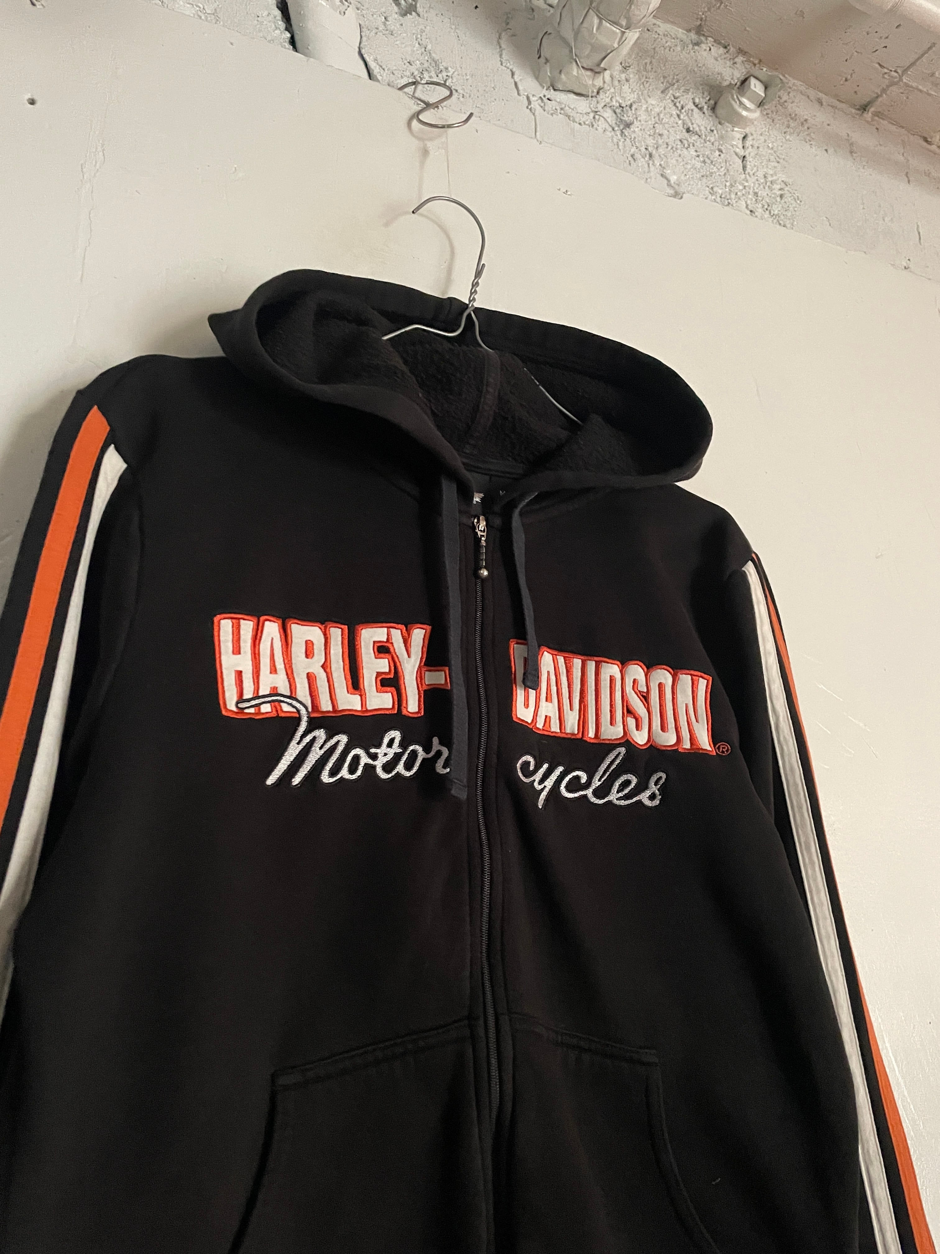 Old HARLEY-DAVIDSON Black Embroidery Design Zip Hoodie