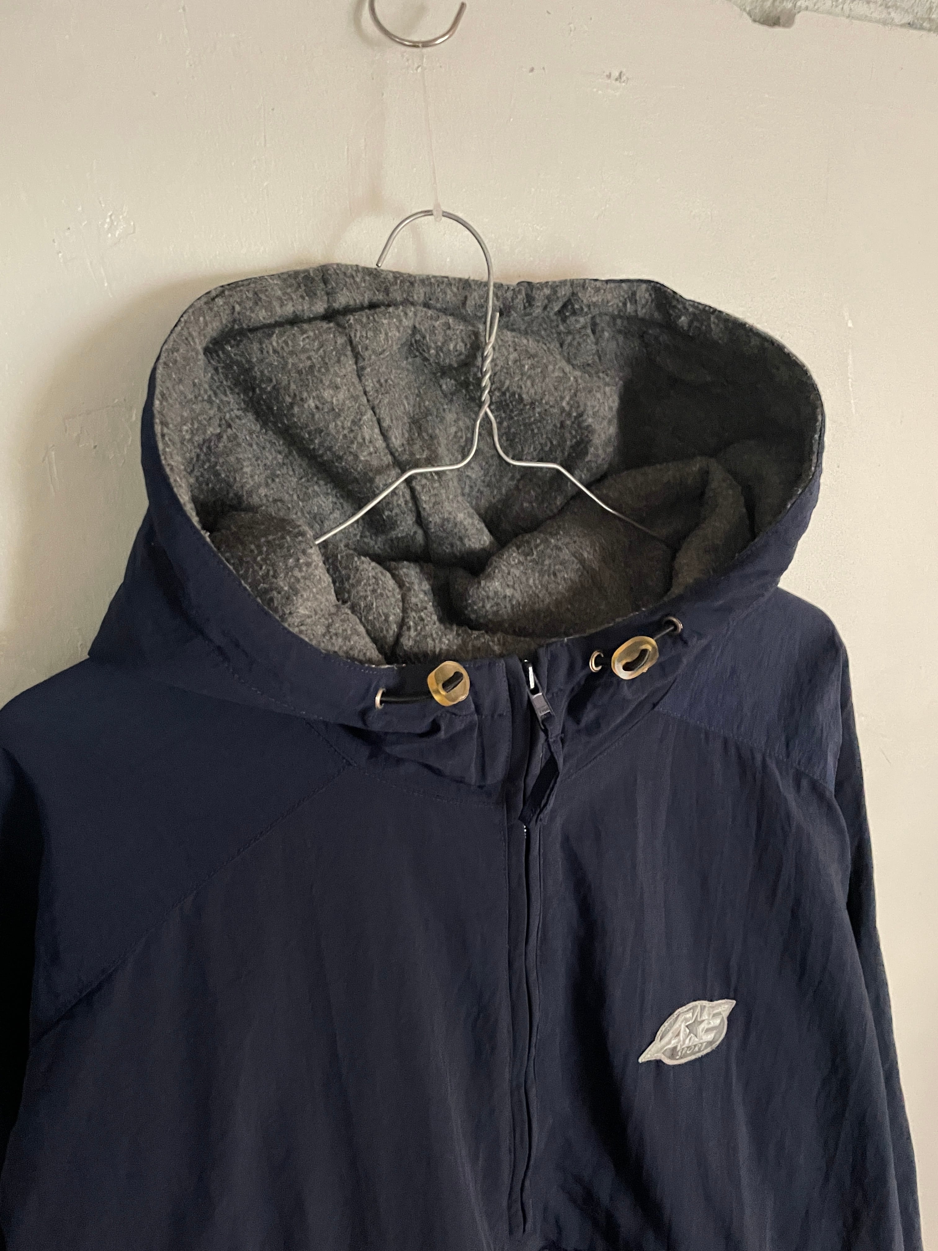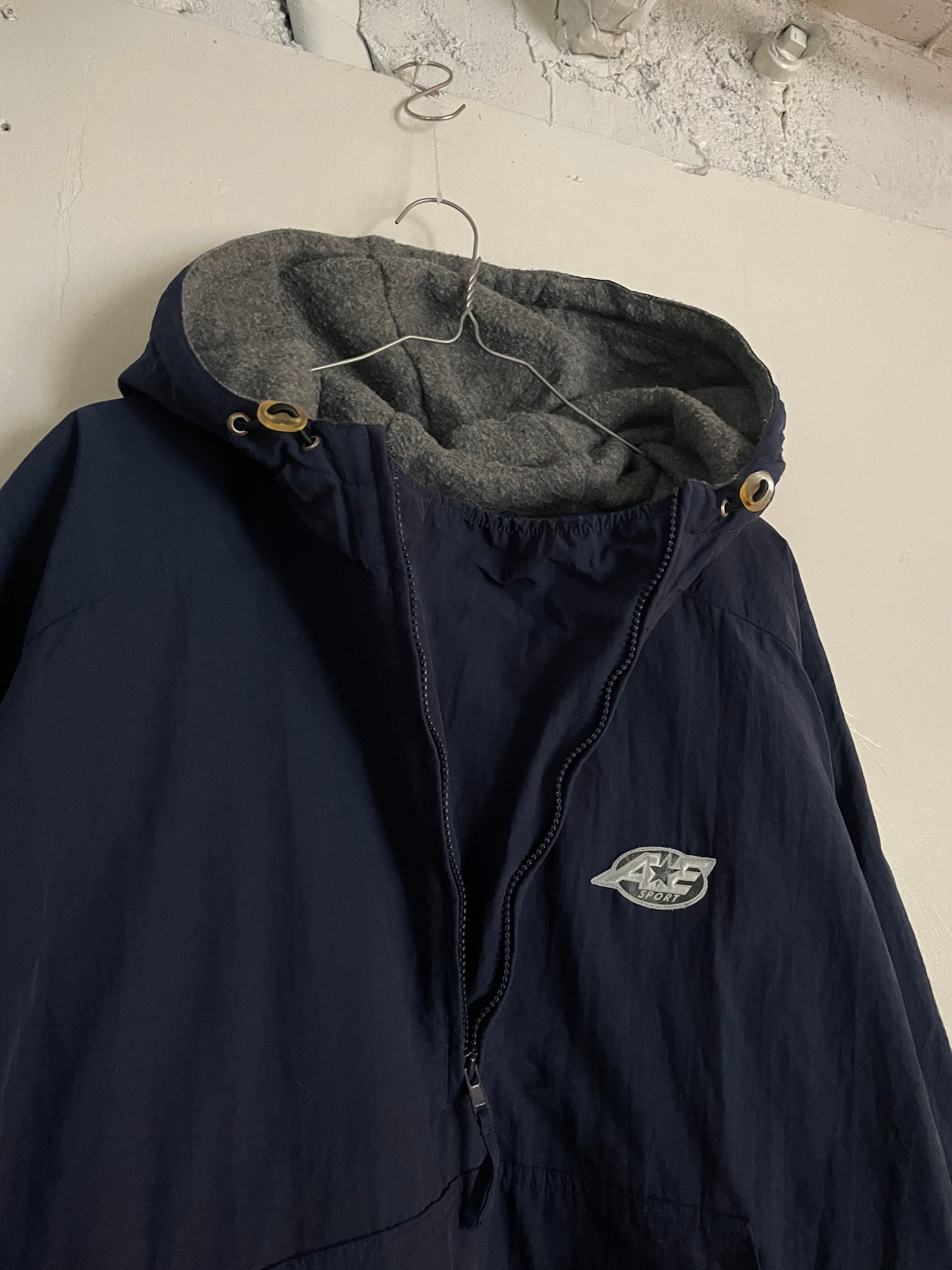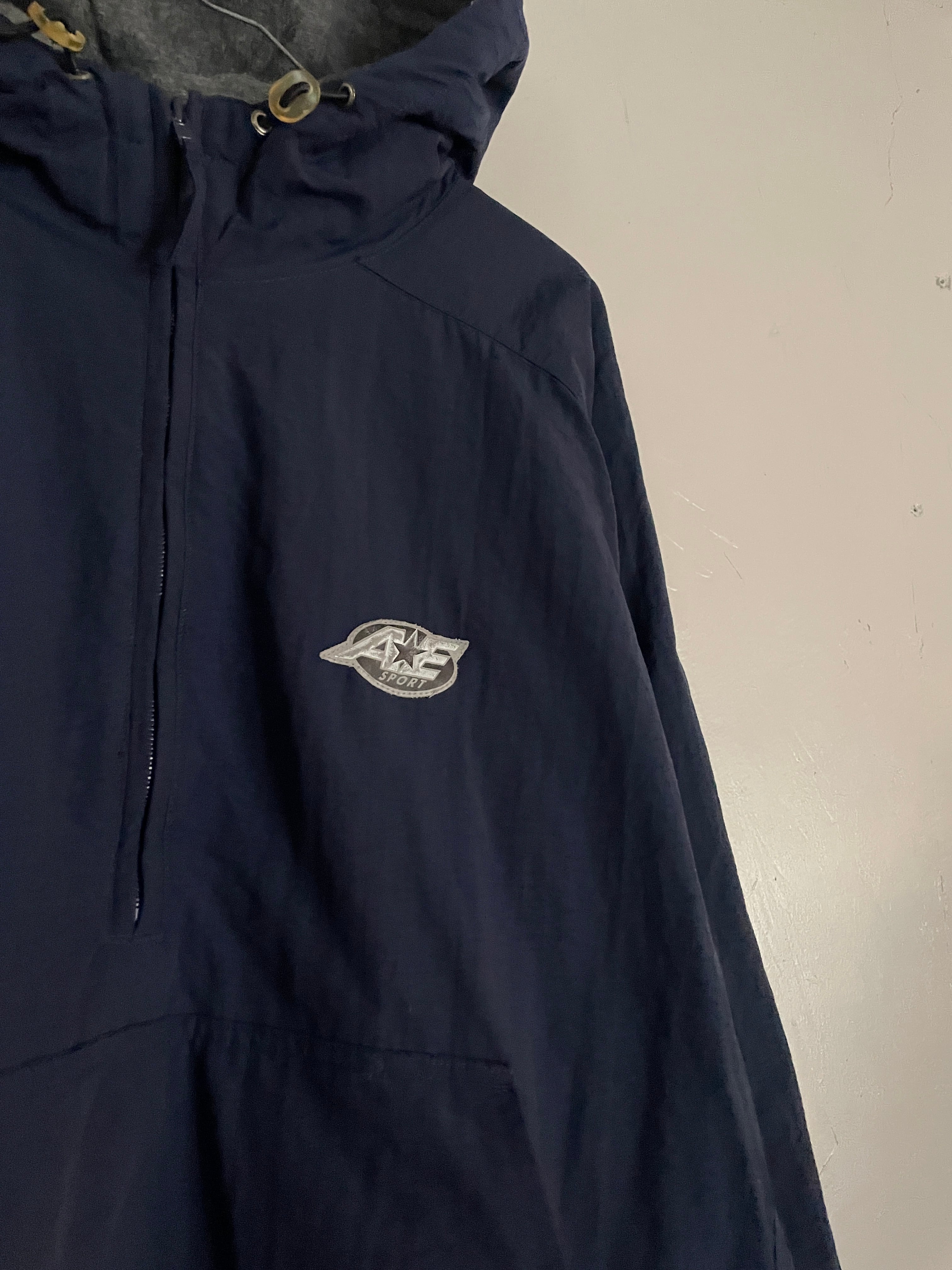 Old AE SPORT Navy Lining Fleece Nylon Pullover Jacket
