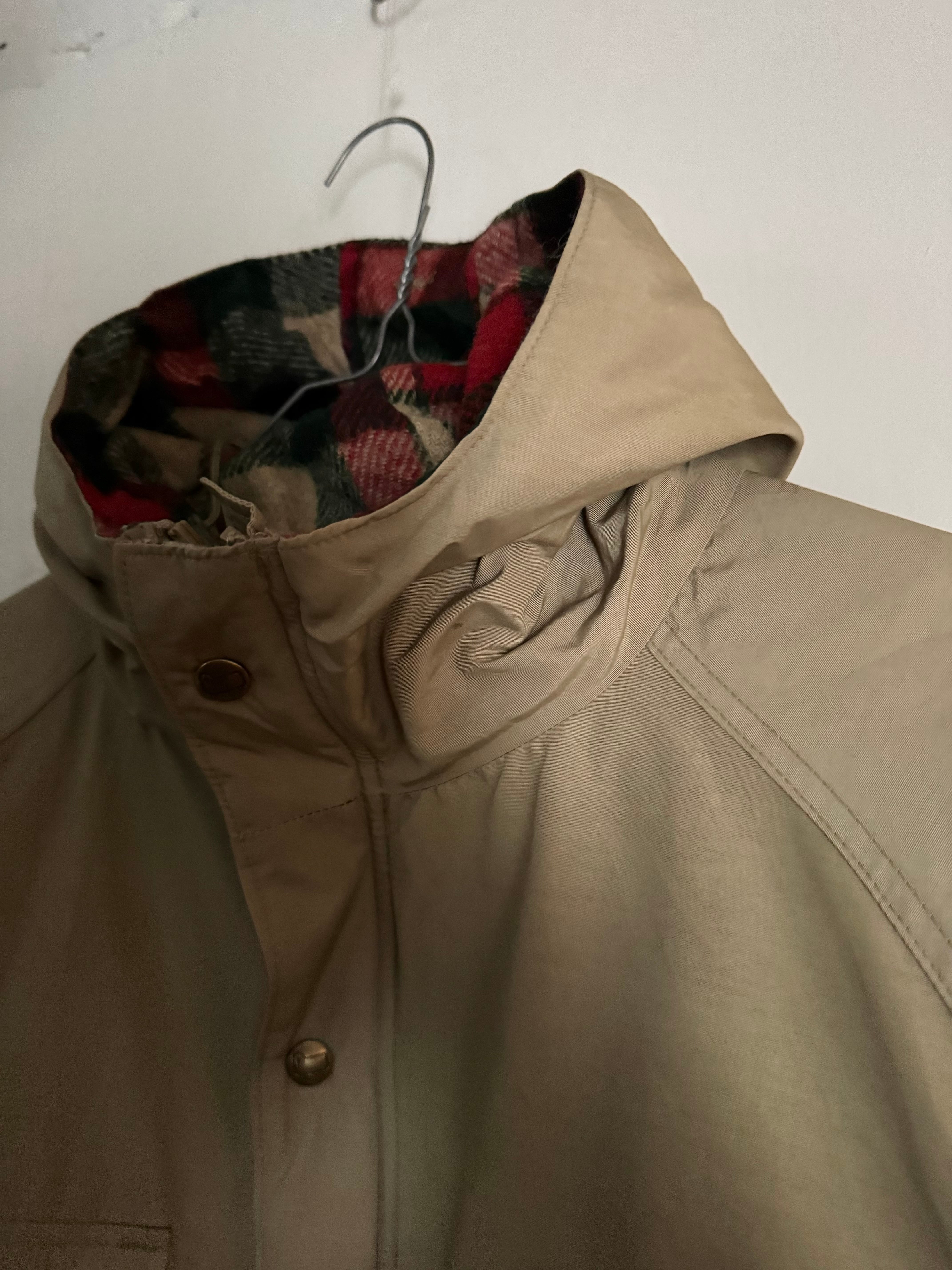 落ち着いたベージュボディで、4ポケット付きの機能性に優れた、ウールリッチのマウンテンパーカー。保温性、撥水性の高いコットンとナイロン素材。今の時期には間違いの無いアイテムかと思います。裏地はお洒落なチェック柄デザインになっていて、フードを被ったときにチラッと見えるのがグッドです。ゆったりとしたサイズ感なので、インナーにもしっかり着込めそうです。USA製なのも魅力的です。