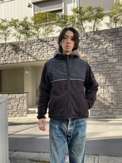 ブラックのフリースと、ダークグレーのナイロン素材で切り替えられた、エディーバウアーのジャケット。保温性に優れた1着です。ポケットも豊富で、脇下にもジップ付き。隠れたギミックがお洒落です。まさにテックな雰囲気が感じられる1着。ダークトーンで主張の激し過ぎないディテールなので、使い勝手の良いジャケットかと思います。今の時期には確実に活躍してくれそうです。
