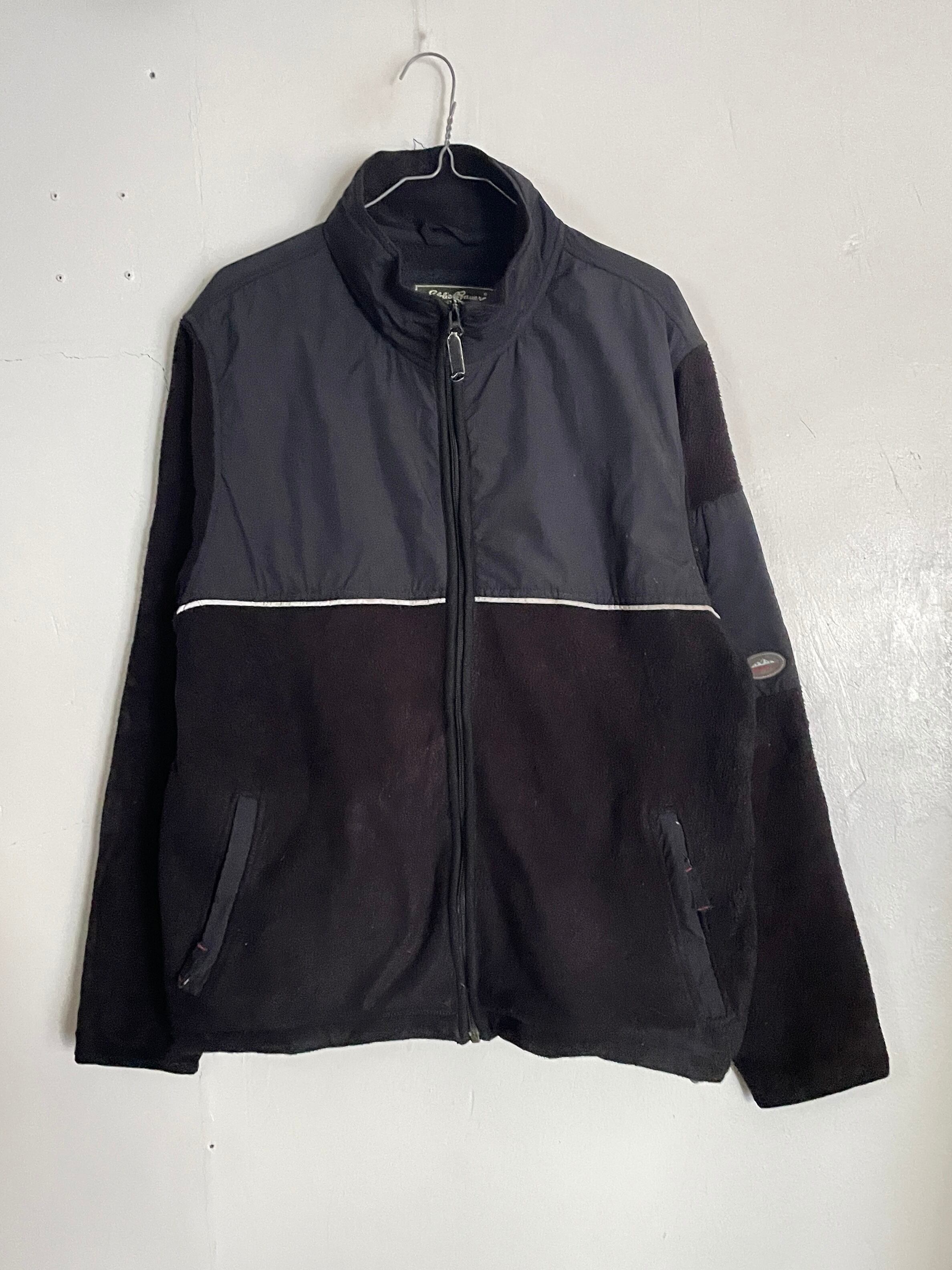 Old Eddie Bauer Black × Dark Gray Nylon Swiching Fleece Zip Jacket