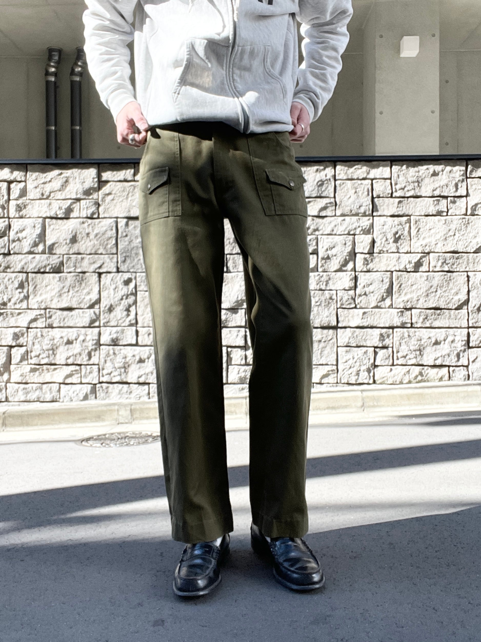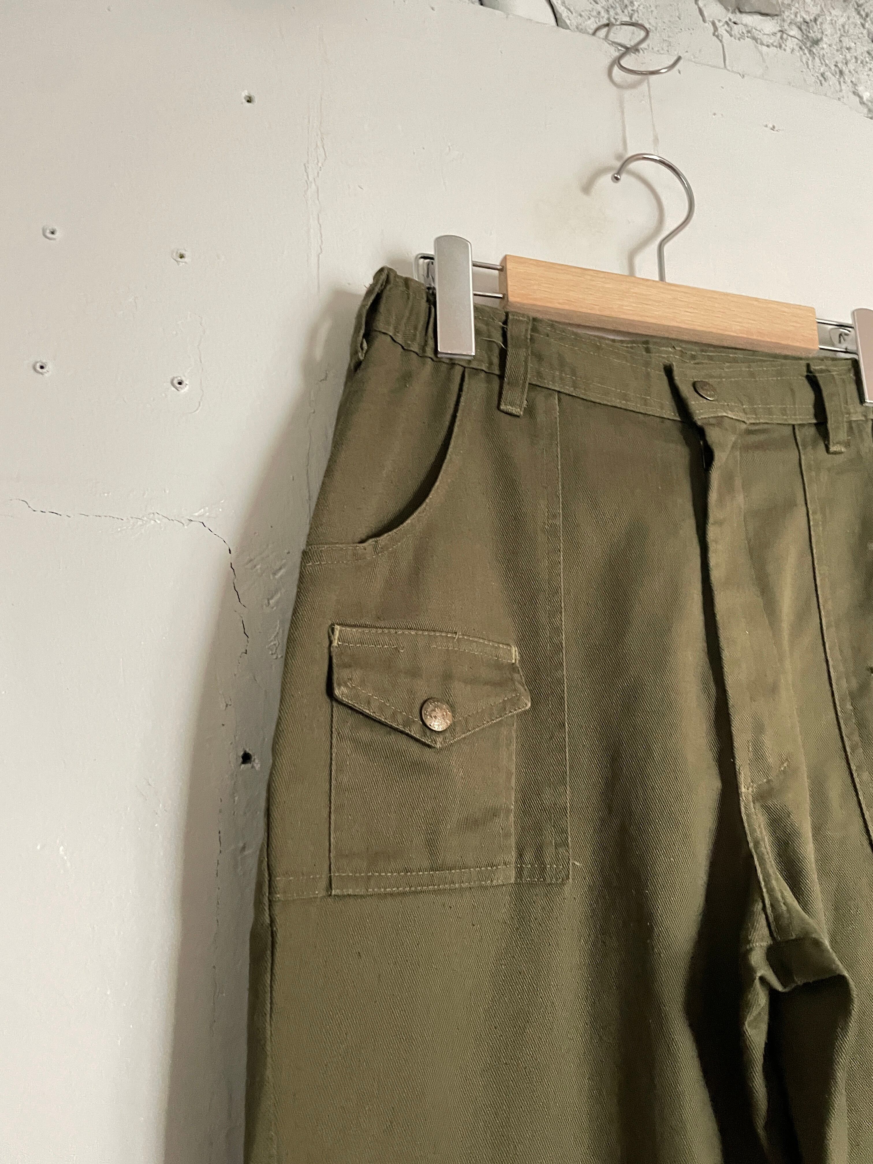 カーキカラーで、ガツンとした太さのあるワイドシルエットが魅力的な、ボーイスカウト・オブ・アメリカのフィールドパンツ。6ポケット付きで機能性抜群です。ウエスト部分にはゴム入りなので、ストレス無く履けるのもポイントが高いです。癖が無い分、様々なファッションに取り入れやすいパンツかと思います。