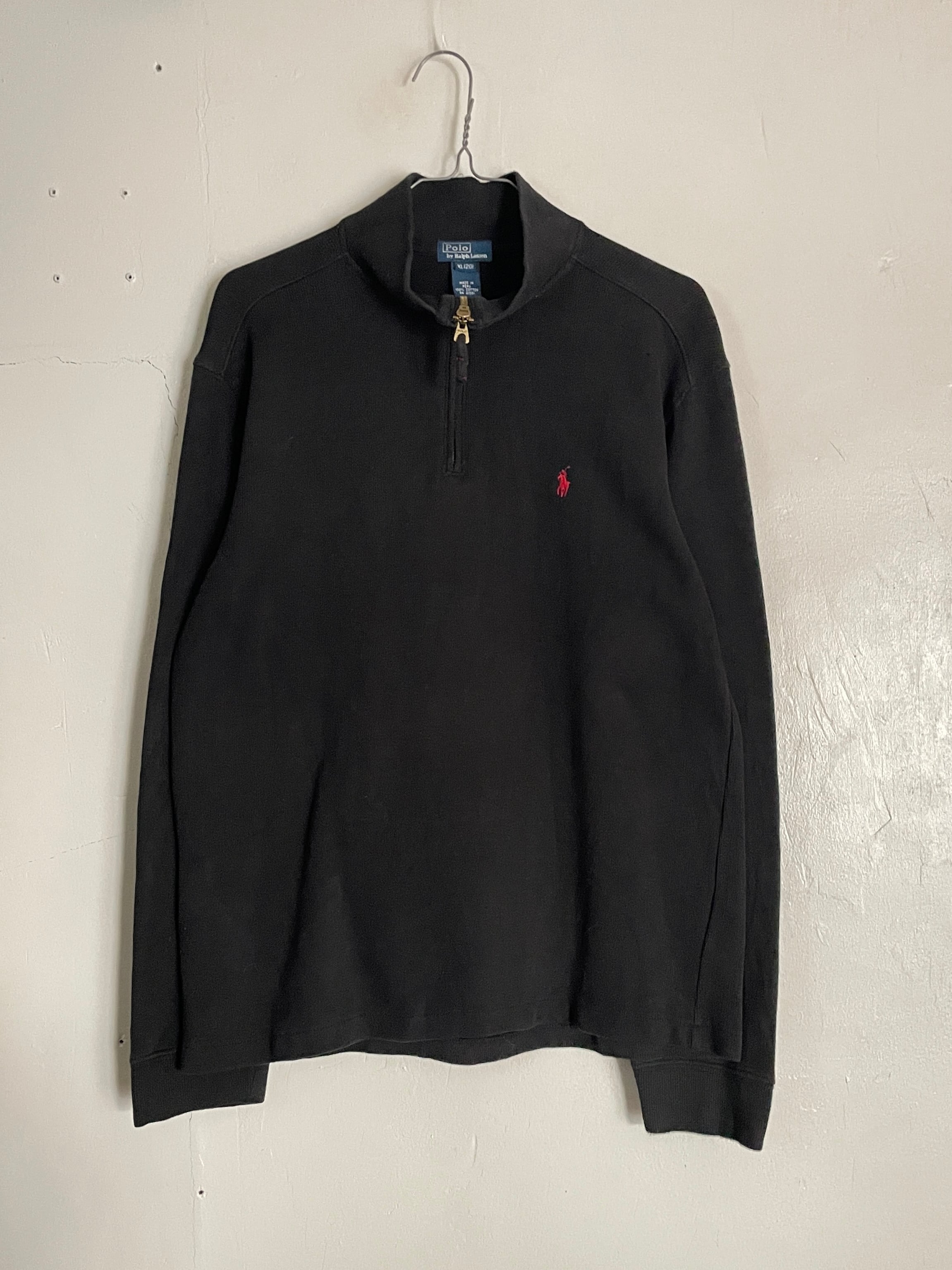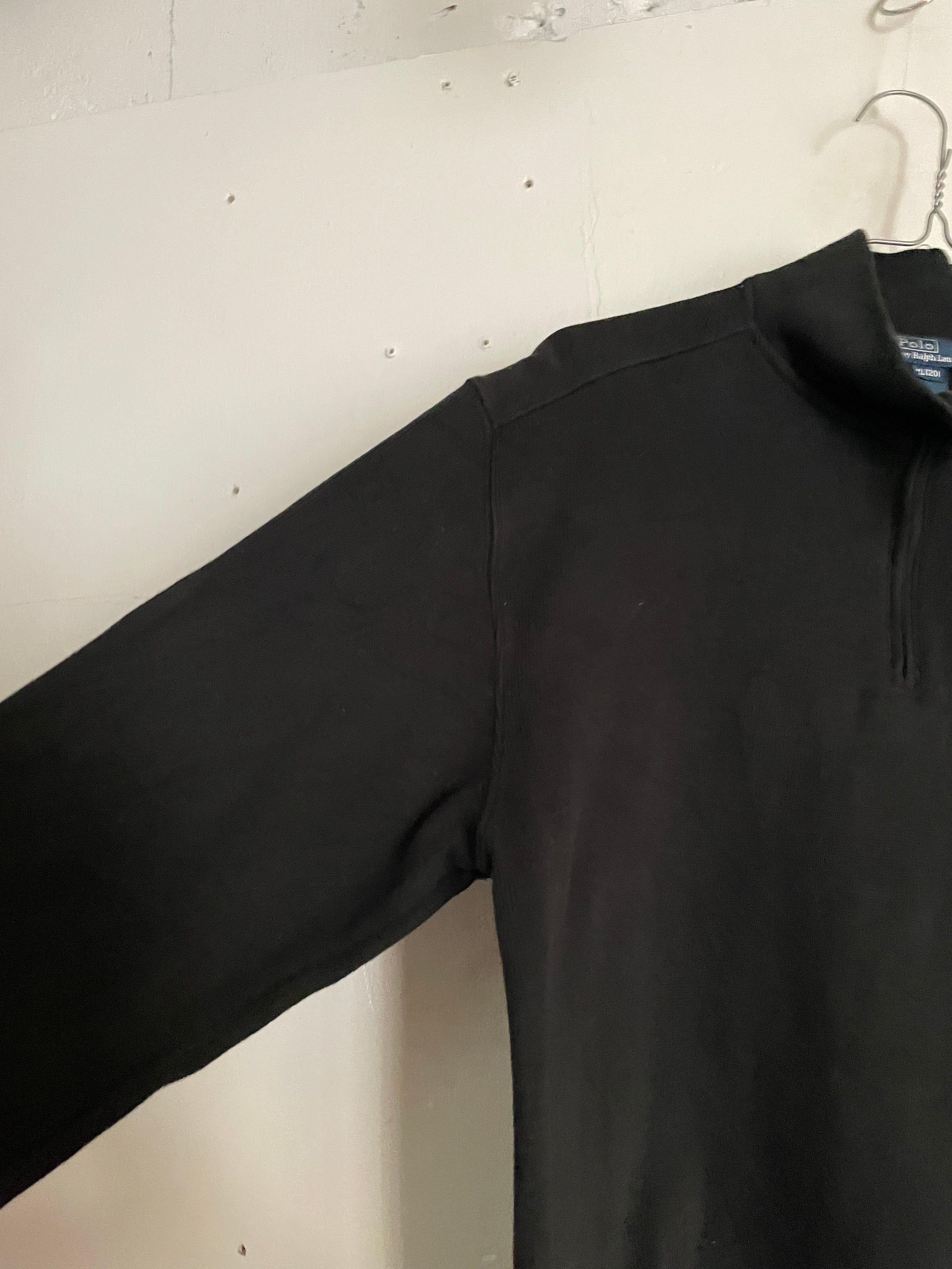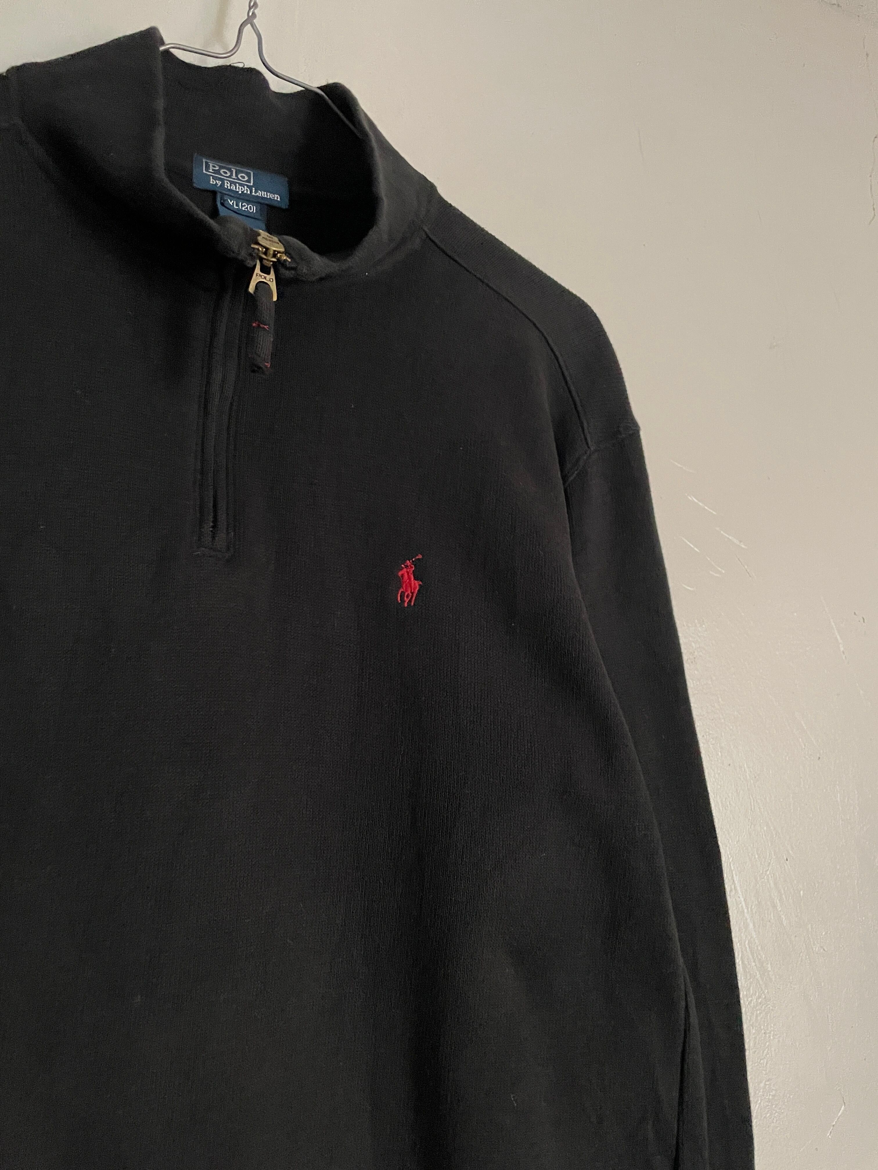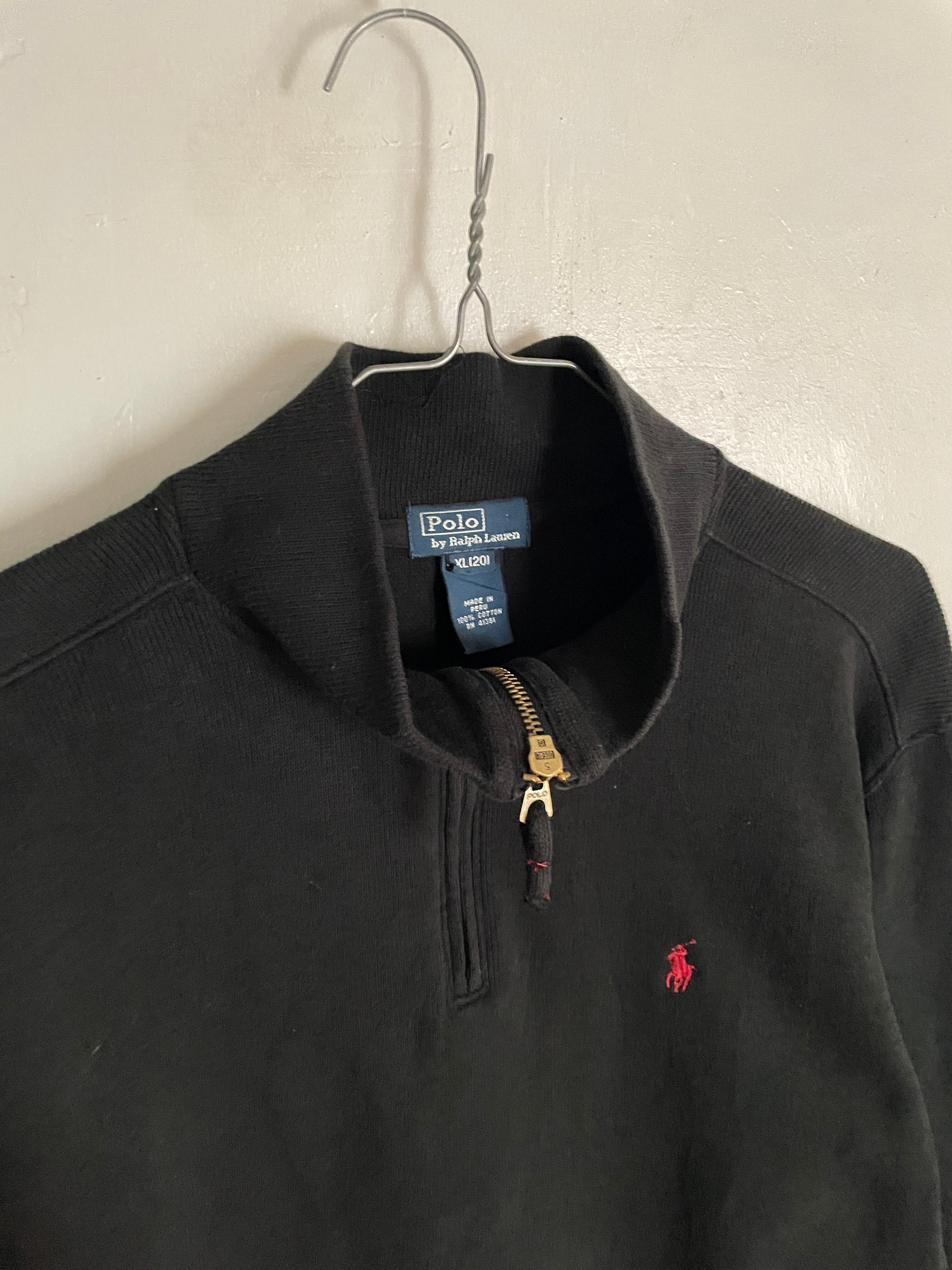 Old Ralph Lauren Black Logo Half Zip Cotton Knit Tops
