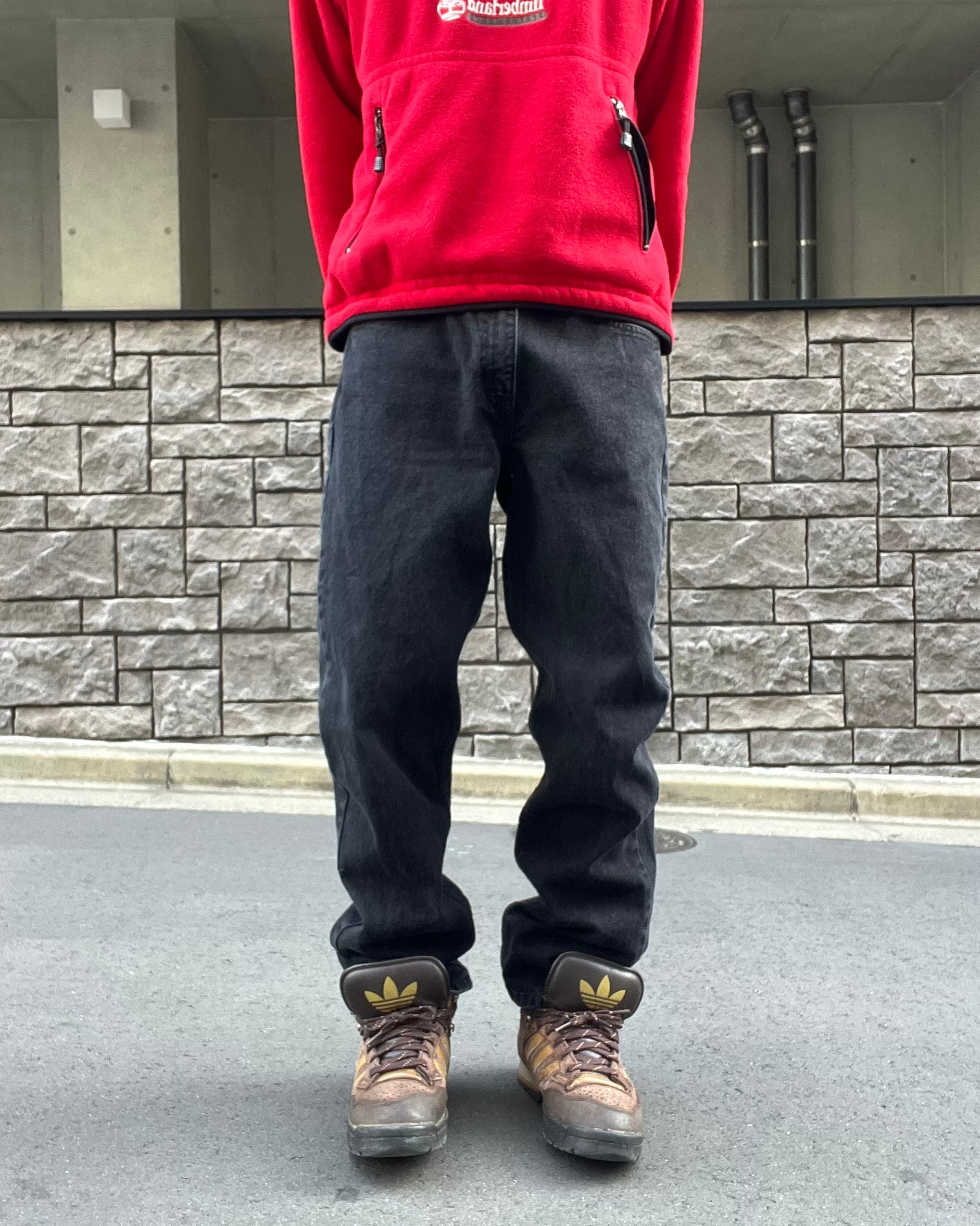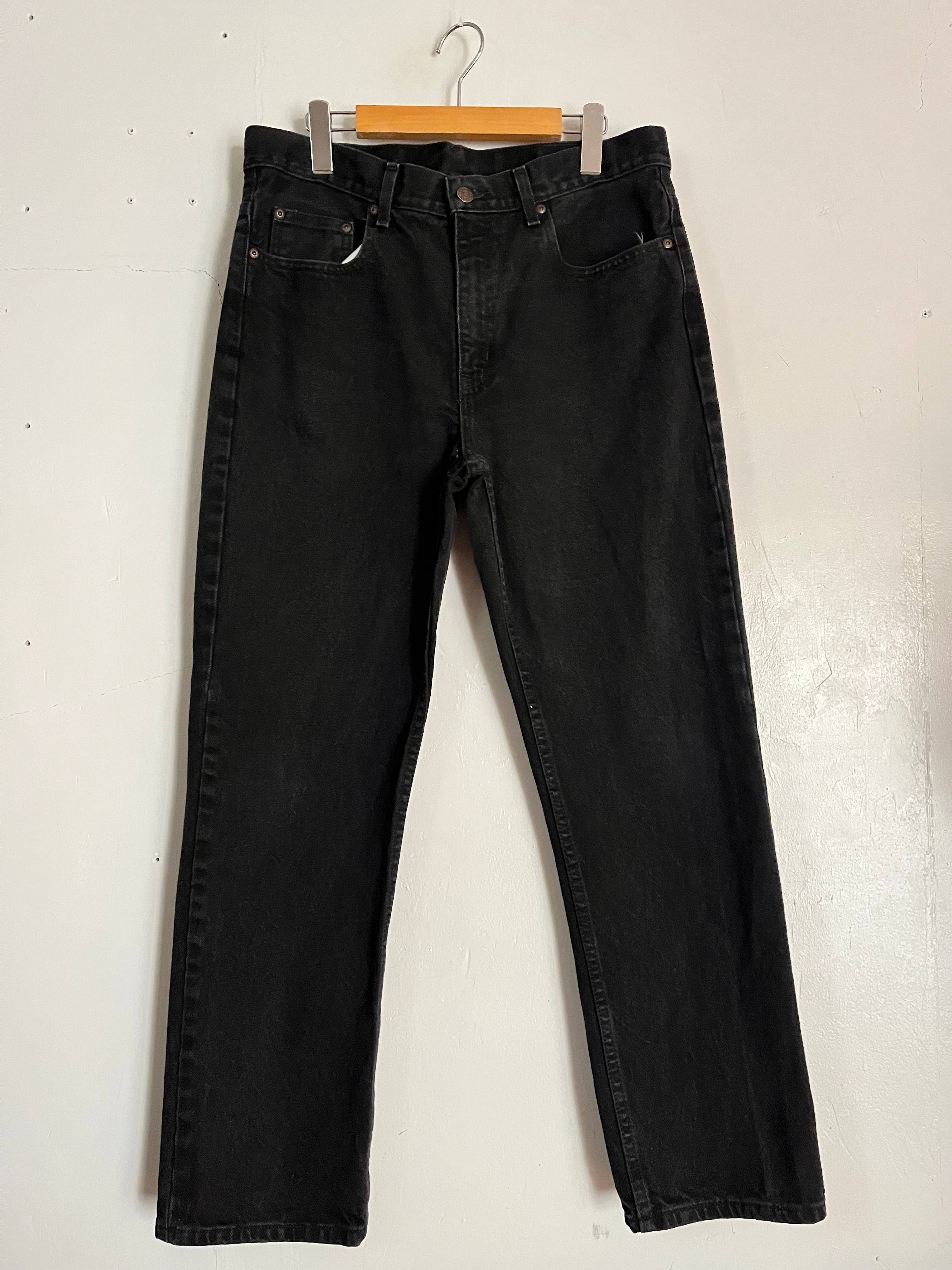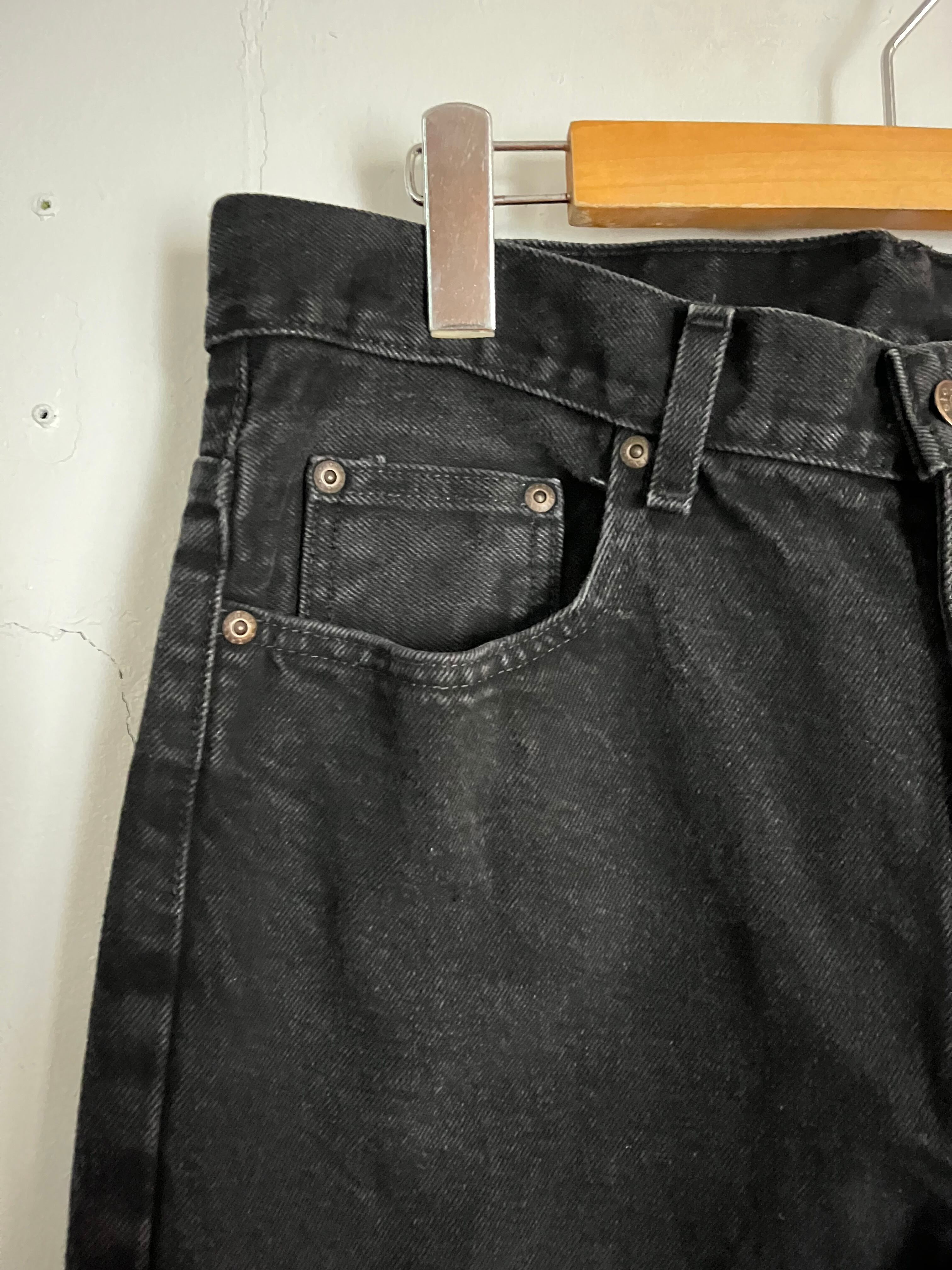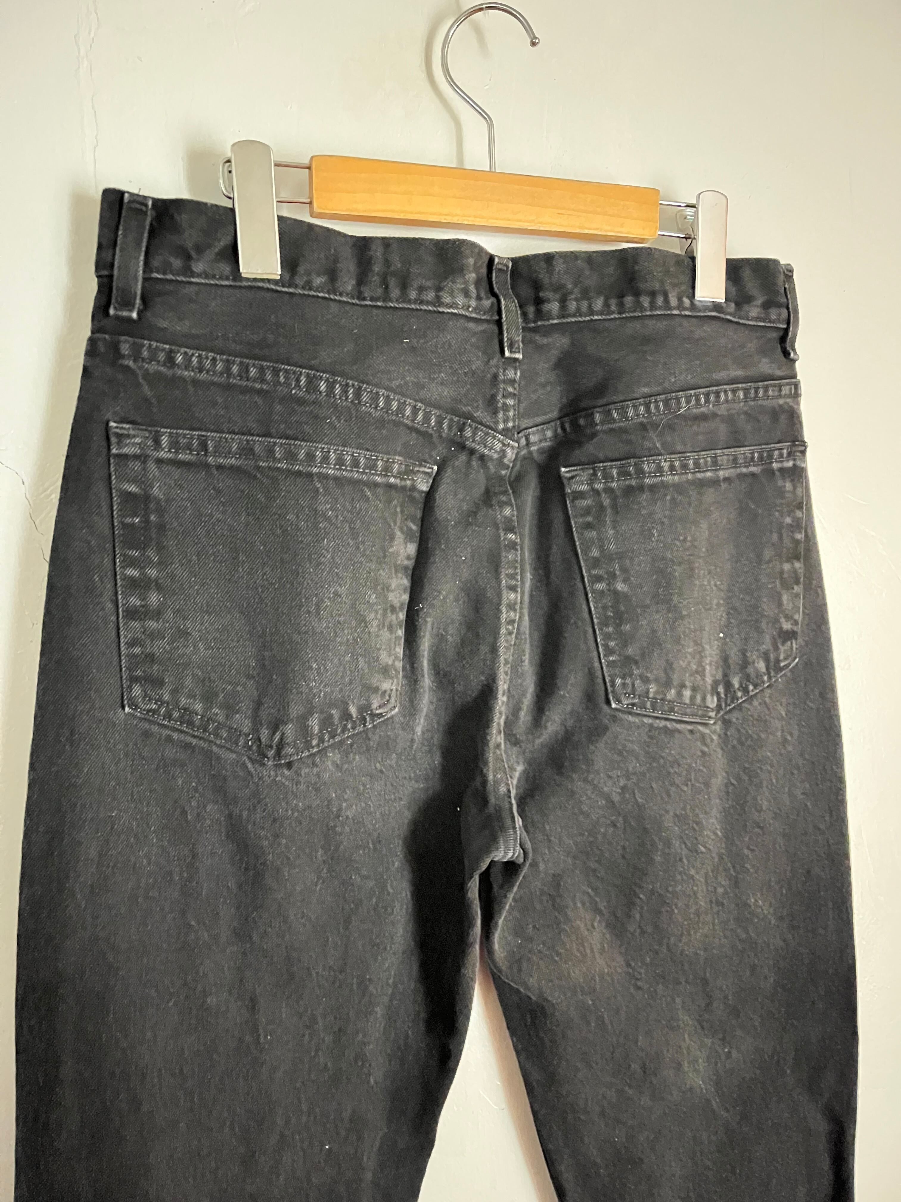 やや褪せたフェイデッド・グローリーのブラックデニム。太過ぎず、細過ぎない綺麗なシルエットです。縦にストンと落ちたストレートシルエット。様々なファッションに取り入れやすく、一本持っておくと何かと重宝するアイテムかと思います。