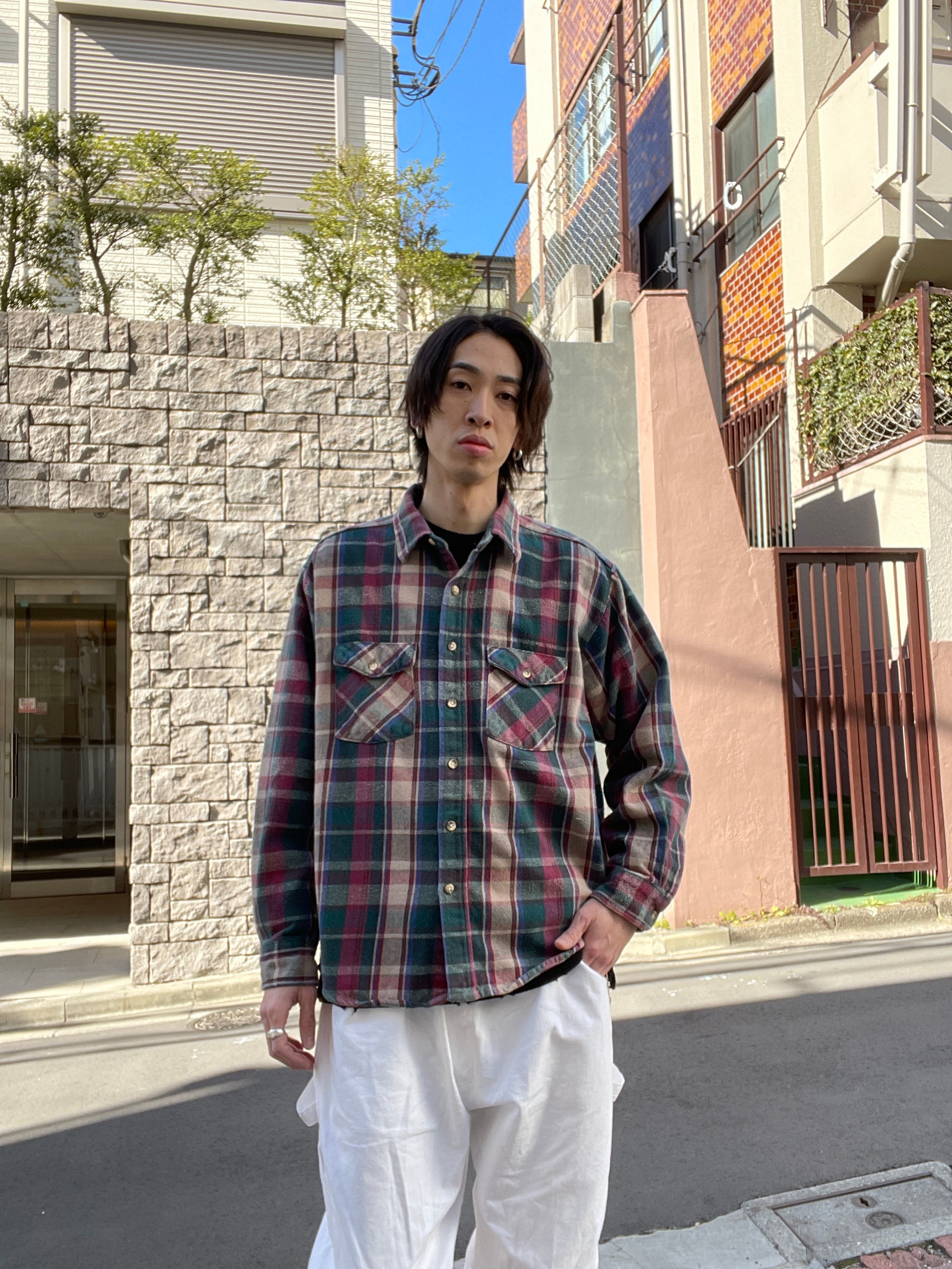 Old FIVE BROTHERS Heavy Flannel Check L/S Shirt