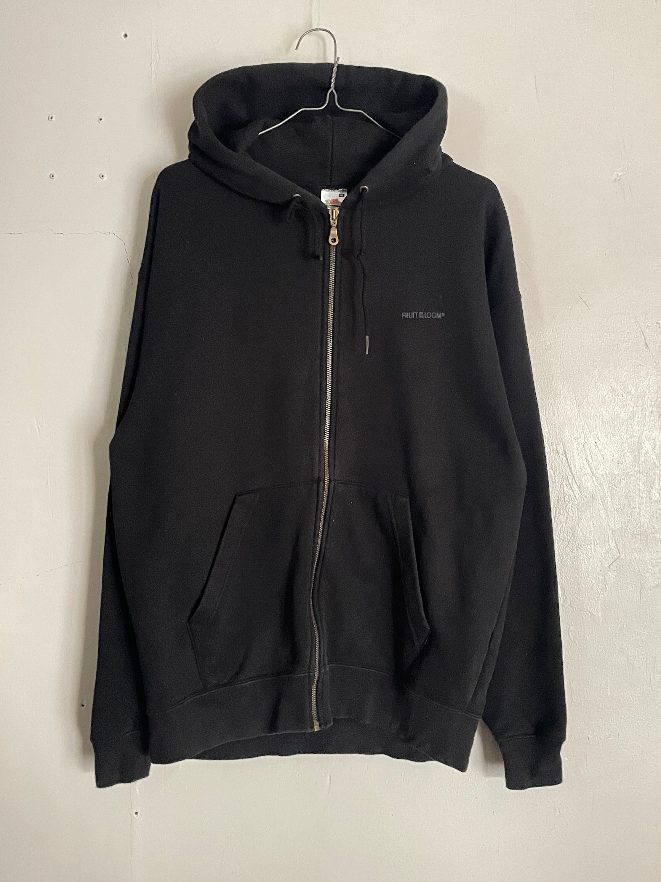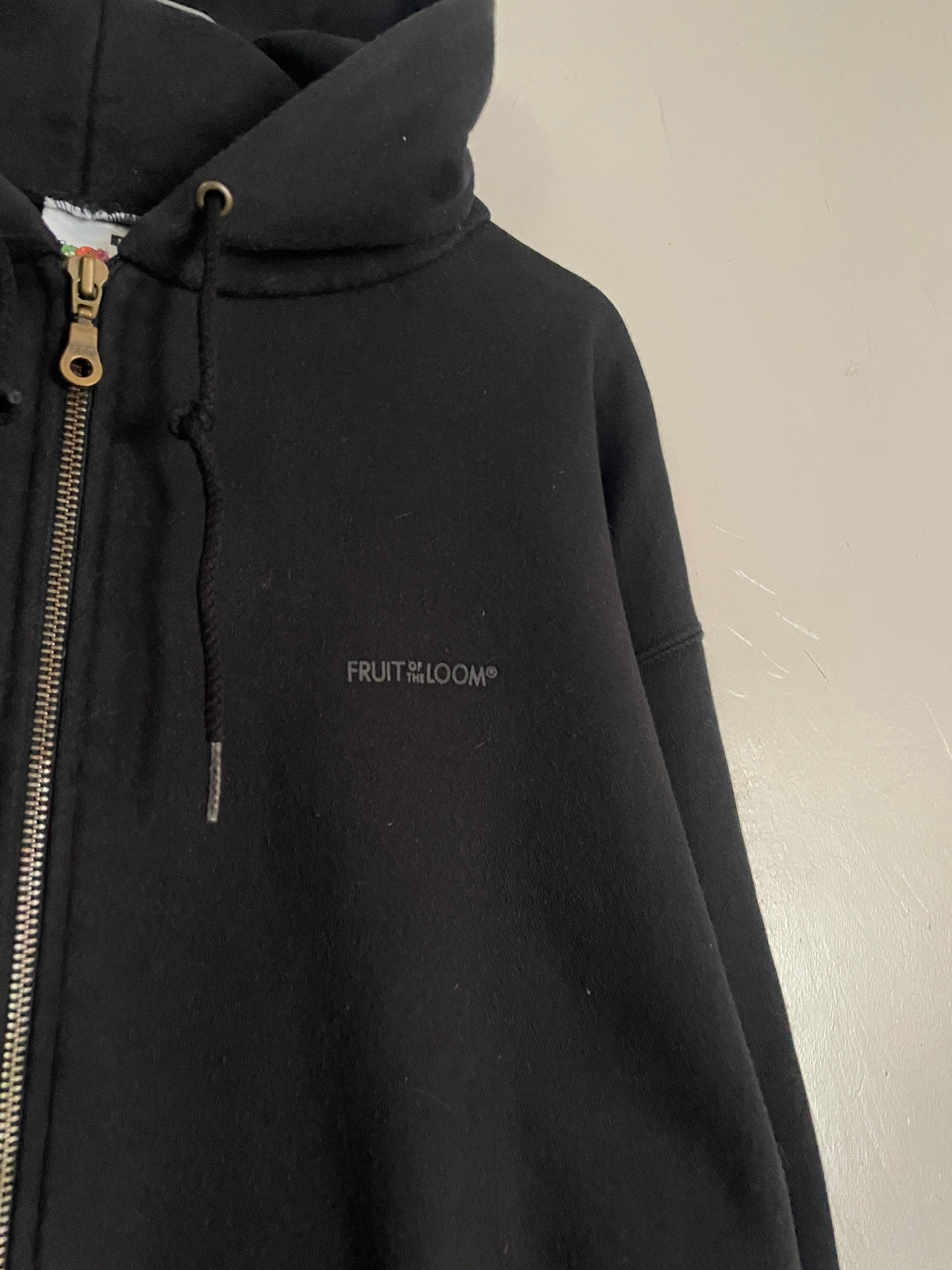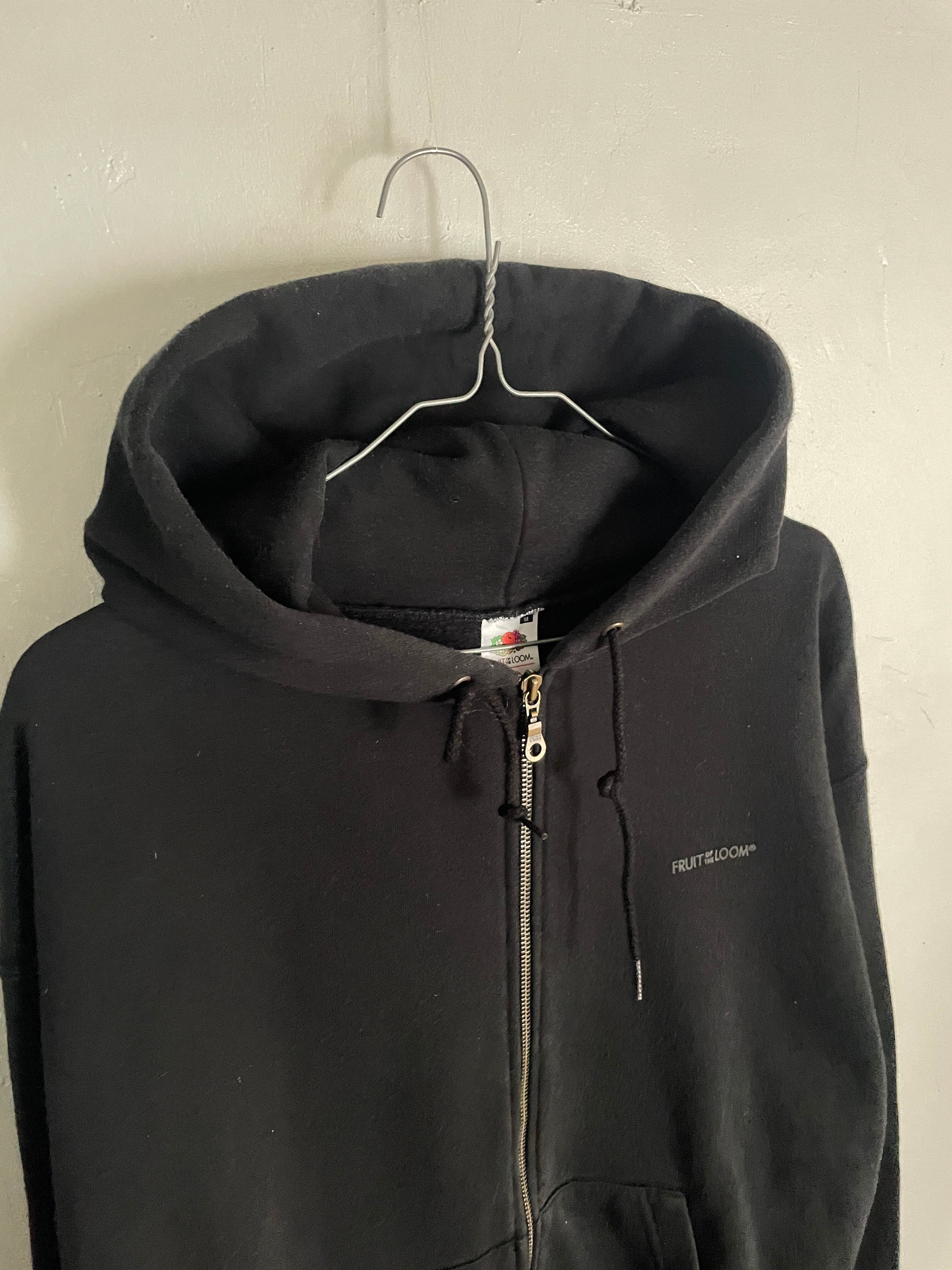 Old FRUIT OF THE LOOM Black Logo Zip Hoodie