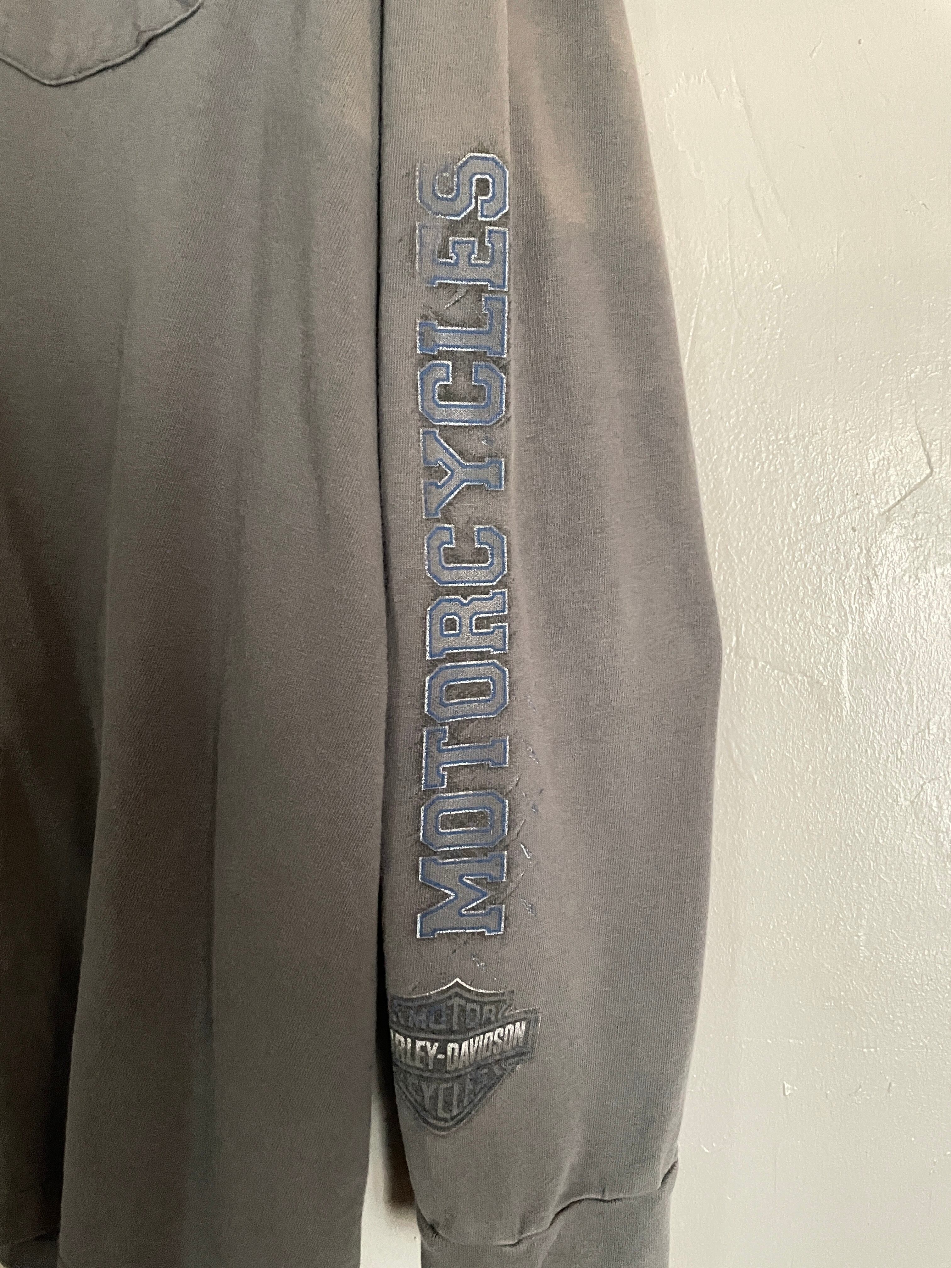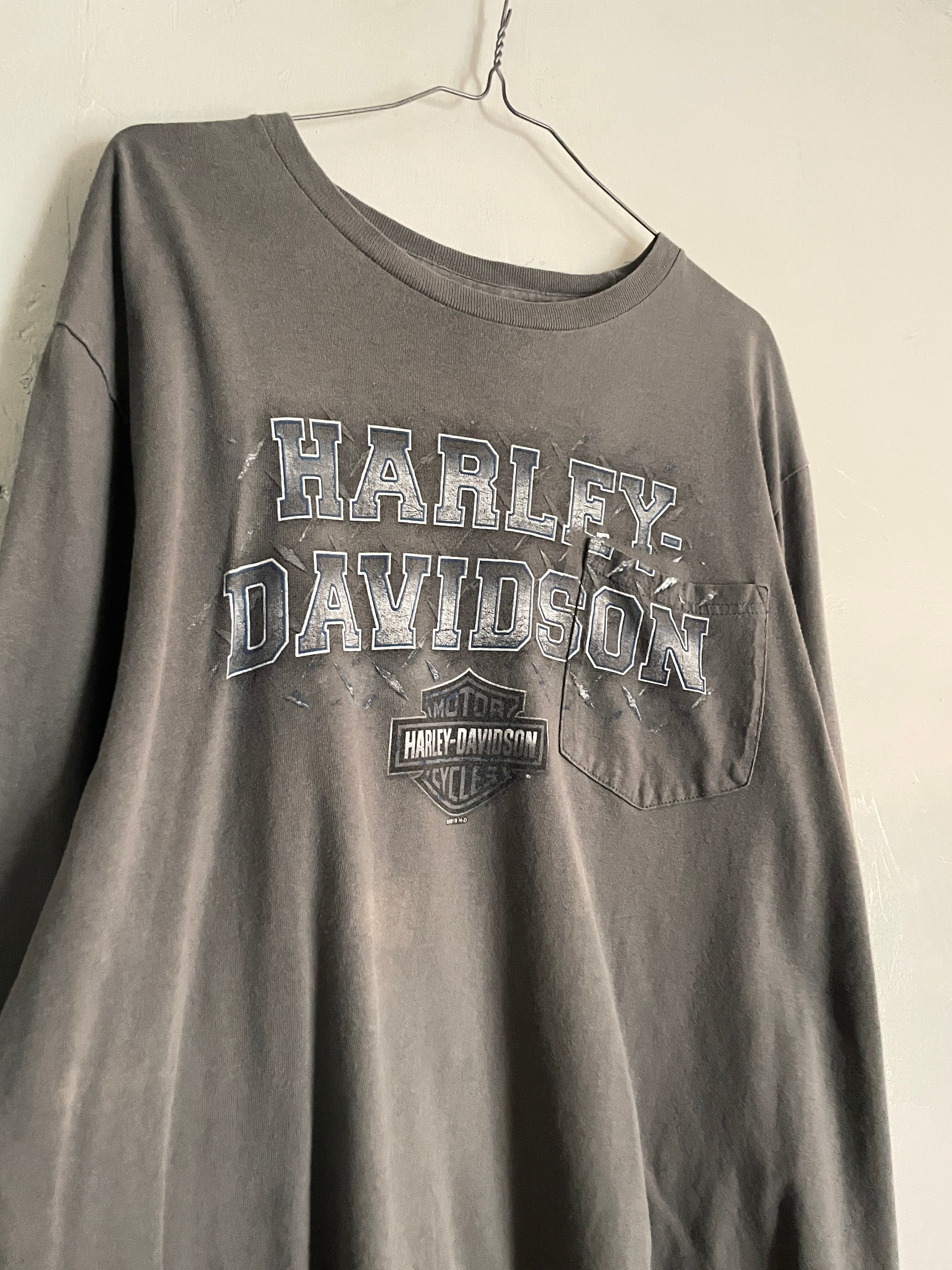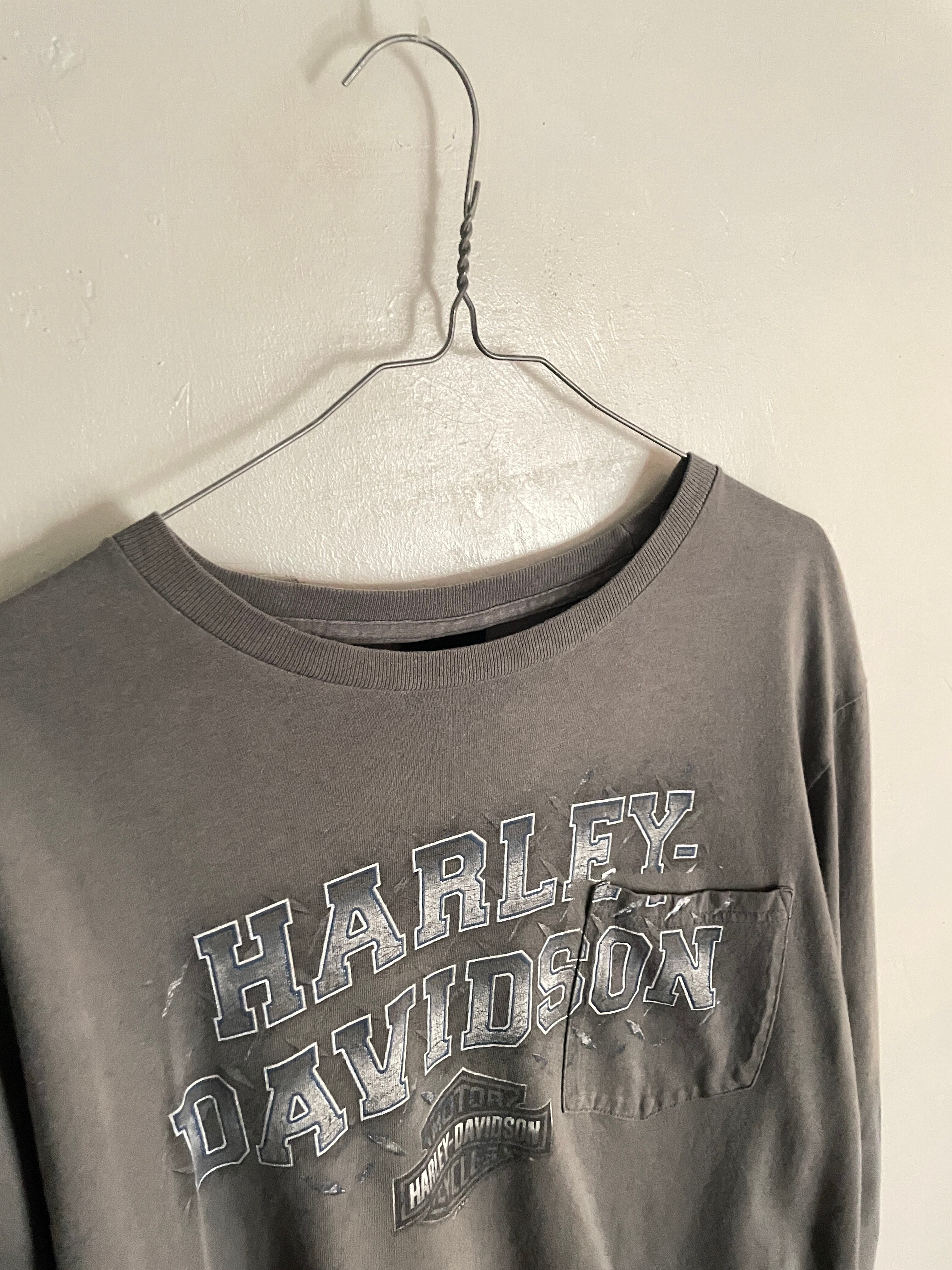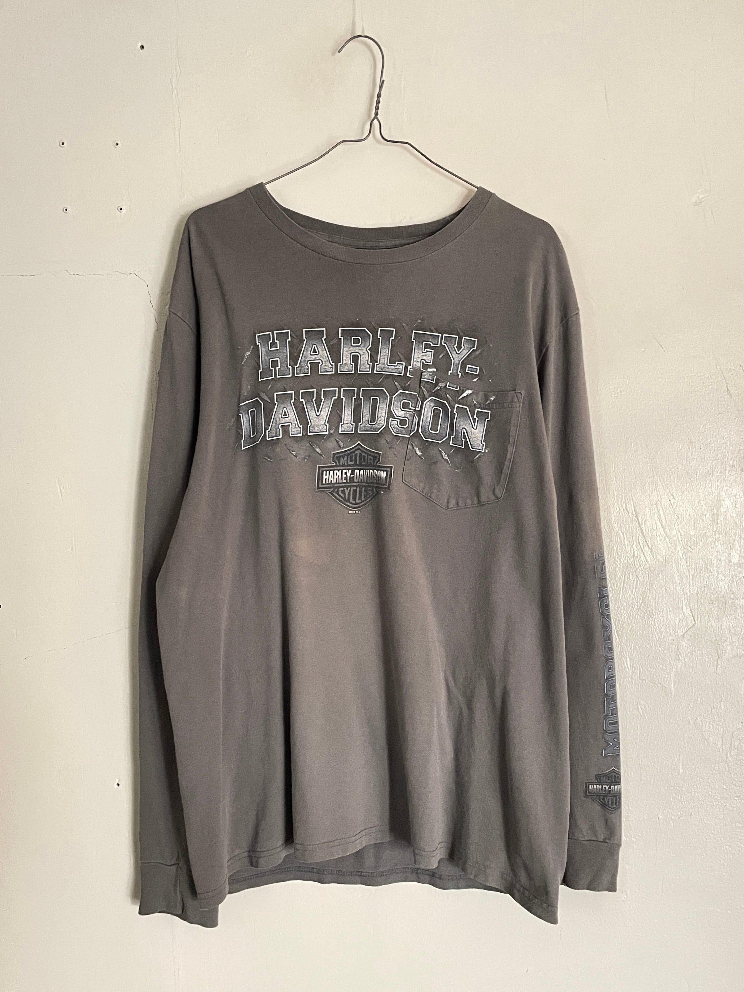 Old HARLEY-DAVIDSON Gray Double Printed Pocket L/S T Shirt