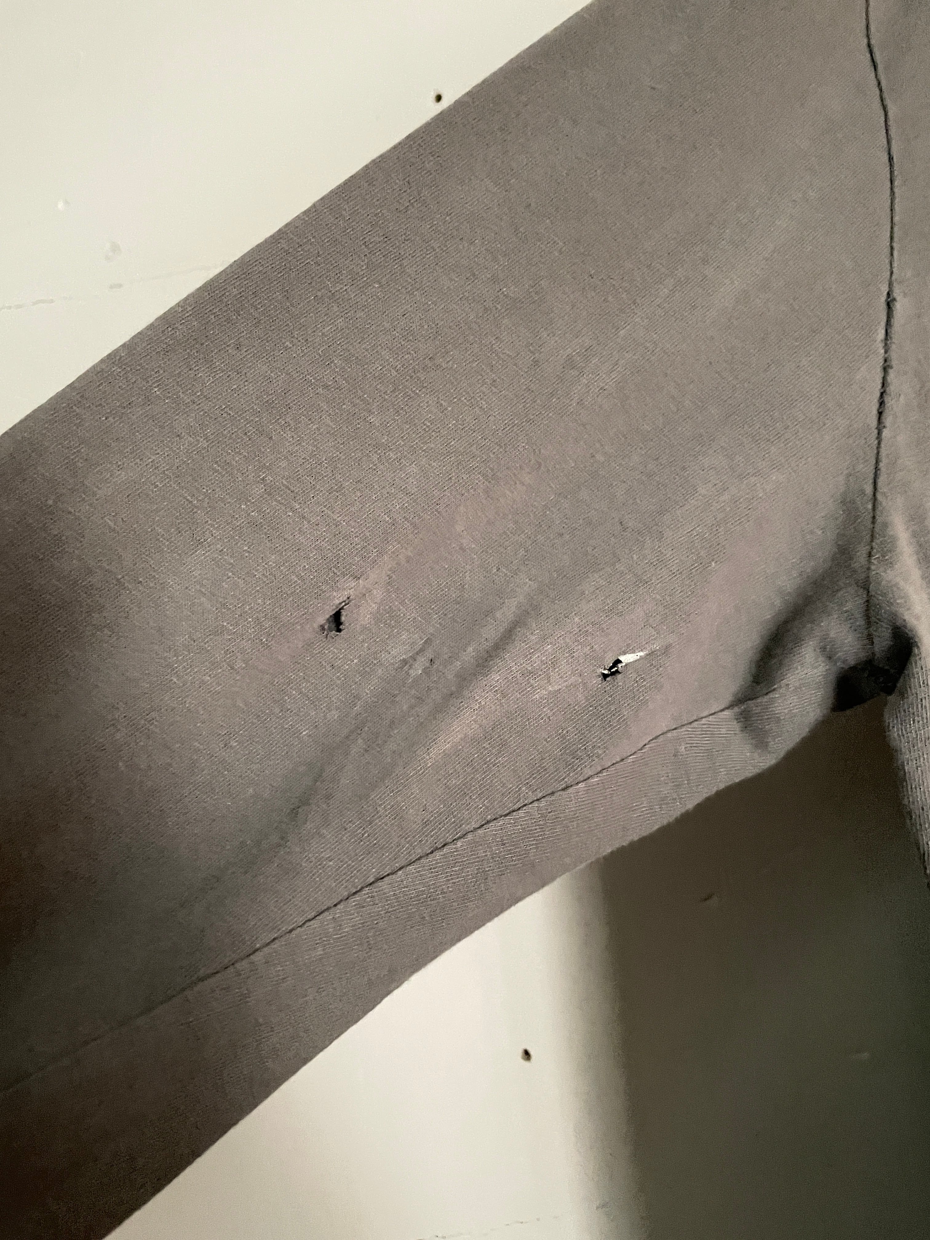 右袖部分に、ダメージが見られますが、それも込みでお洒落なTシャツです。