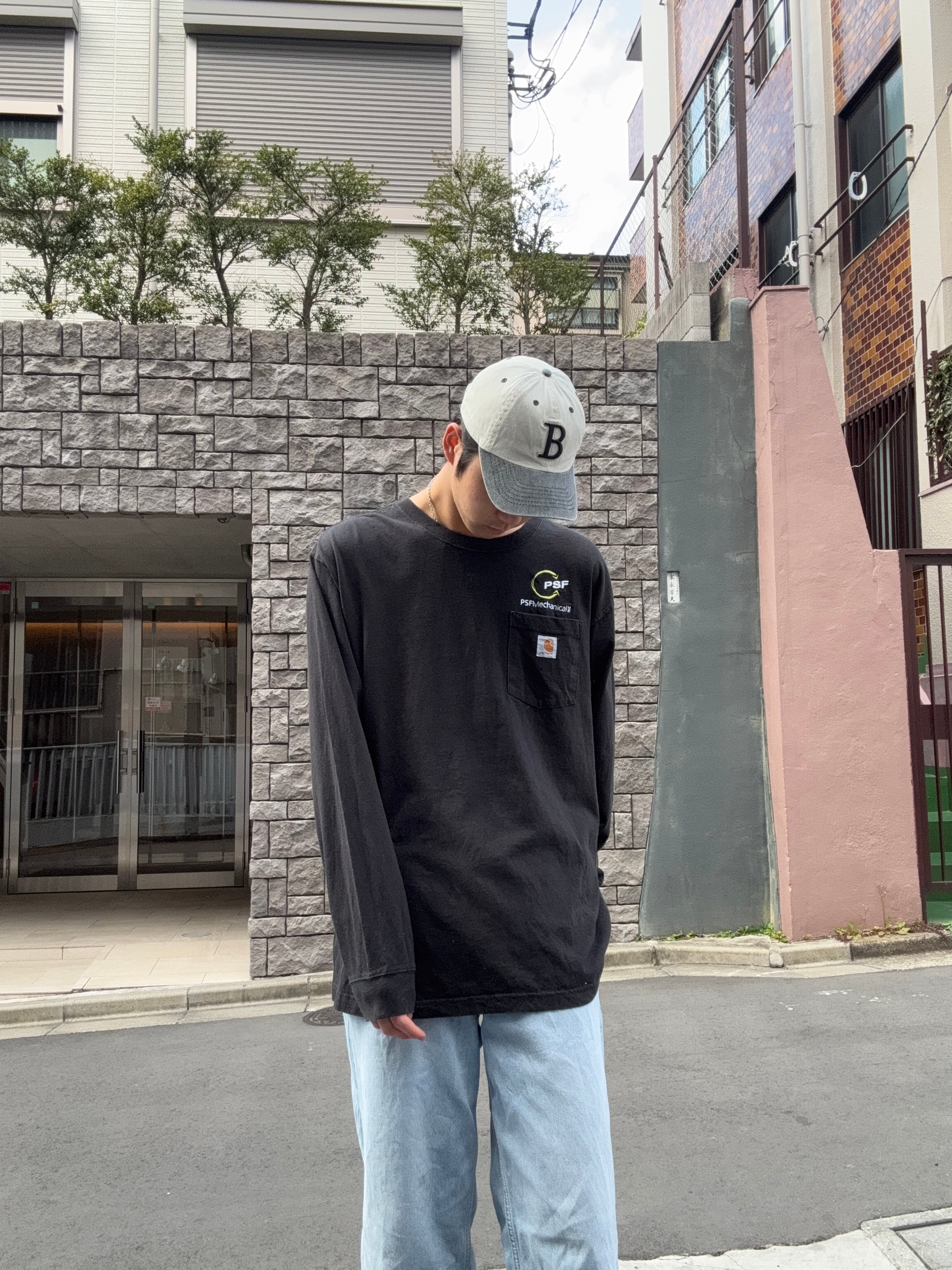 カーハート定番のポケットロンTに、企業のプロモーションロゴが配された通好みの一着。現場で愛用されていたようなリアルなフェード感と、ブラックボディに映えるイエローのロゴが、唯一無二のヴィンテージ感を漂わせます。ワークブランドらしいタフな作りはそのままに、ストリートな着こなしに奥行きを与えてくれる、一点物ならではの魅力が詰まったアイテムです。