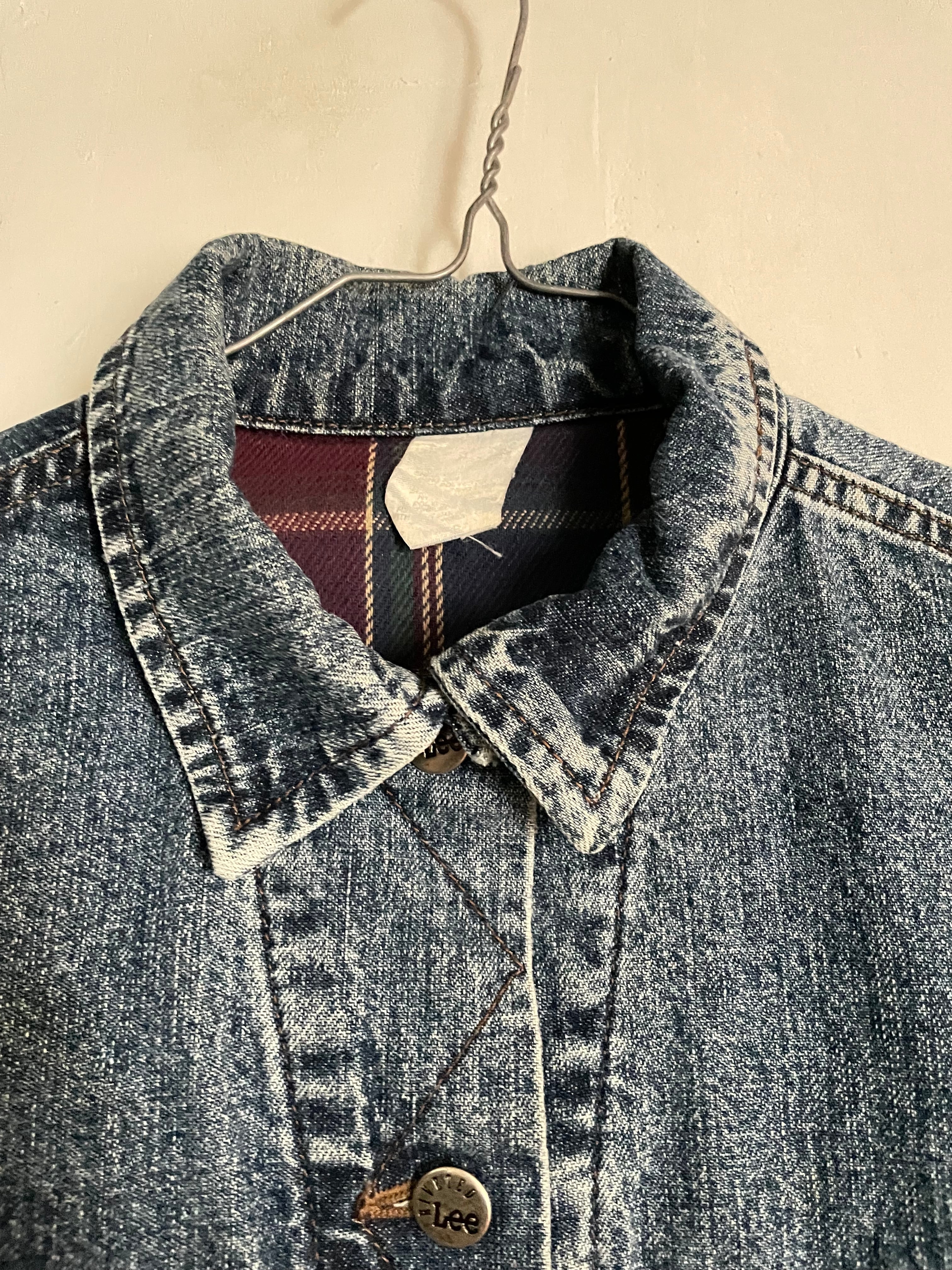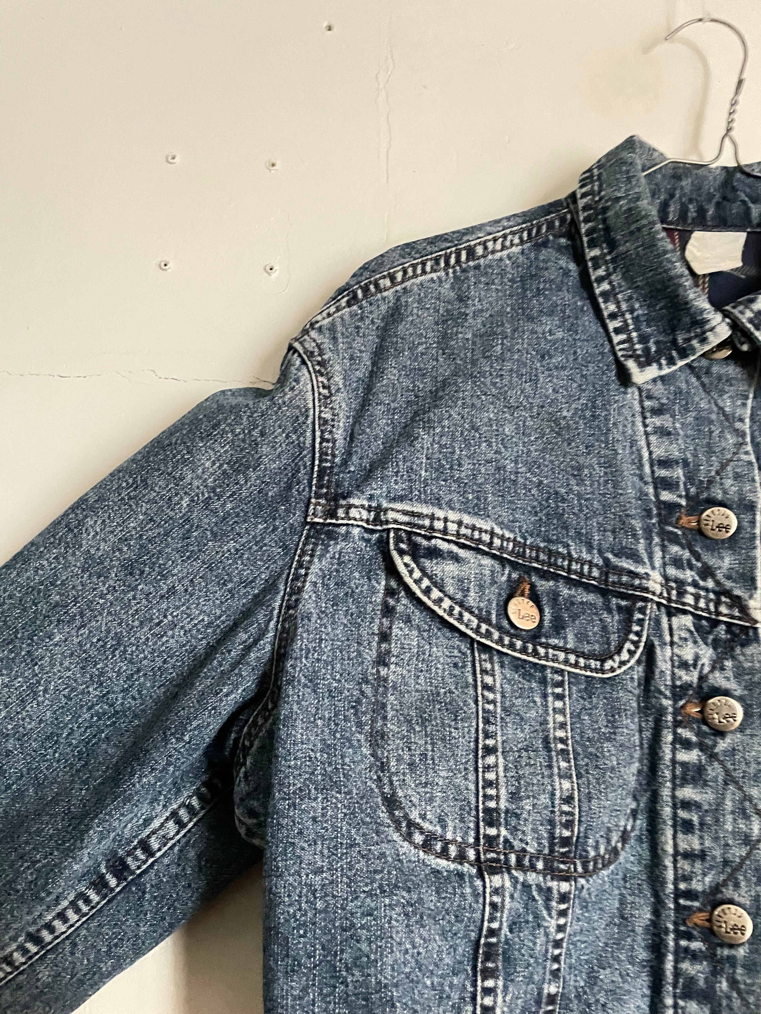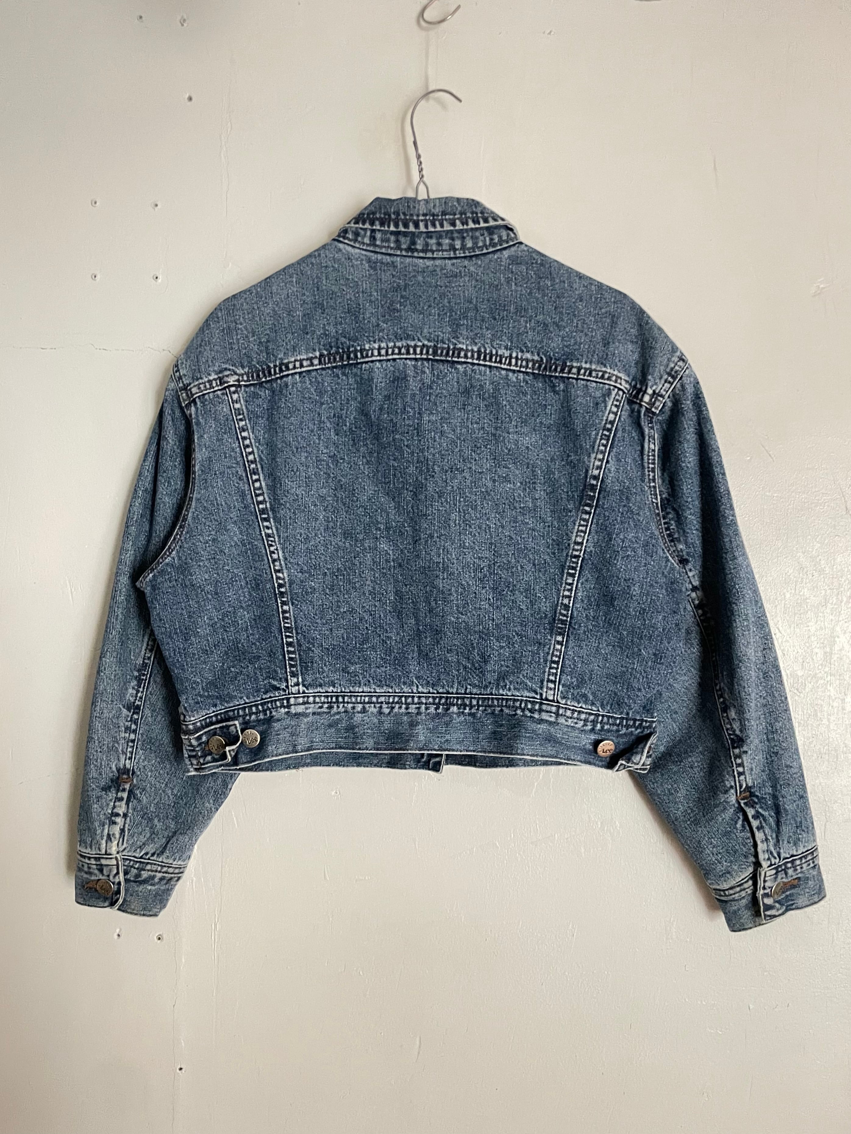Leeのクロップドデニムジャケット。程よく色落ちしたインディゴカラーが魅力の一着です。コンパクトなショート丈シルエットで、スタイルアップ効果が期待でき、羽織るだけで今っぽい印象に仕上がります。中はコットン素材を使用しておりロングシーズン活躍してくれそうです。