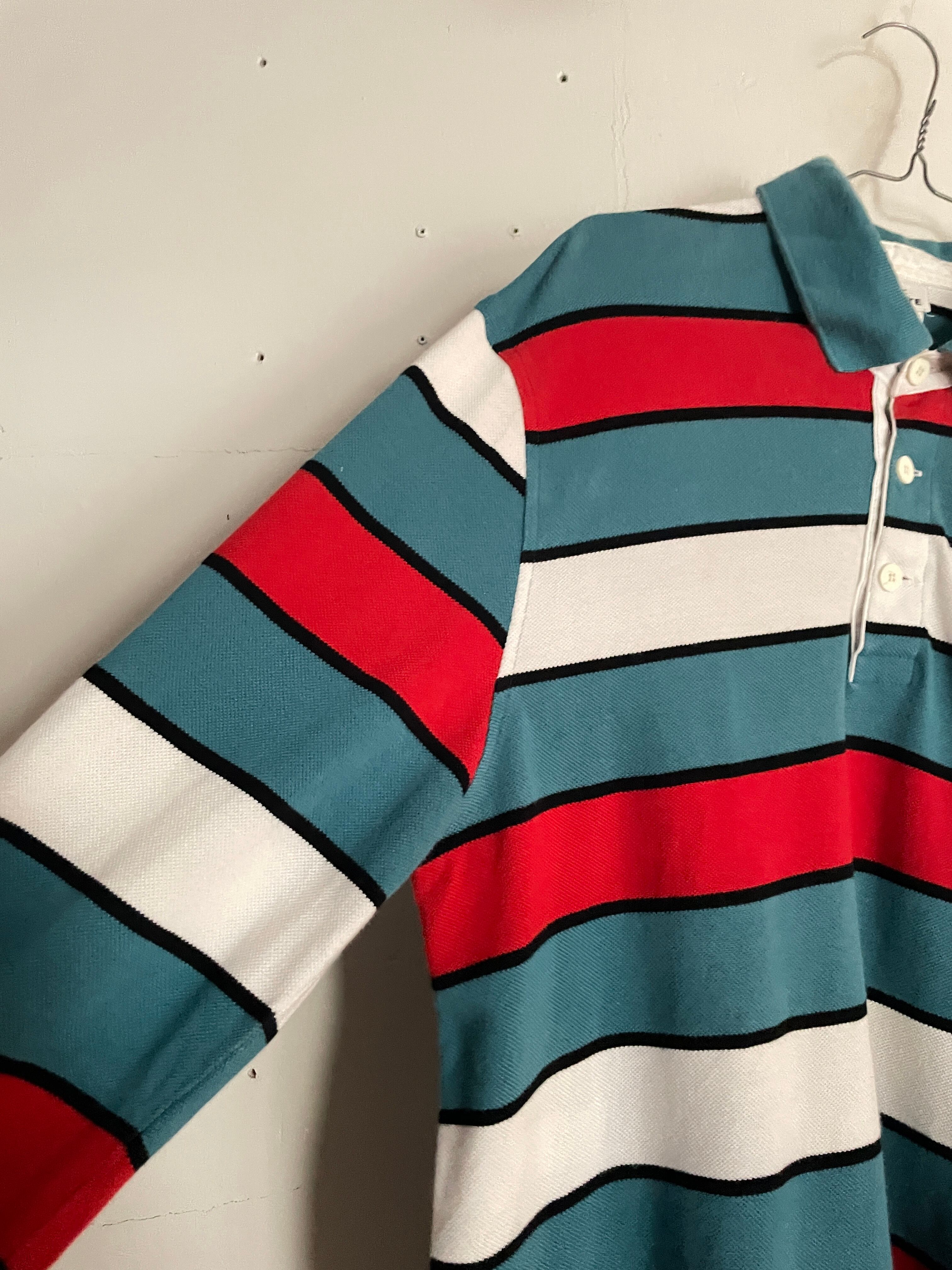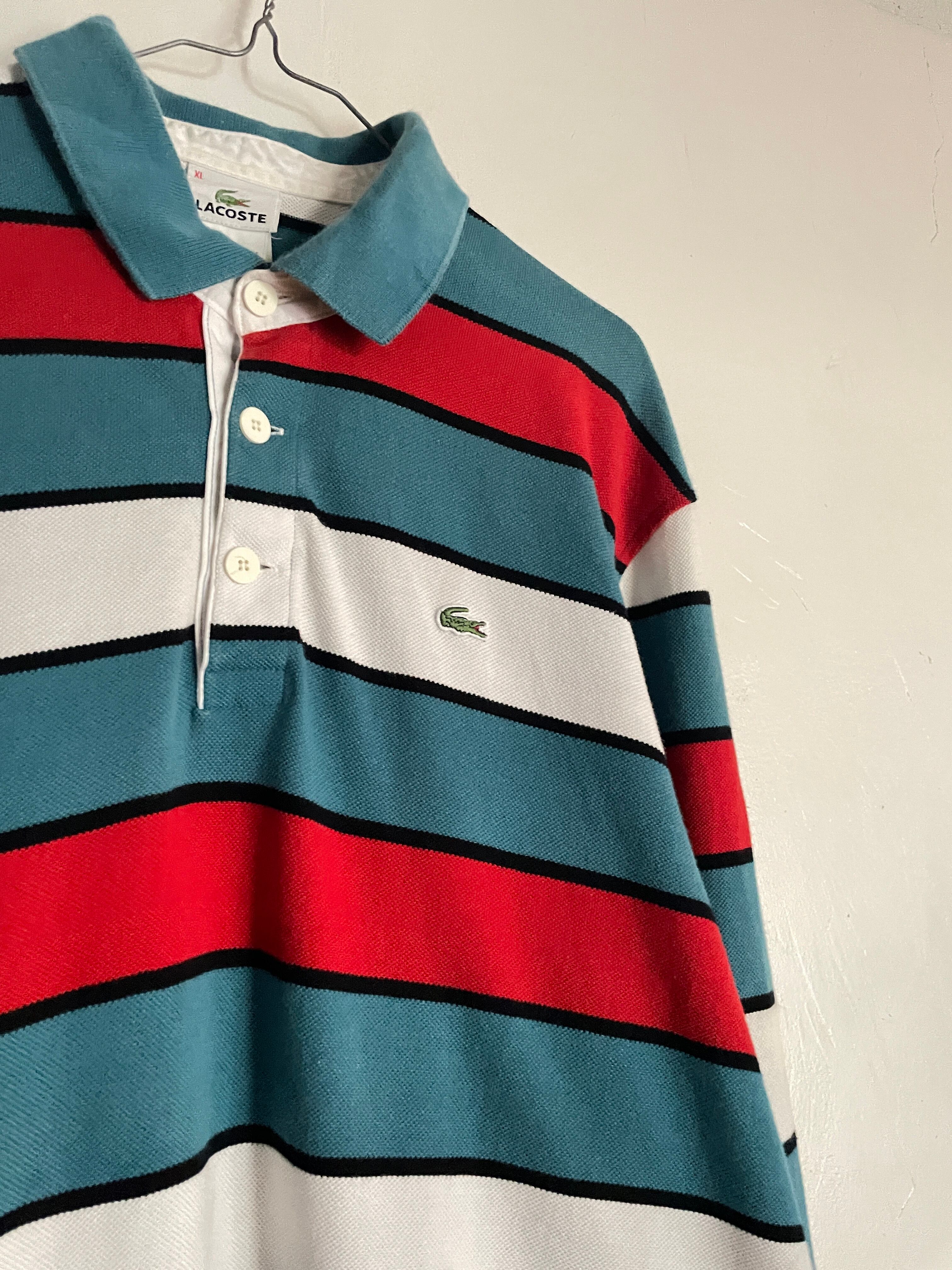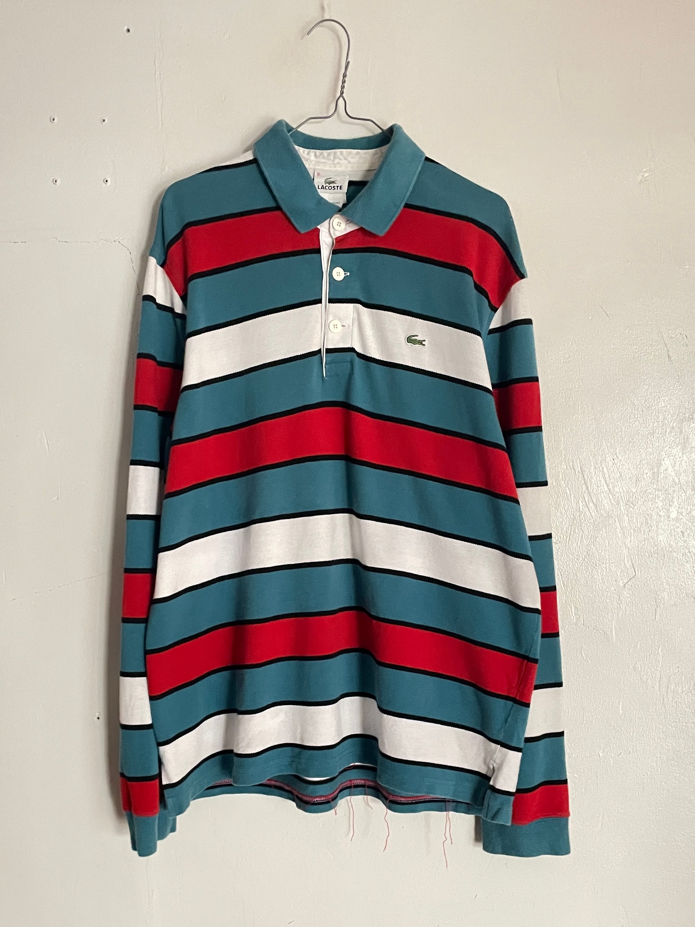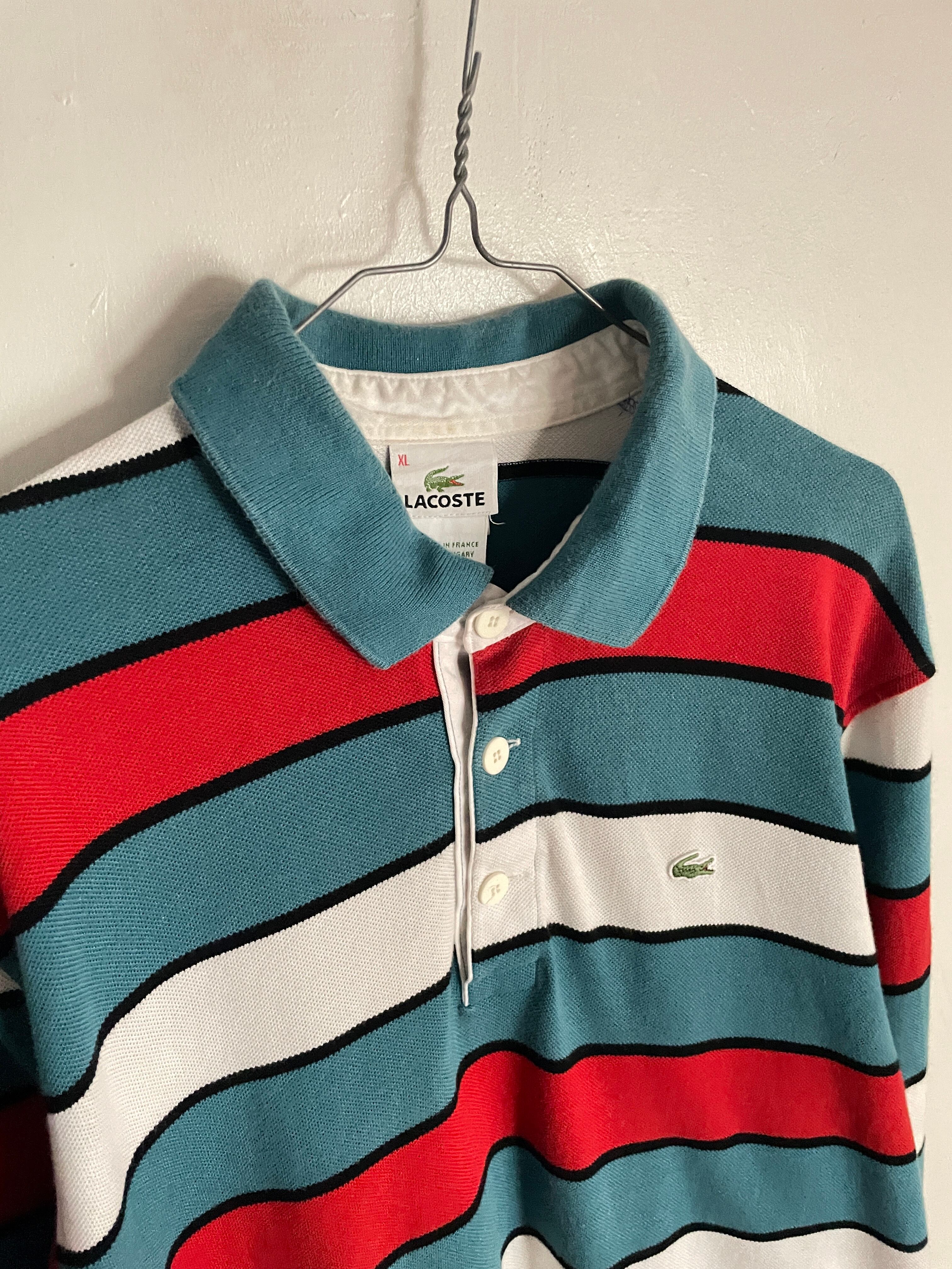 Old LACOSTE Multicolor Border Design L/S Polo Shirt