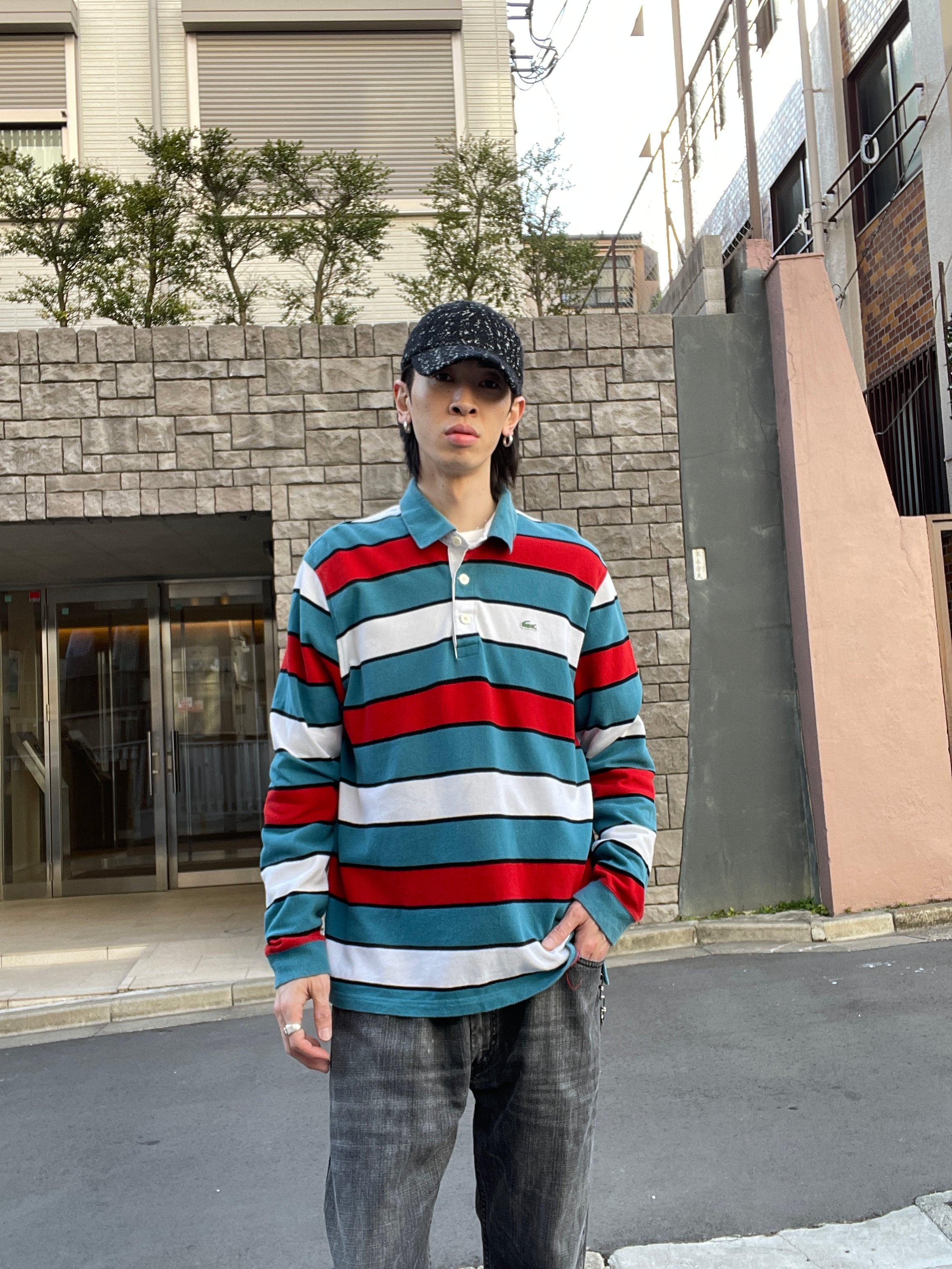 明るいマルチカラーのボーダーデザインがお洒落な、ラコステのポロシャツ。フロント部分にはワンポイントでラコステロゴ。さりげなくてグッドです。とにかく配色が抜群な一着です。インナーの差し色としても活躍してくれそうです。ゆったりとしたサイズ感で、春などにはファッションの主役になってくれるアイテムです。