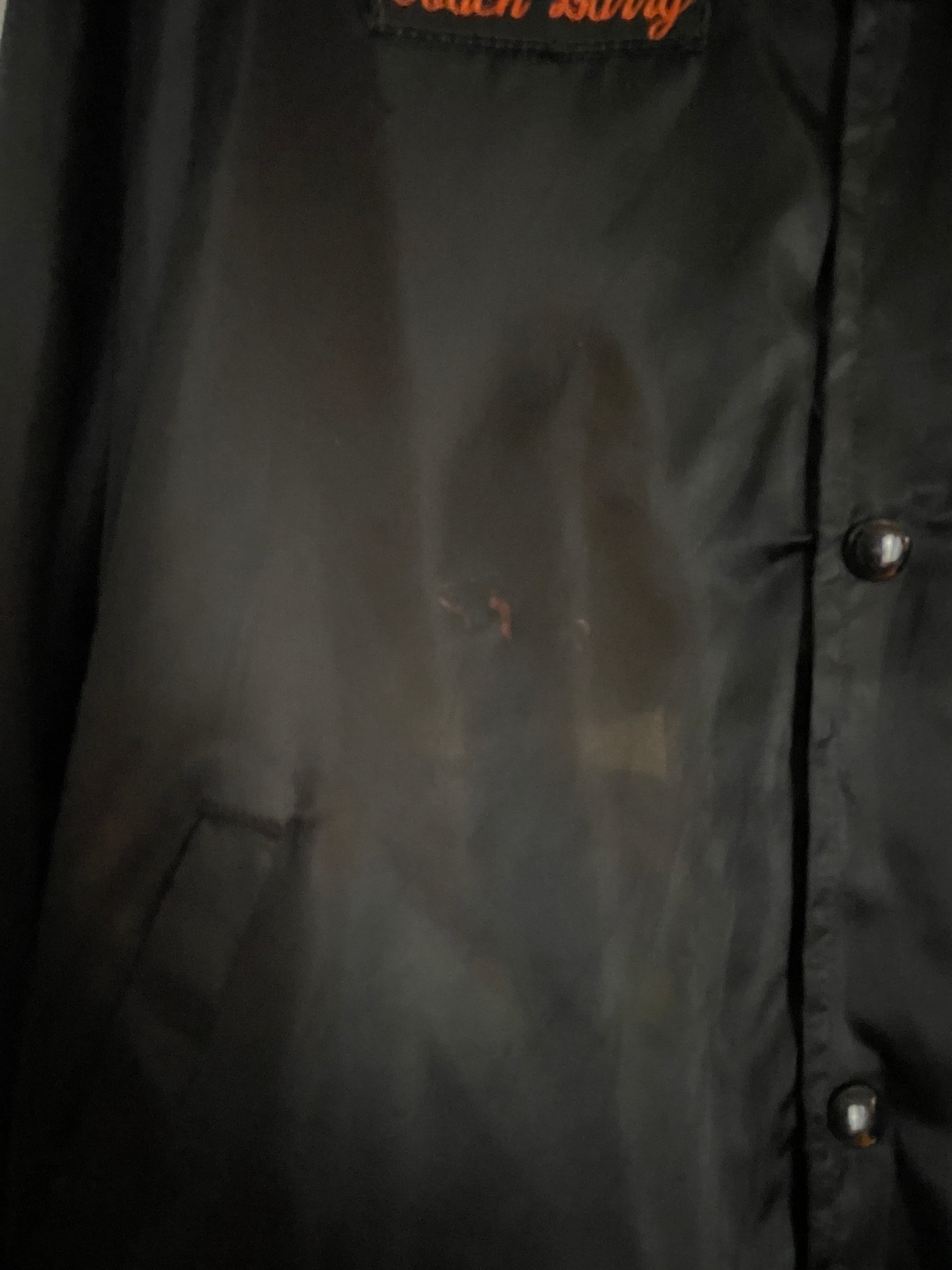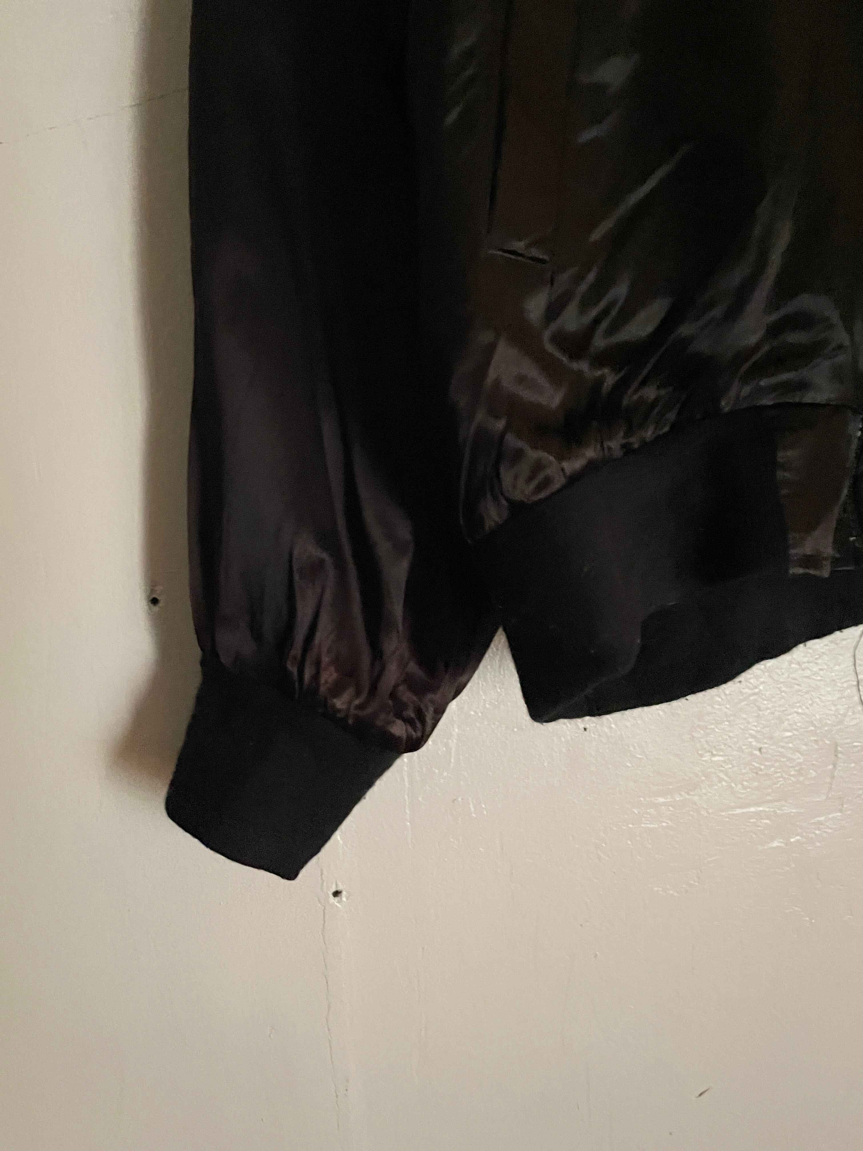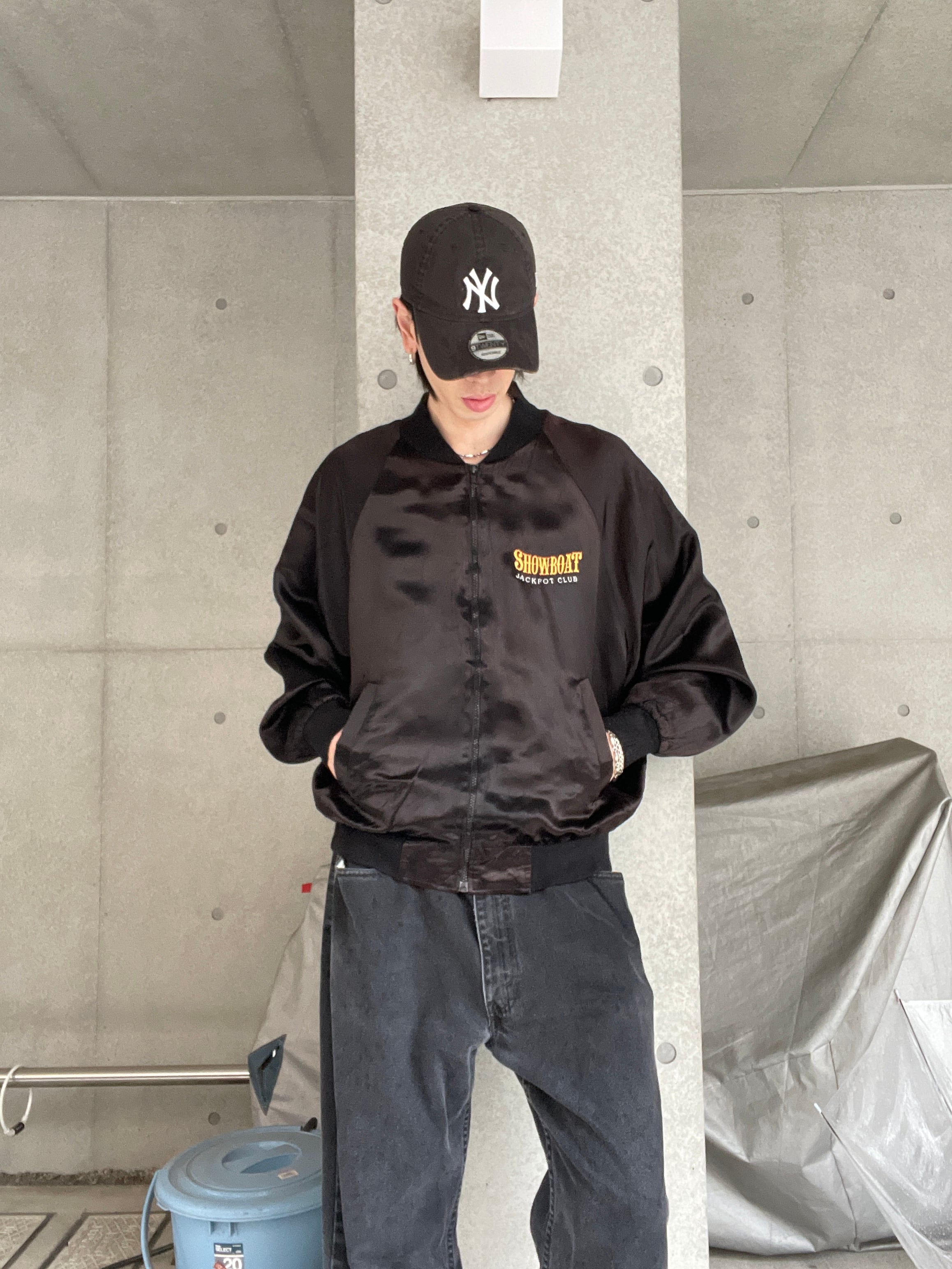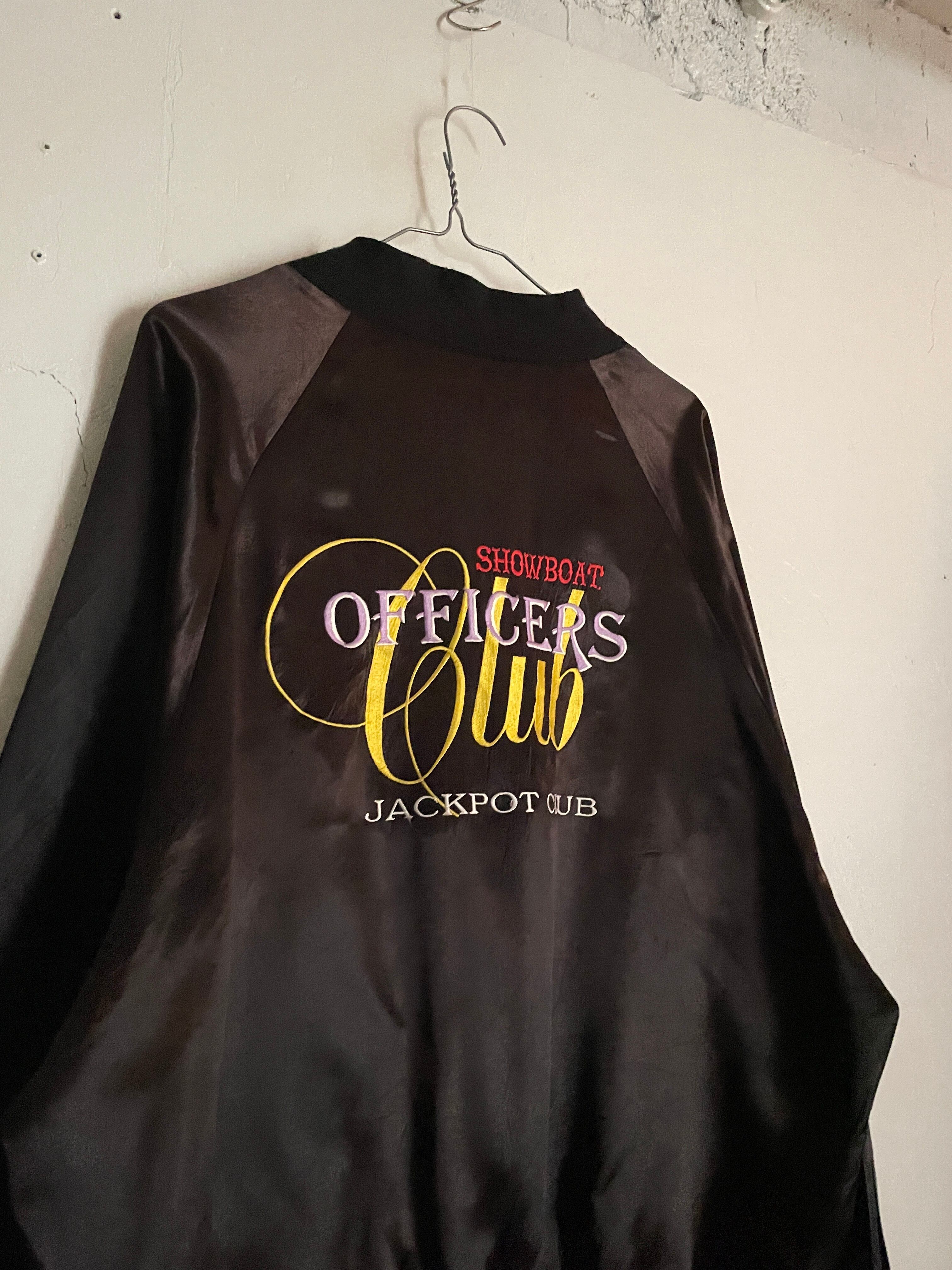 光沢のあるブラックボディに、かつてアメリカのラスベガスにあったカジノ”ショーボード”の刺繍が両面に施されたアセテートジップブルゾン。テロッとした軽めな素材感。フロント部分にはワンポイント。バックには配色がお洒落なデカ刺繍が施されています。前後でしっかりとメリハリのあるデザインがグッドです。ゆったりとしたサイズ感なのでラフに着られるのも魅力的です。春には主役になってくれるアイテムです。USA製なのもポイントが高いです。