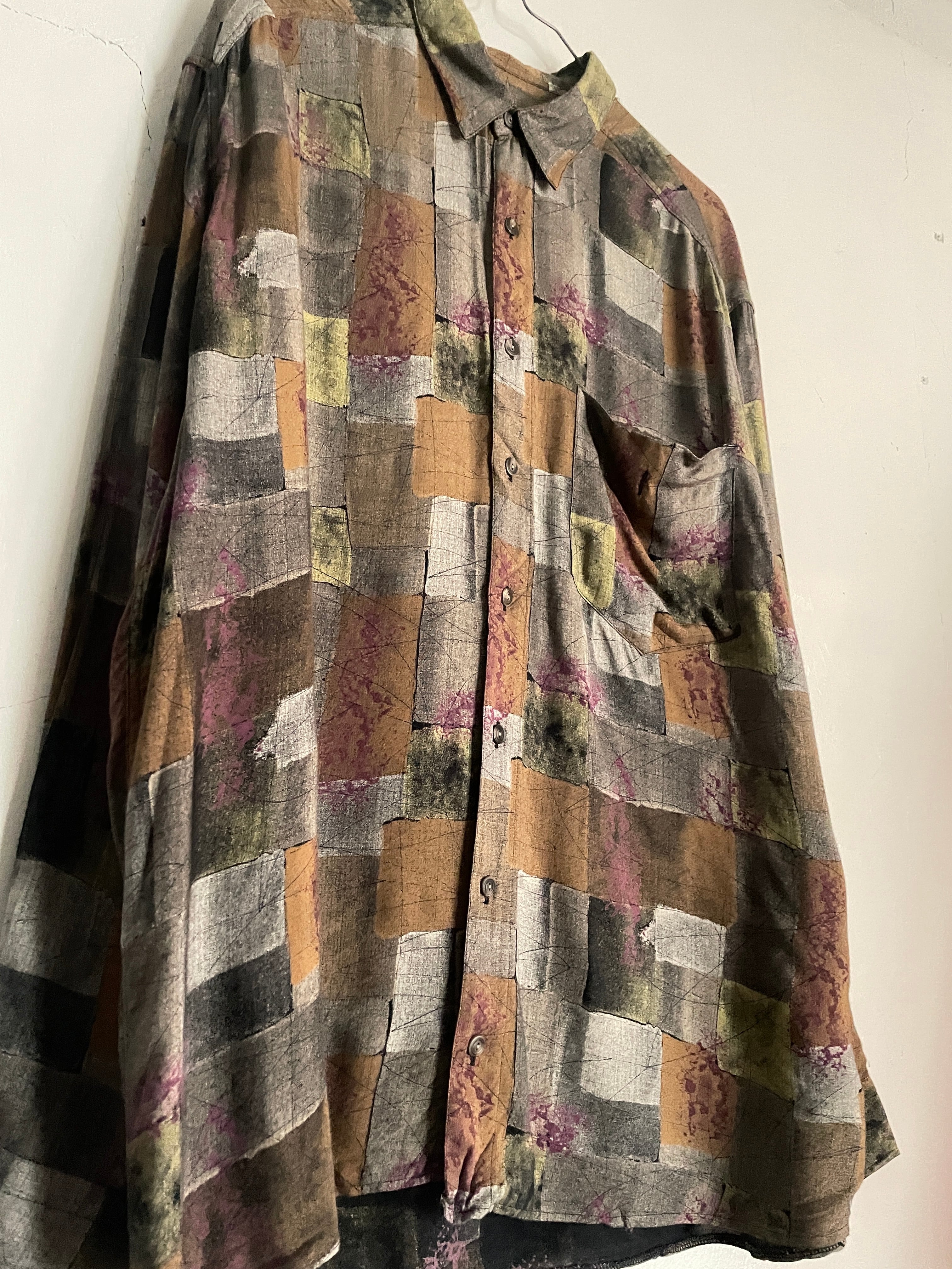 Old CAVORI Whole Pattern Design Rayon L/S Shirt