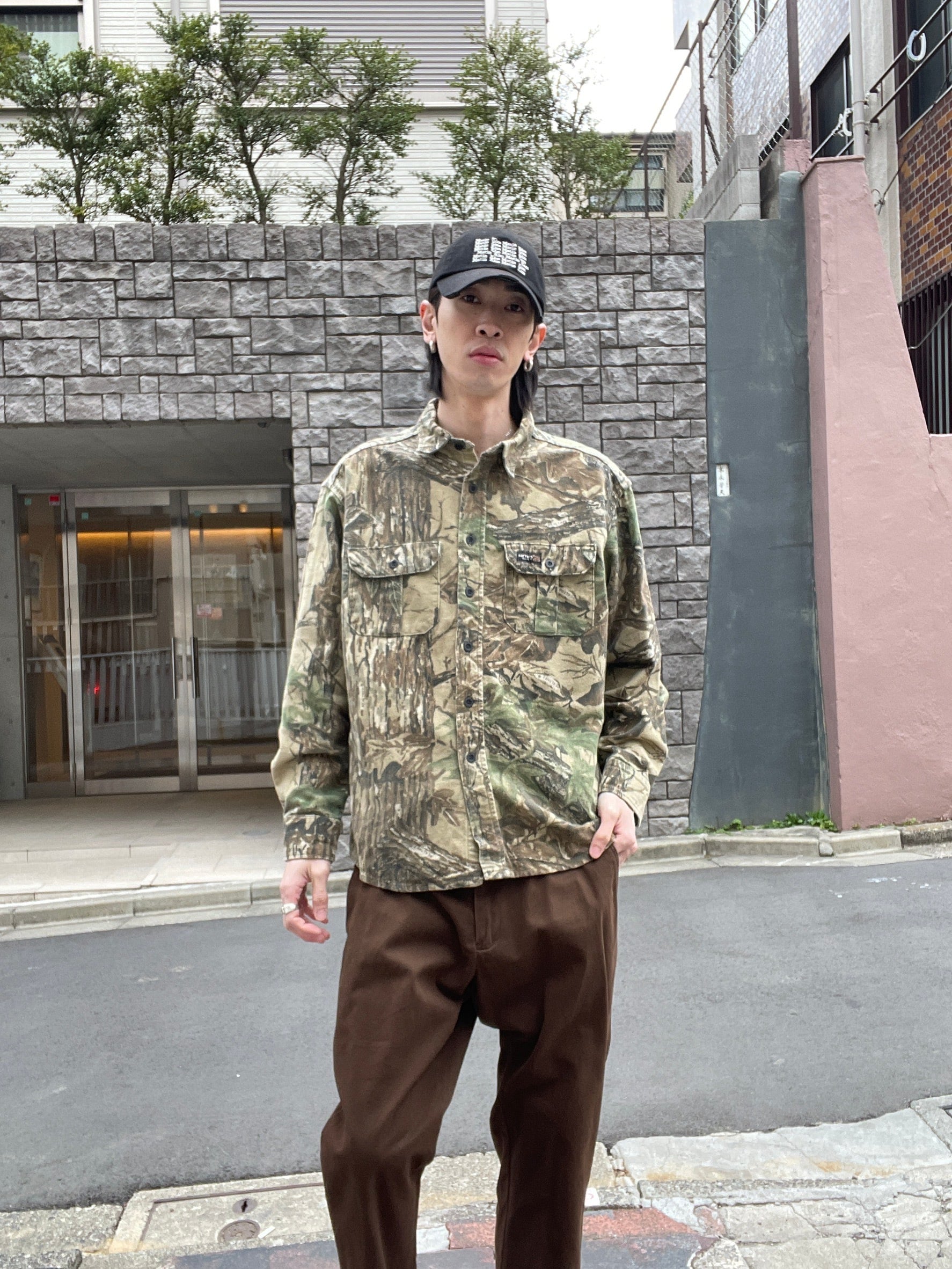 リアルな柄デザインが魅力的な、ラトラーズのリアルツリーカモ柄コットンシャツ。樹木や葉を模した迷彩柄が特徴的です。厚手なタフな生地感なので、ガシガシ着られそうです。柄物ではありますが、落ち着いたトーンで、色のまとまりがしっかりしているので使い勝手が良いです。ゆったりとしたサイズ感で、春には一枚でラフに着られそうです。
