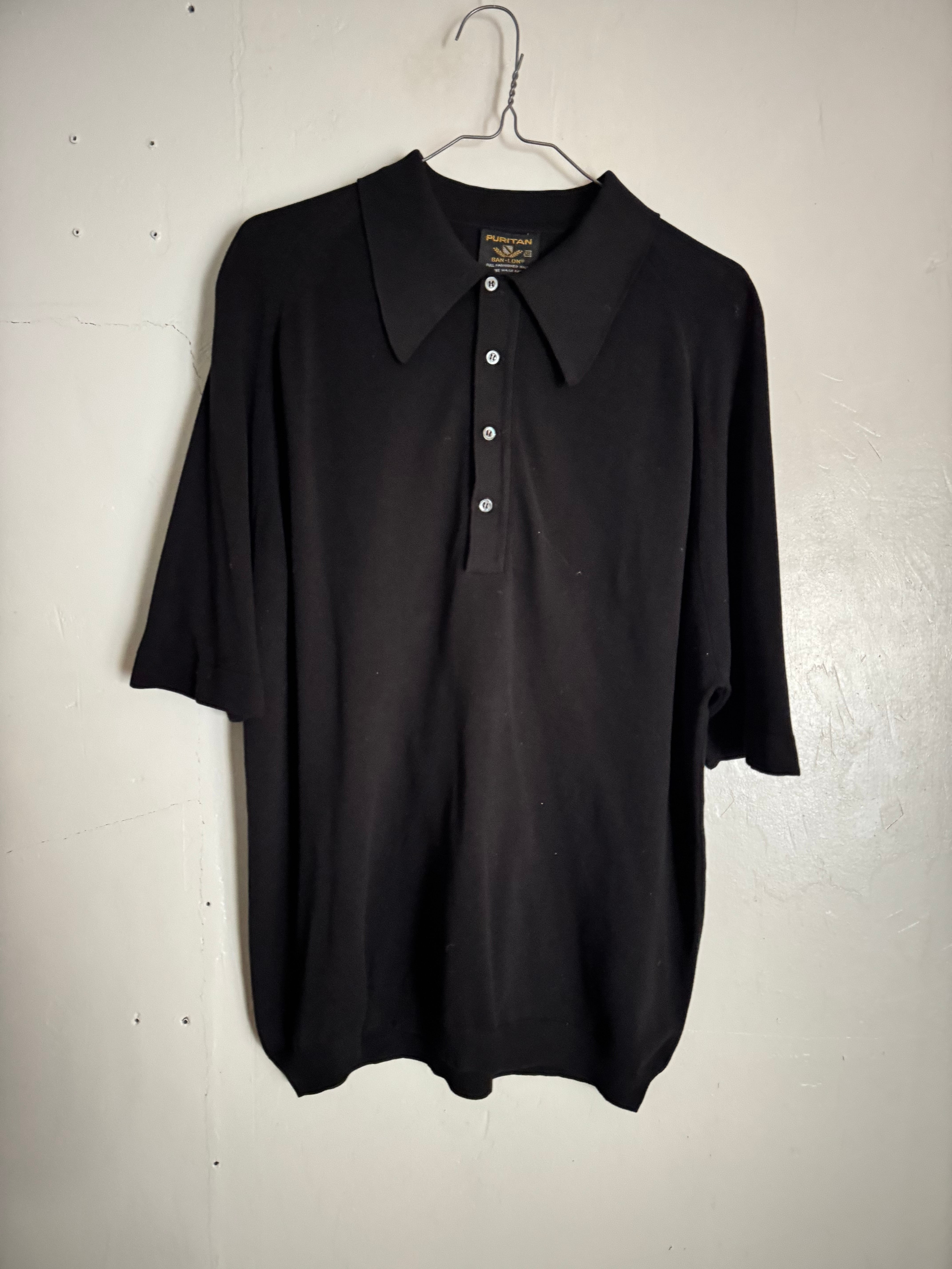 60-70年代に一世を風靡した高級ニット素材「BAN-LON」を使用した、ピューリタンの名作ポロシャツ。この年代特有の大きく尖った襟と、体のラインを綺麗に見せる絶妙なとろみ感が魅力です。現行の鹿の子ポロにはない、ヴィンテージならではの色気と上品な光沢を放つ一着です。