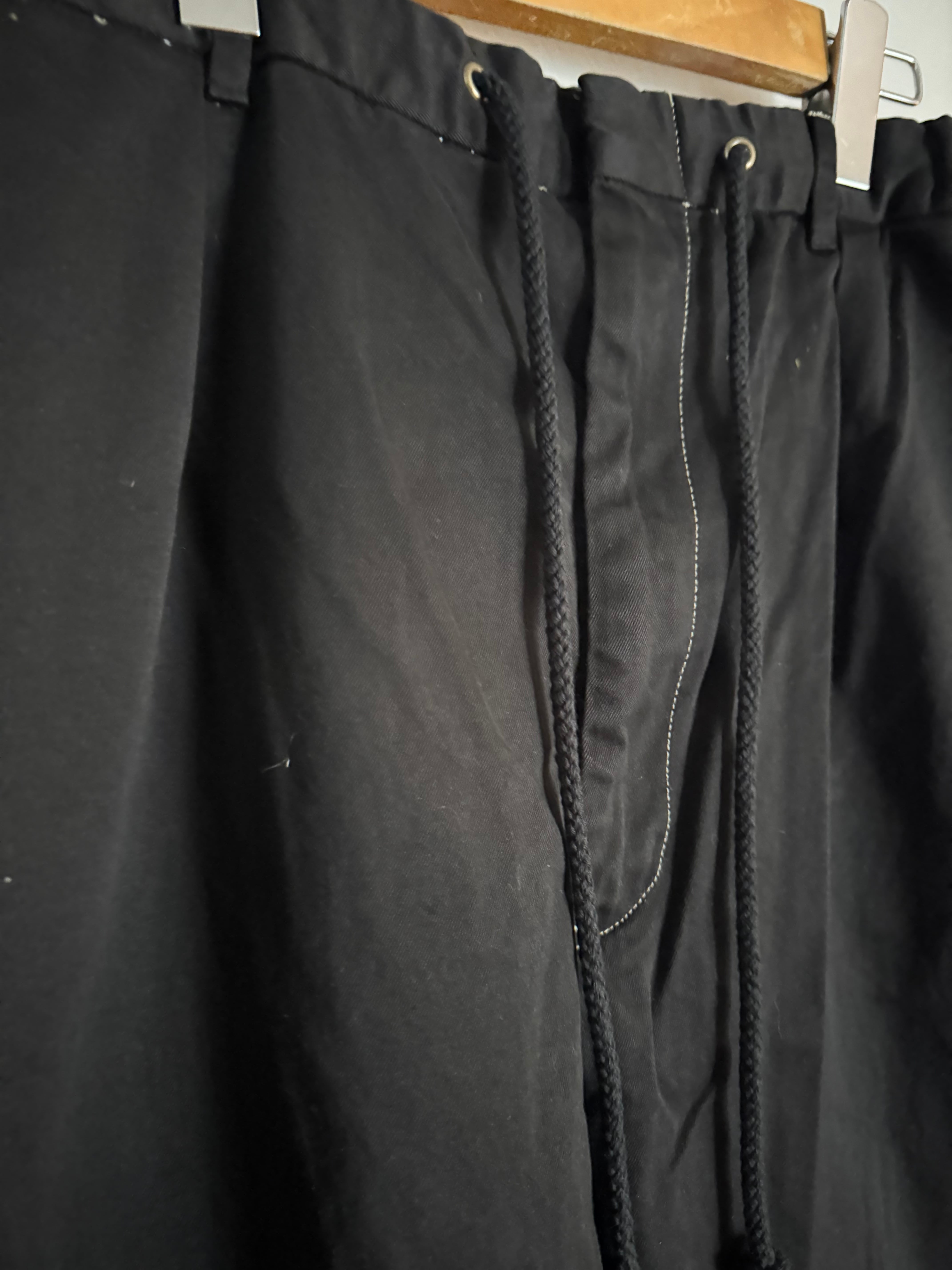 90年代ポロ・ラルフローレンの、ウエストゴム&ドローコード仕様のコットンイージーパンツ。一番人気のブラックカラーかつ、肌馴染みの良い100%コットン素材で、履き心地と汎用性は抜群です。ワイドテーパードの効いた唯一無二のシルエットはスニーカーやサンダルとの相性も抜群。探すと意外と見つからないグッドレギュラーなアーカイブです。