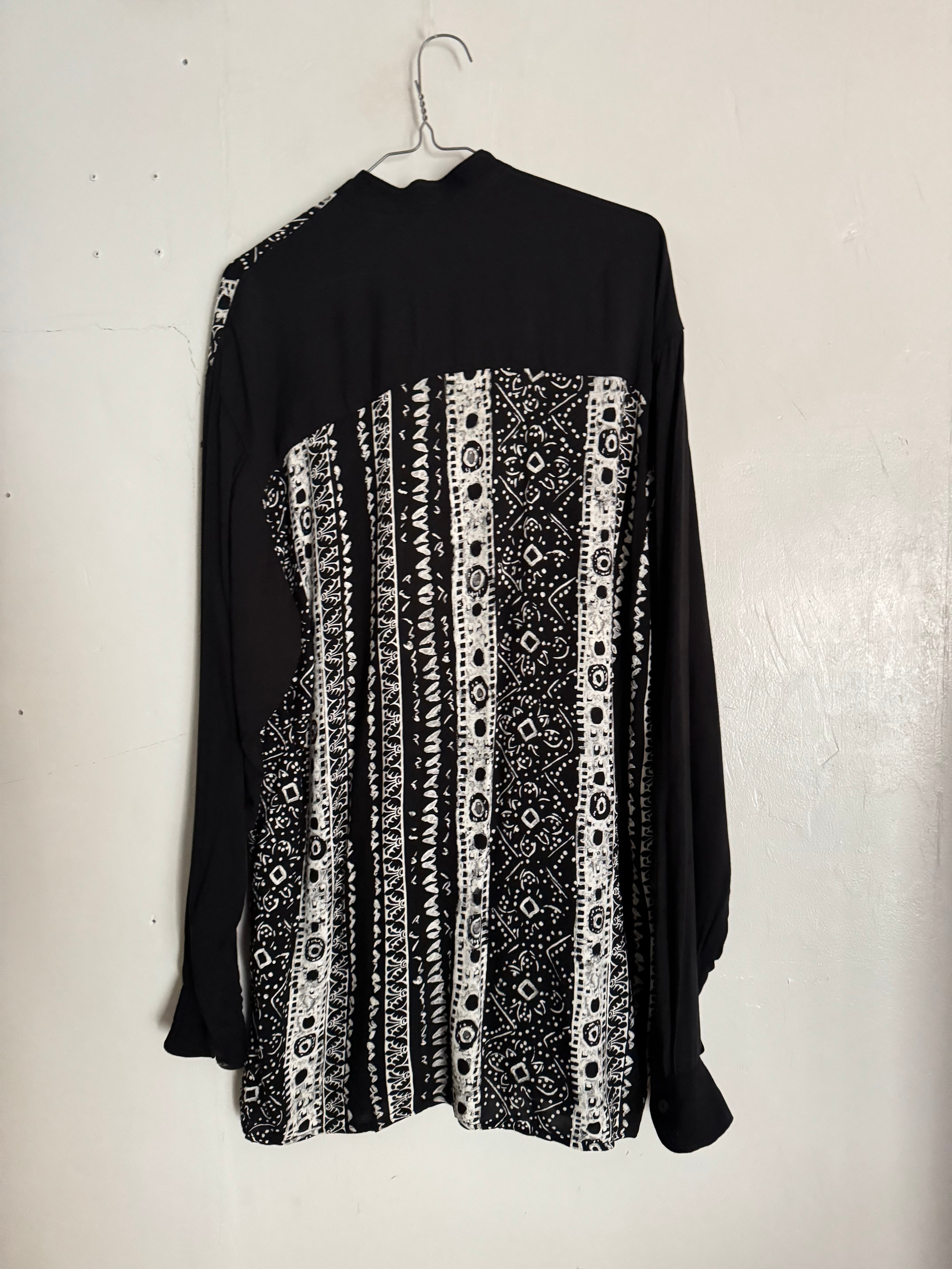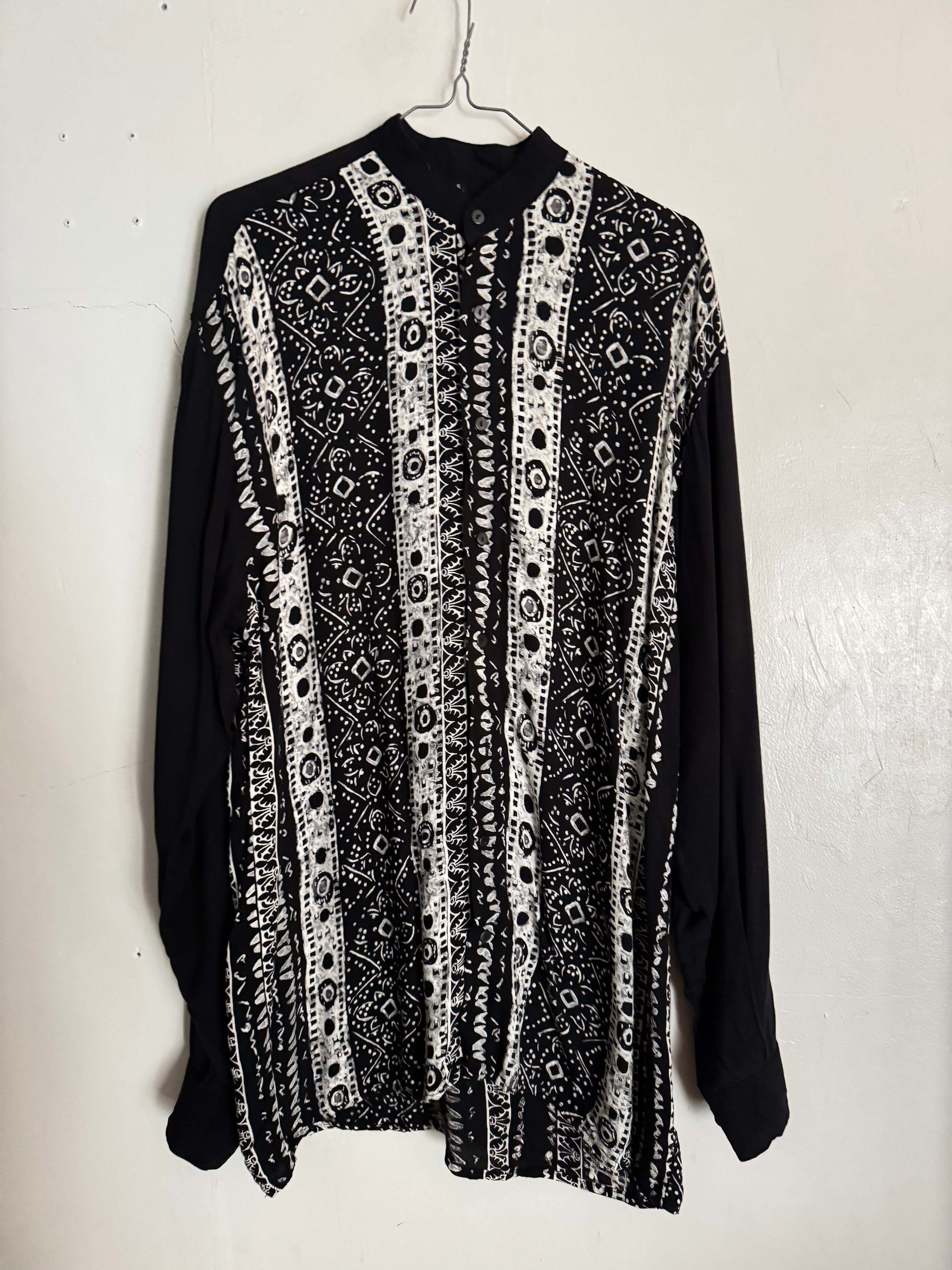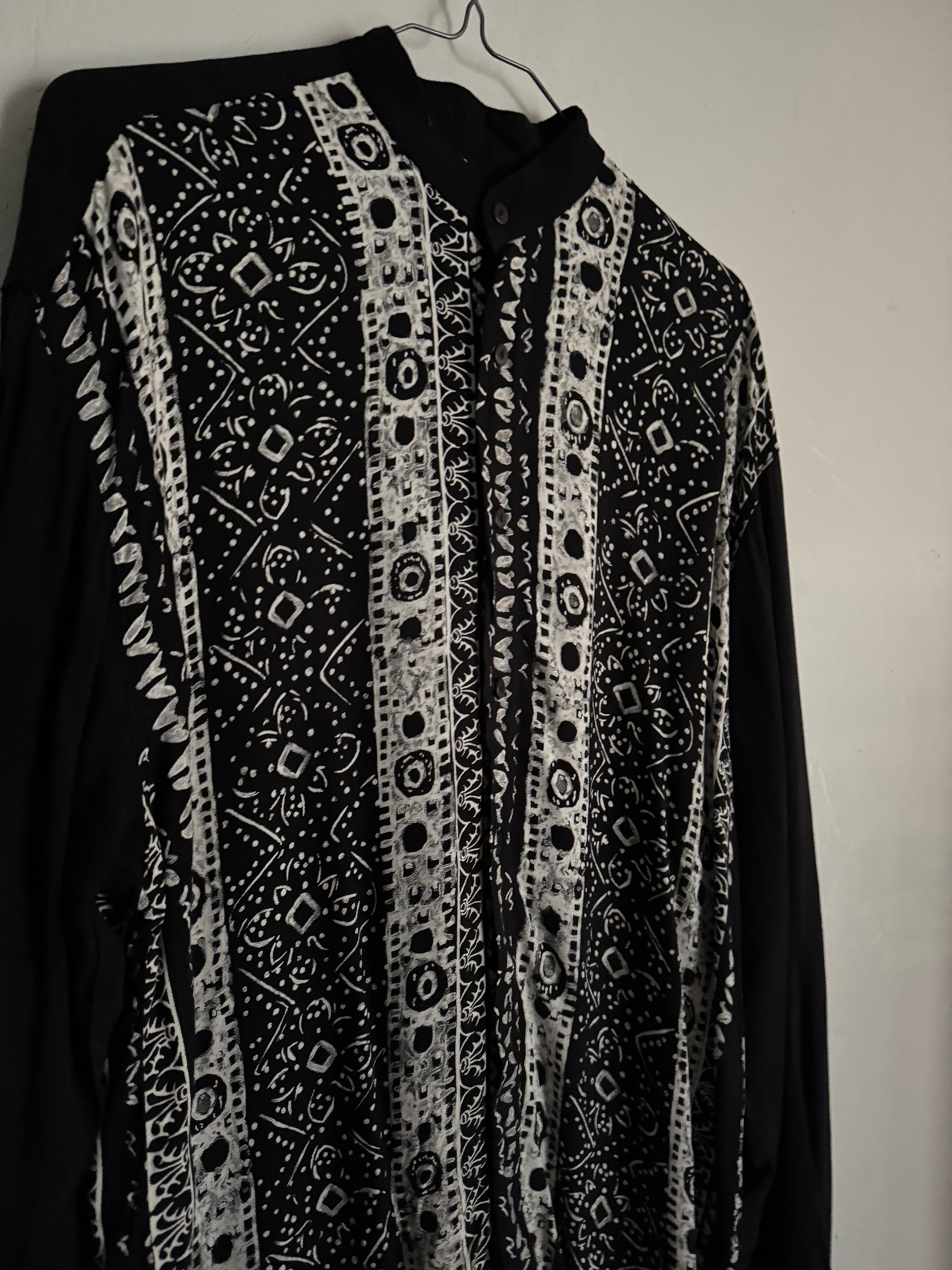 Old YORN Black×White Pattern Design Rayon No Collar L/S Shirt