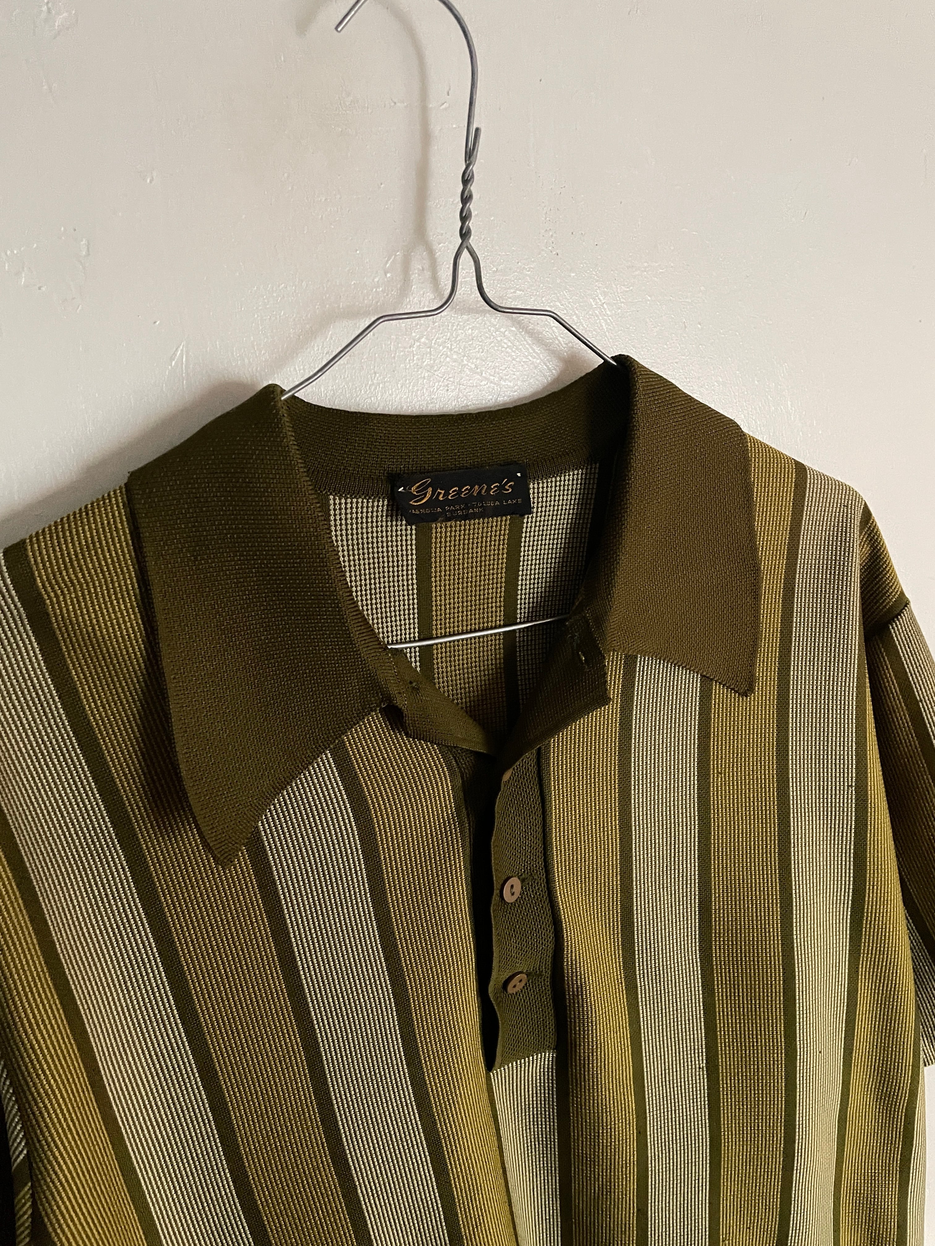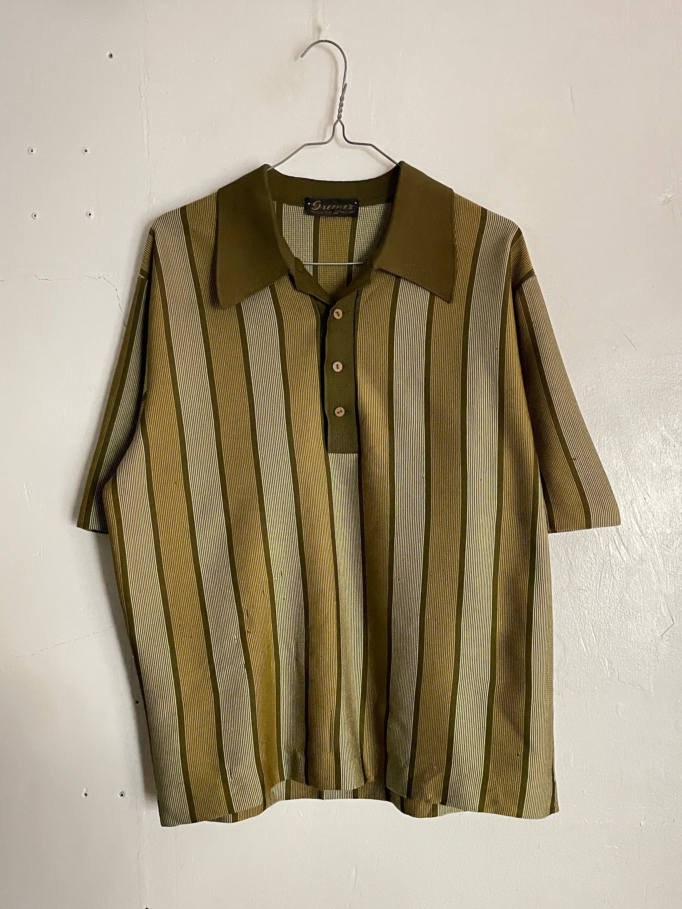Old Multicolor Border Pattern Design Knit S/S Polo Shirt